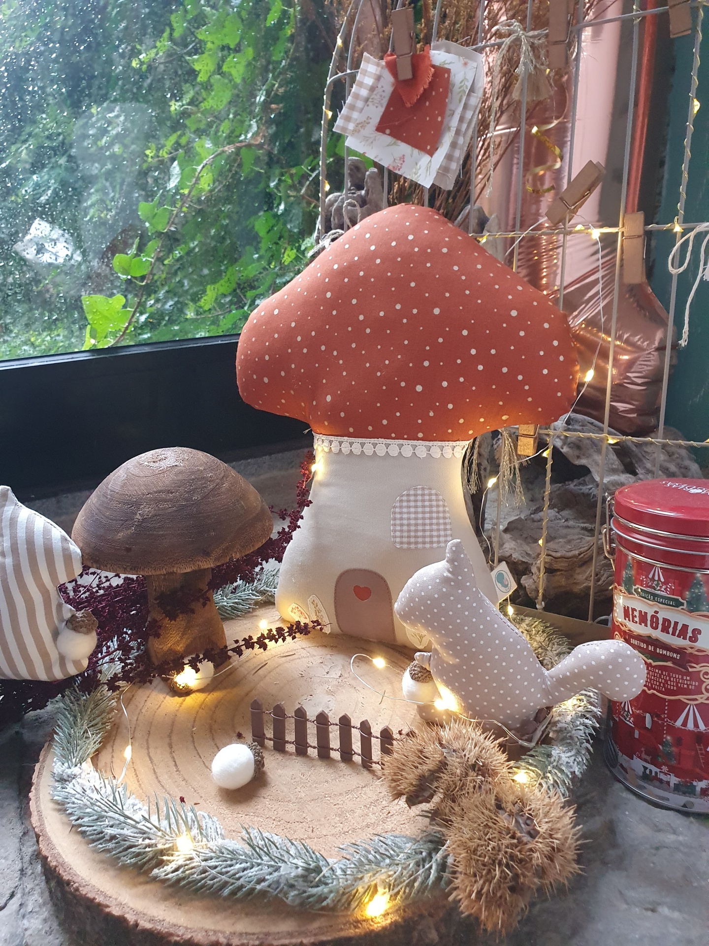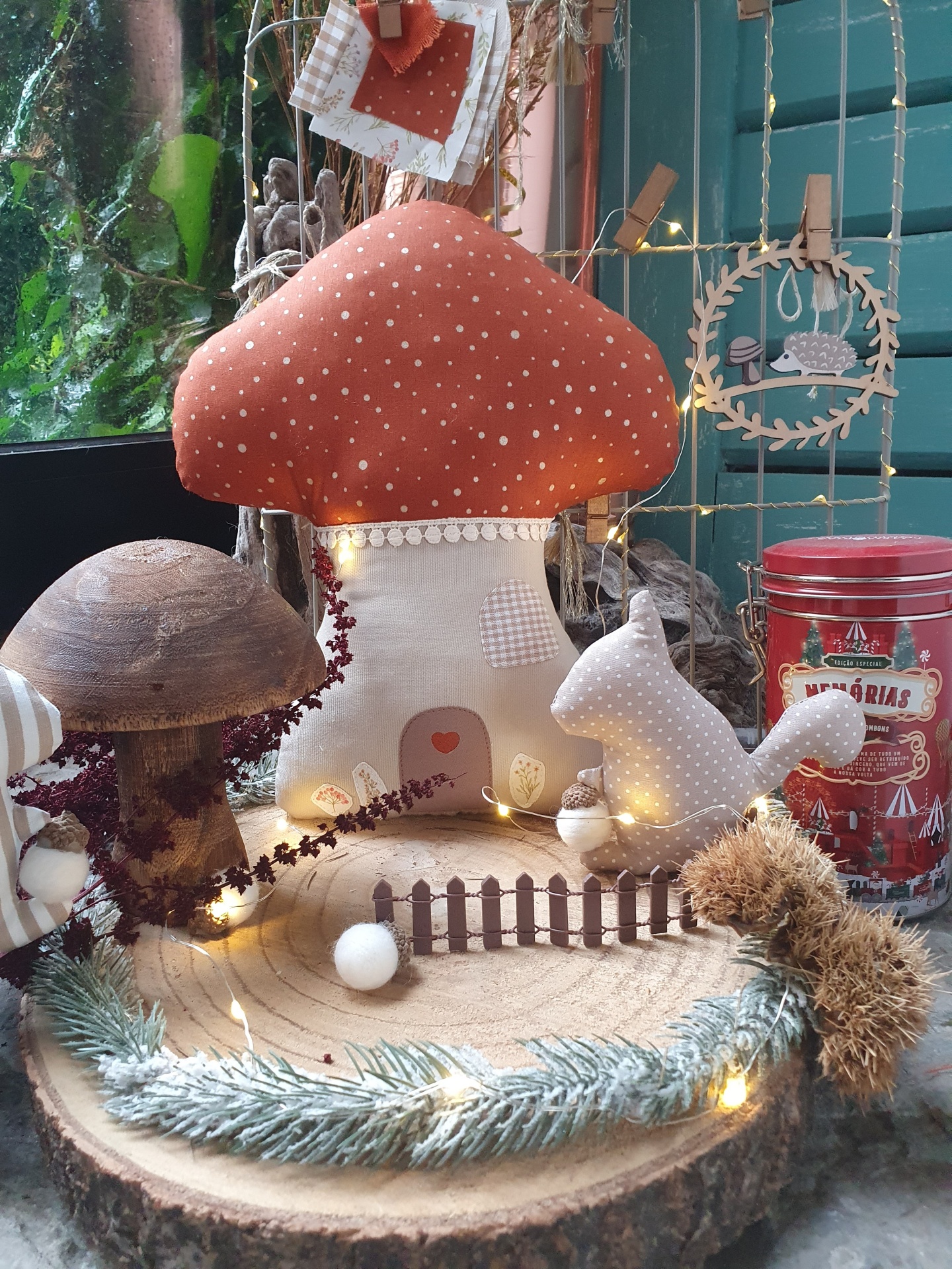 Almofada casinha cogumelo 35,00 € Desconto de %. Partilhar O produto encontra-se sem stock. Almofada decorativa perfeita para decoração não apenas do quartinho do seu bebé, bem como de outro local da sua casa, neste Natal. Estimula a imaginação do seu bebé e promove momentos de brincadeira. Feita com tecidos 100% algodão e enchimento anti-alérgico 100% poliester. Medidas: 32cm