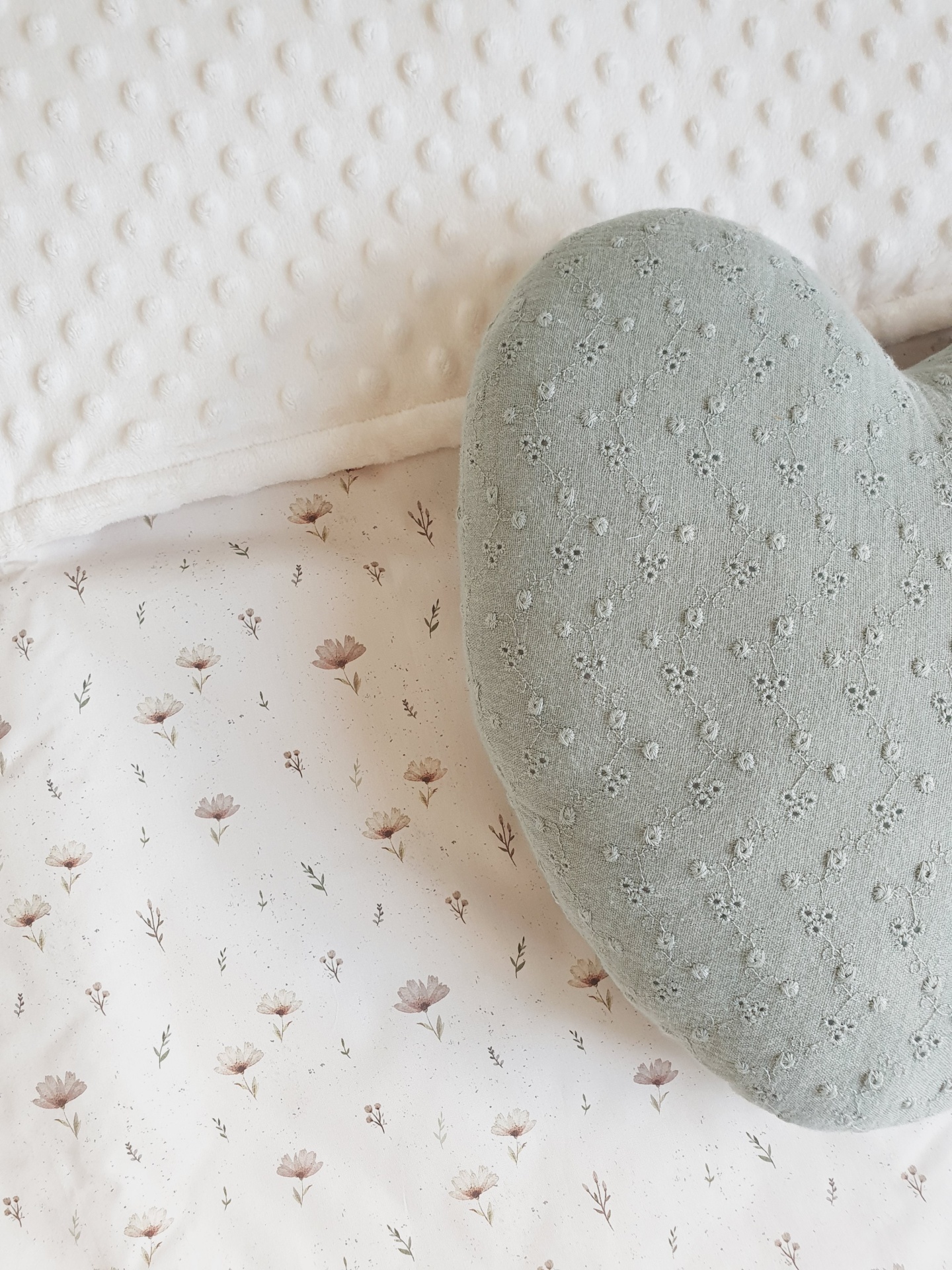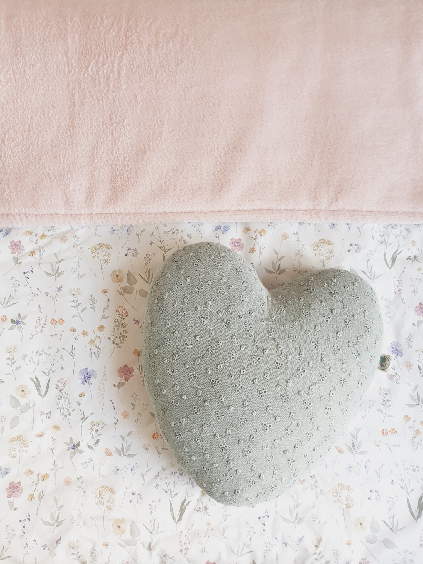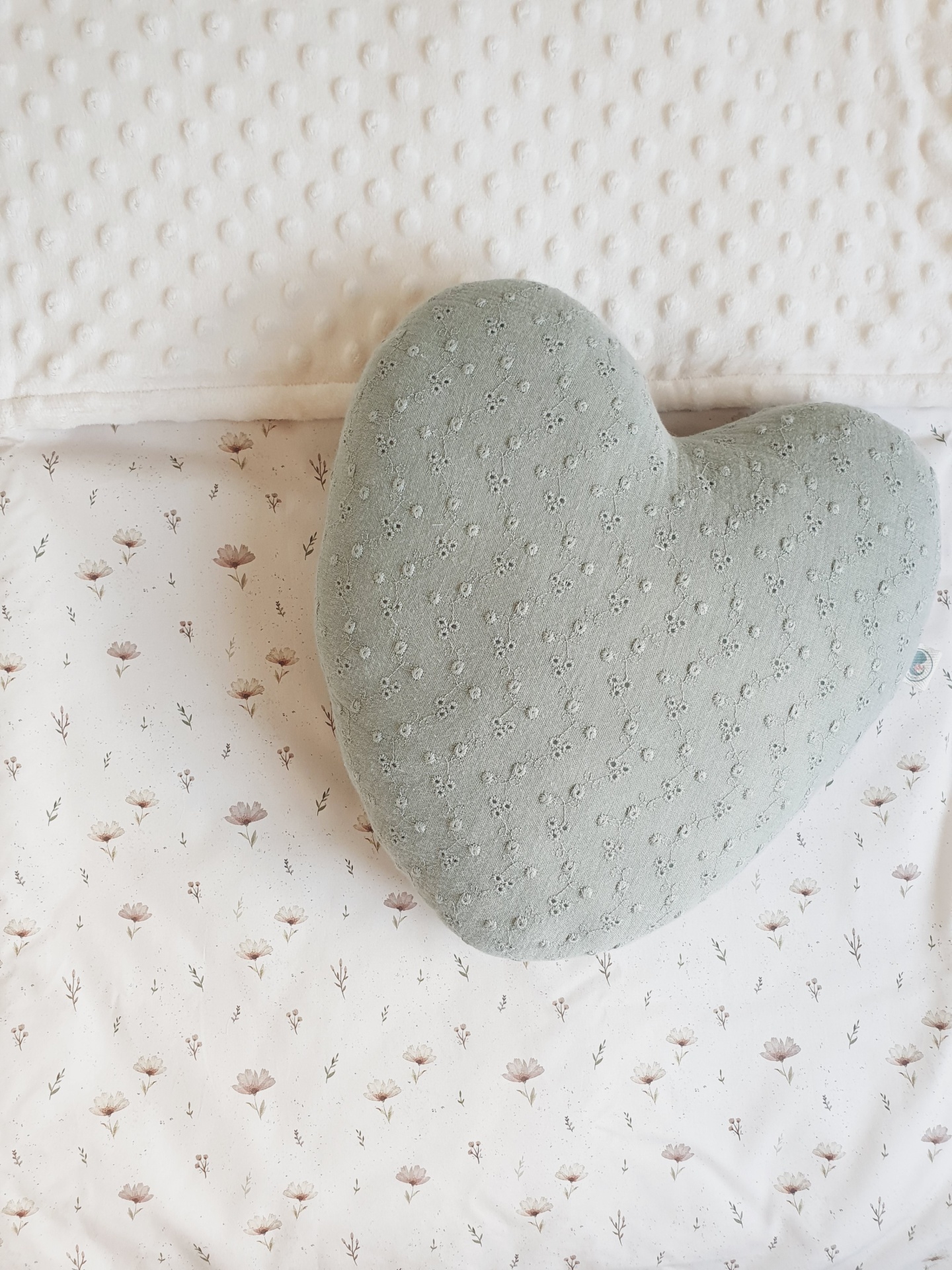 Almofada coração verde sage em bordado inglês 20,00 € Desconto de %. Partilhar O produto encontra-se sem stock. Almofada decorativa que vai dar o toque especial ao quartinho do seu bebé. Aquele apontamento de cor que vai fazer a diferença! Em tecido de bordado inglês e com enchimento anti alergico. Medidas 35cm. Cor: verde