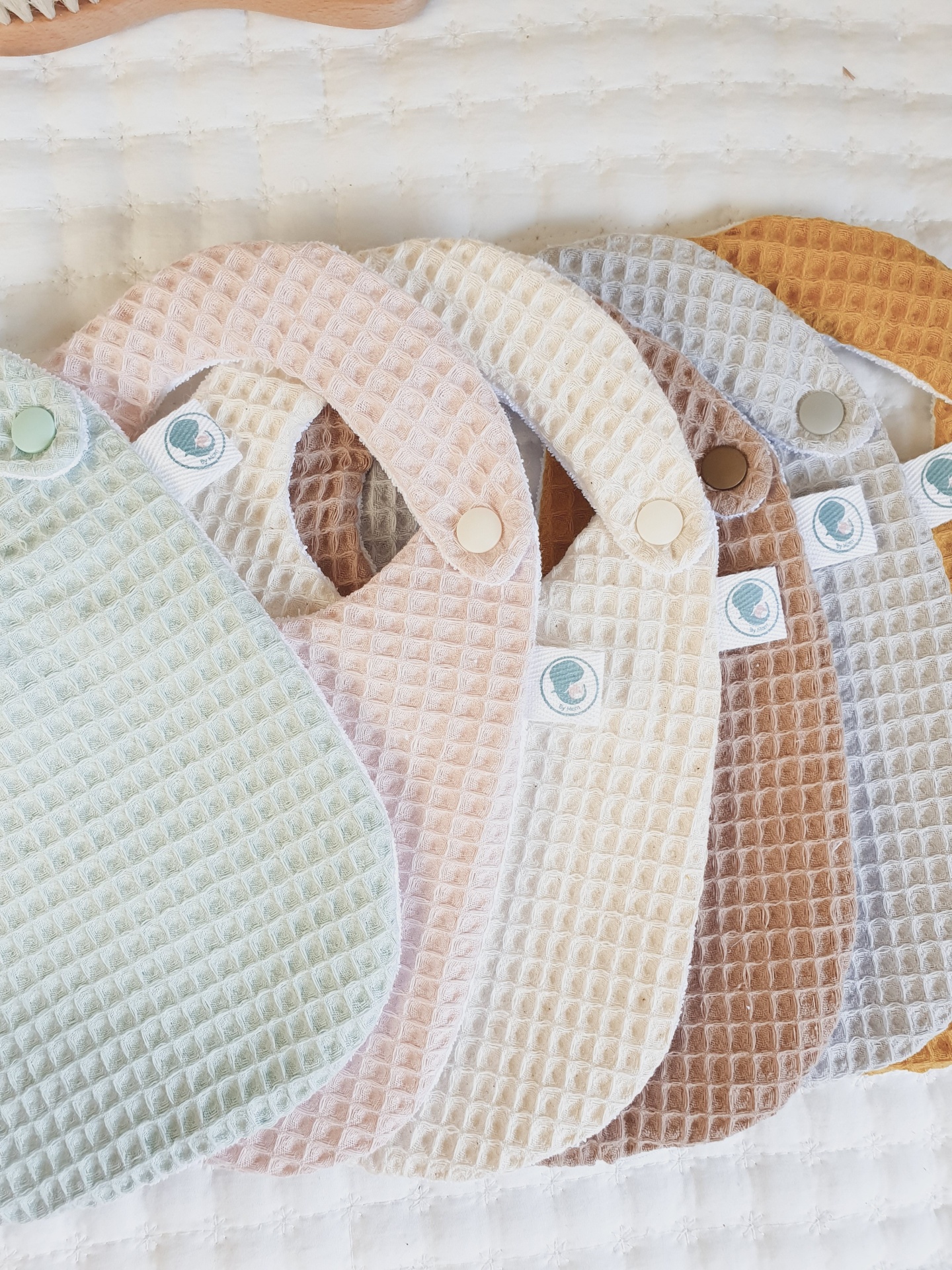 Babetes waffle 8,00 € Desconto de %. Partilhar Cor Azul claro Verde água rosa velho bege escuro cru mostarda cinzento Comprar Contactar Os babetes em waffle são a novidade para manter o seu bebé sempre seco e limpinho mas em grande estilo! Com cores maravilhosas em tecido waffle 100% algodão. Lavável à mão ou à máquina a temperatura não superior a 40graus.