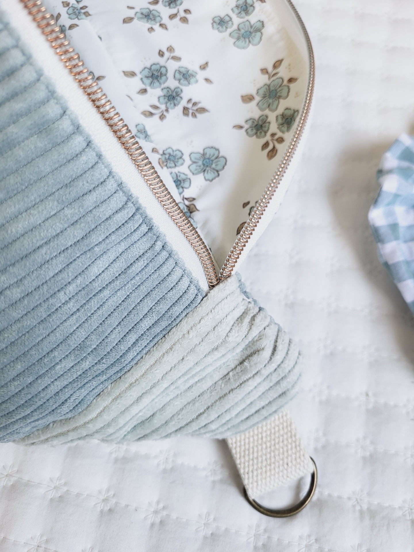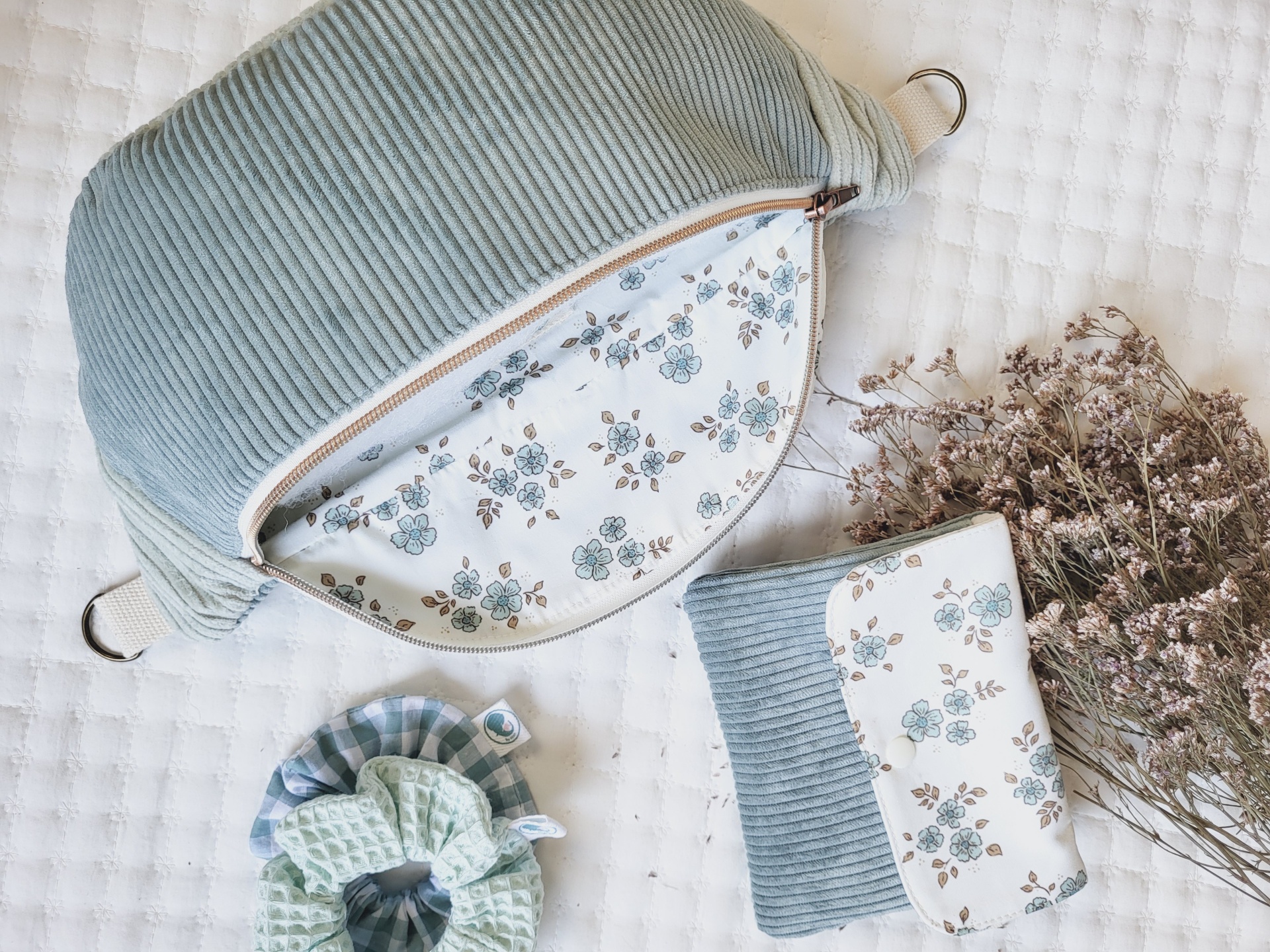 Bolsa muito prática e útil para colocar à cintura ou a tiracolo em bombazine e tecido 100% algodão.