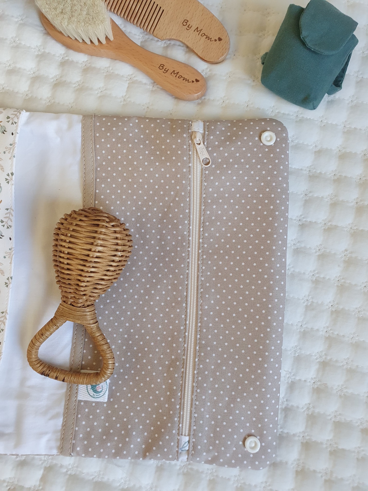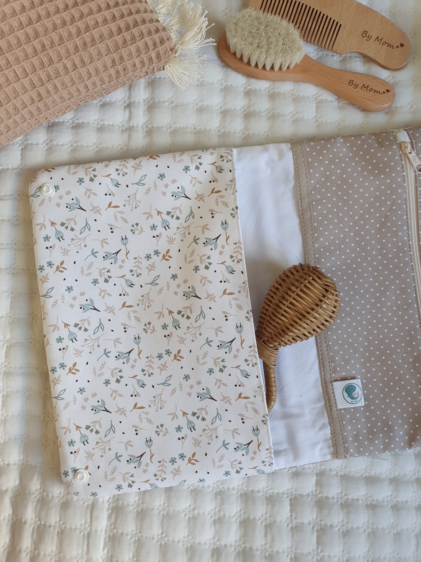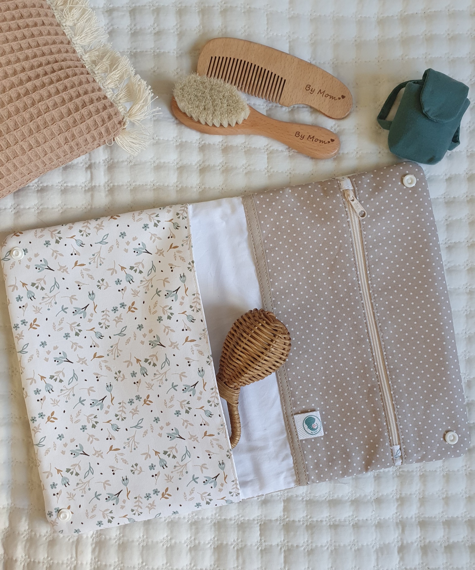 Bolsa para fraldas e toalhitas bege e azul 26,00 € Desconto de %. Partilhar O produto encontra-se sem stock. Bolsa muito prática para levar as fraldas e toalhitas para qualquer lado e facilitar a mudança da fralda. Com dois bolsos laterais. Um dos bolsos com fecho zipper e impermeável para não deixar secar as toalhitas, nem molhar a bolsa. Feito com tecidos 100% algodão. Medidas: 25x18cm Tags floralflorestoalhitasfraldasbolsa