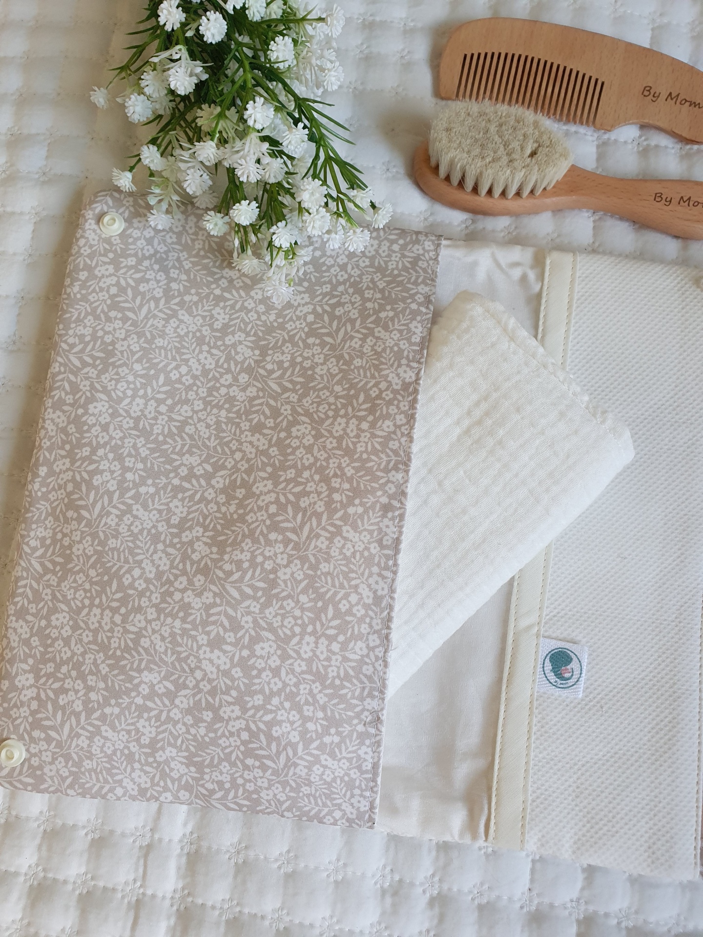 Bolsa para fraldas e toalhitas Primavera bege 28,00 € Desconto de %. Partilhar Comprar Contactar Bolsa muito prática para levar as fraldas e toalhitas para qualquer lado e facilitar a mudança da fralda. Com dois bolsos laterais. Um dos bolsos com fecho zipper e impermeável para não deixar secar as toalhitas, nem molhar a bolsa. Feito com tecidos 100% algodão. Medidas: 25x18cm