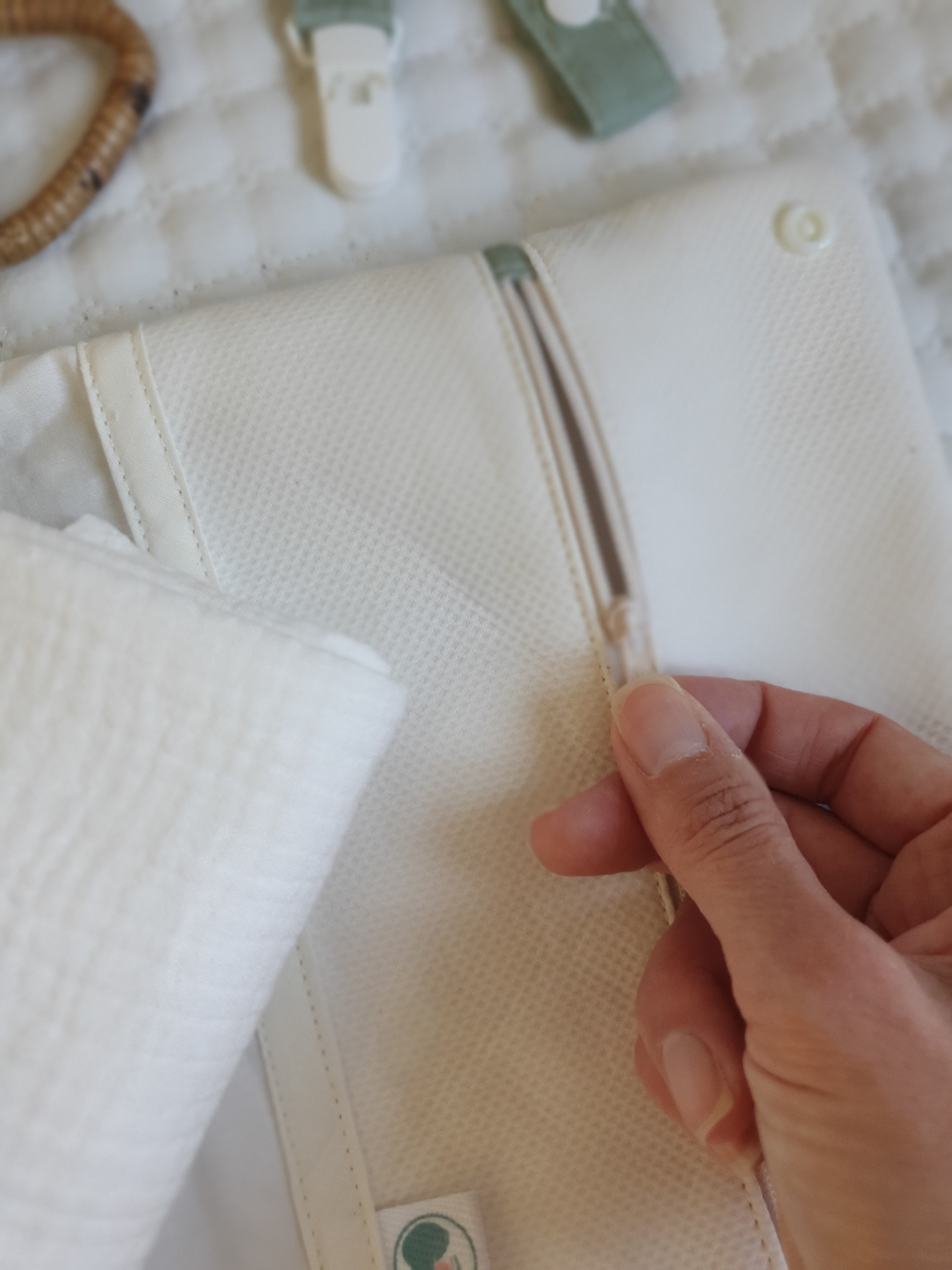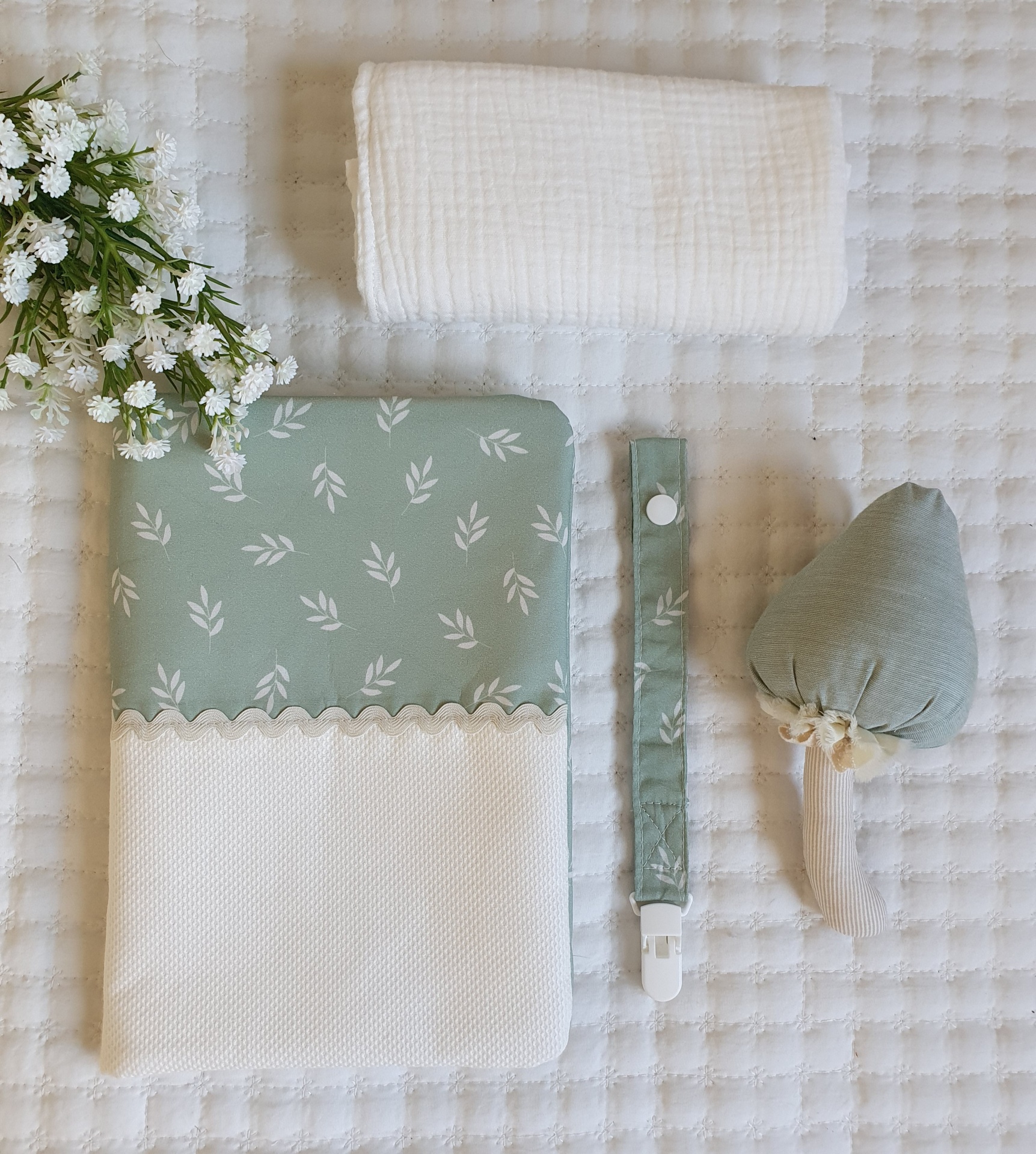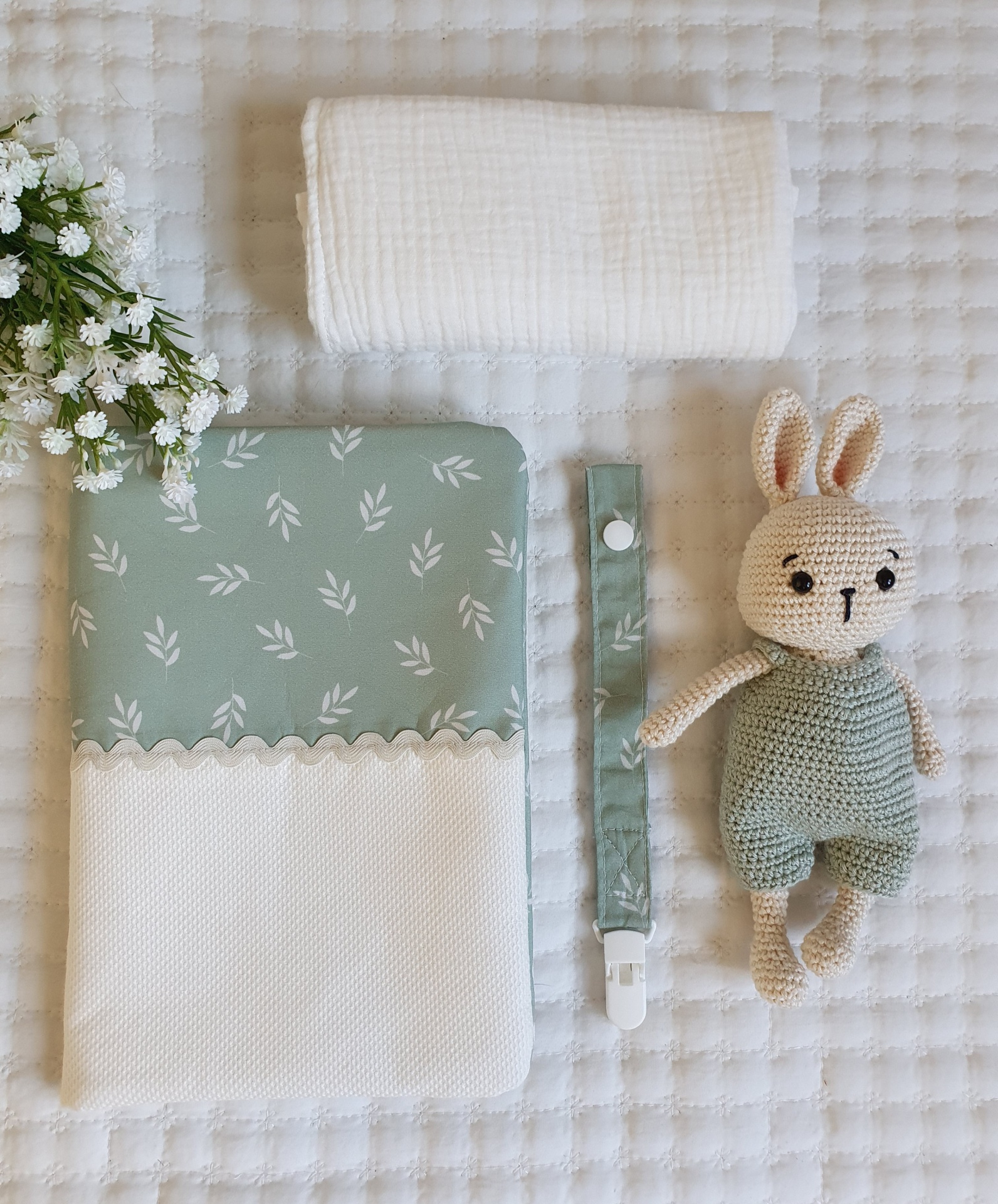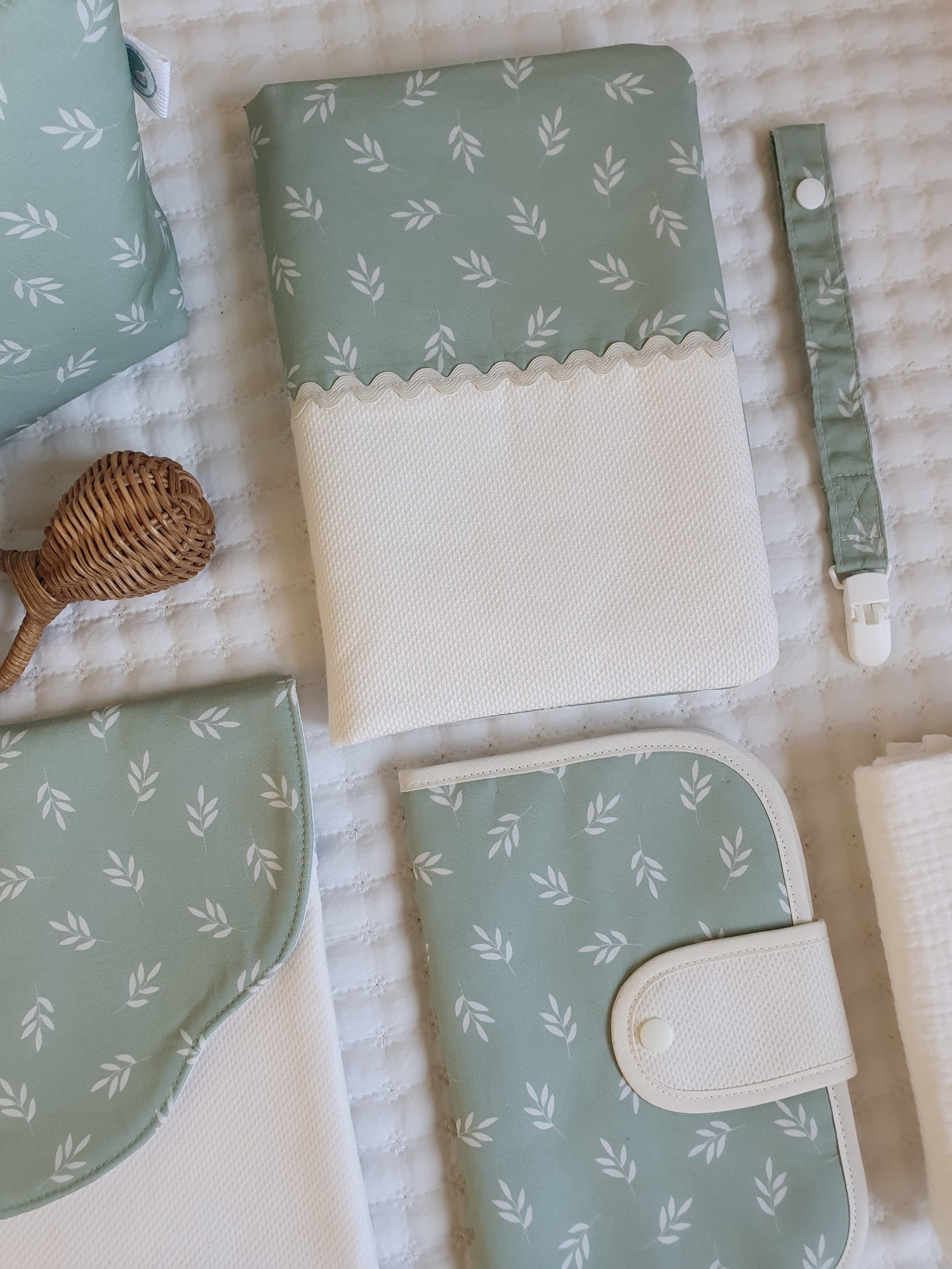 Bolsa para fraldas e toalhitas Primavera verde seco 26,00 € Desconto de %. Partilhar Comprar Contactar Bolsa muito prática para levar as fraldas e toalhitas para qualquer lado e facilitar a mudança da fralda. Com dois bolsos laterais. Um dos bolsos com fecho zipper e impermeável para não deixar secar as toalhitas, nem molhar a bolsa. Feito com tecidos 100% algodão. Medidas: 25x18cm Tags Verdefloralflorestoalhitasfraldasbolsa Características