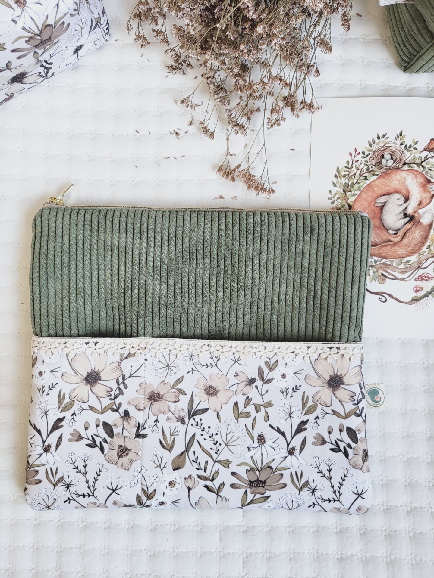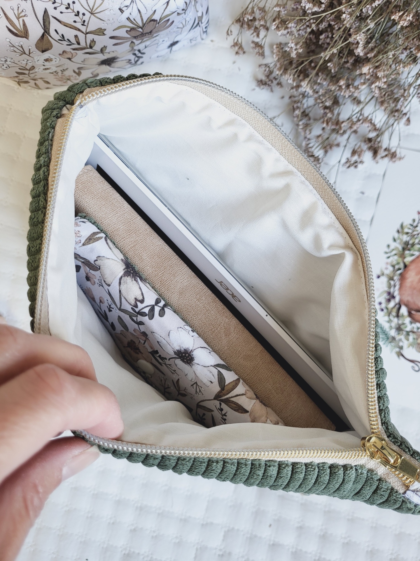 Bolsa para tablet/kobo bombazine verde seco 39,00 € Desconto de %. Partilhar O produto encontra-se sem stock. Bolsa em bombazine e tecido floral 100% algodão. Esta prática bolsa é ideal para guardar o tablet, agenda, livro ou kobo. Também tem um bolso exterior para telemóveis e canetas ou outros artigos mais pequenos. Com fecho zipper altamente resistente. Medidas: 29x26cm. Lavagem: idealmente à mão. Também pode ser à maquina a temperatura não superior a 40graus. Programa de roupa delicado. Não passar a ferro.