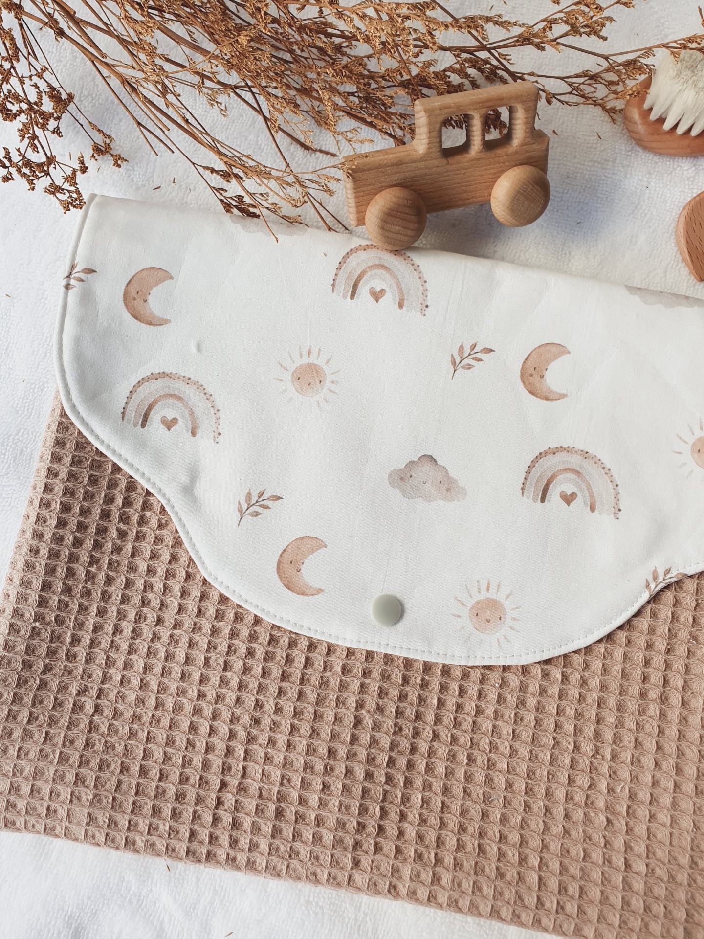 Bolsa roupa arco-íris e luas 18,00 € Desconto de %. Partilhar O produto encontra-se sem stock. Bolsa tipo envelope, que fecha com mola de pressão, para as mudas de roupa do seu bebé. Pode levar para a maternidade e, mais tarde, para as saídas em passeio ou para a creche. Tecidos 100% algodão. Medidas: 30x26cm Lavável na máquina a temperatura não superior a 40graus