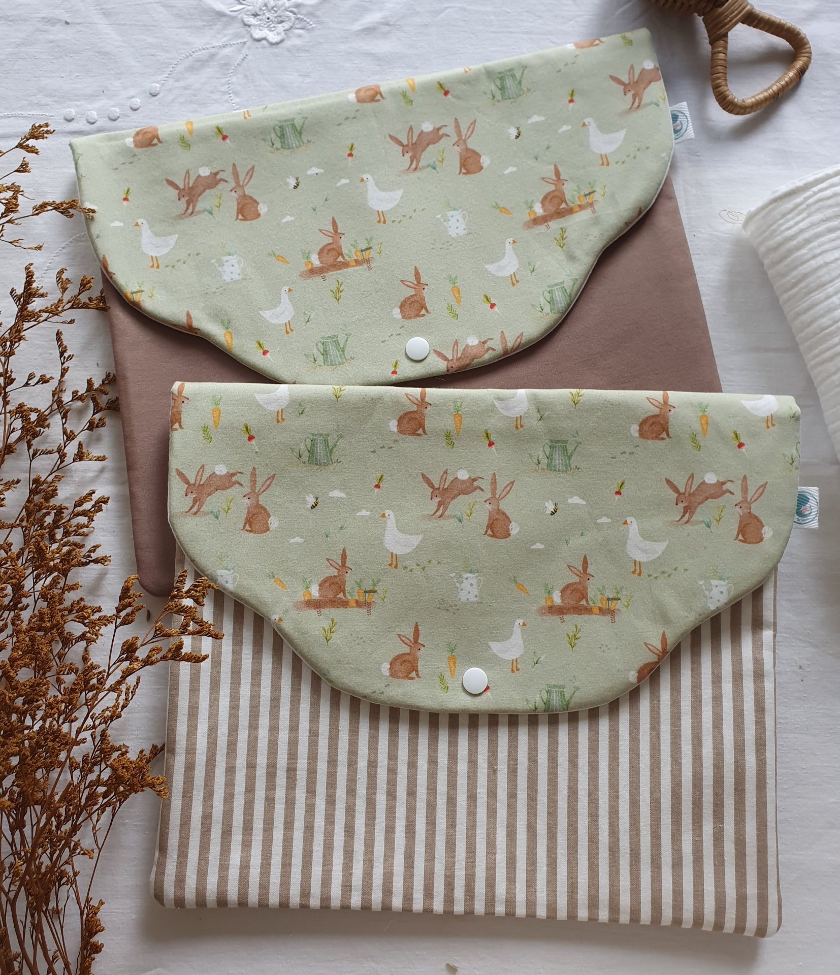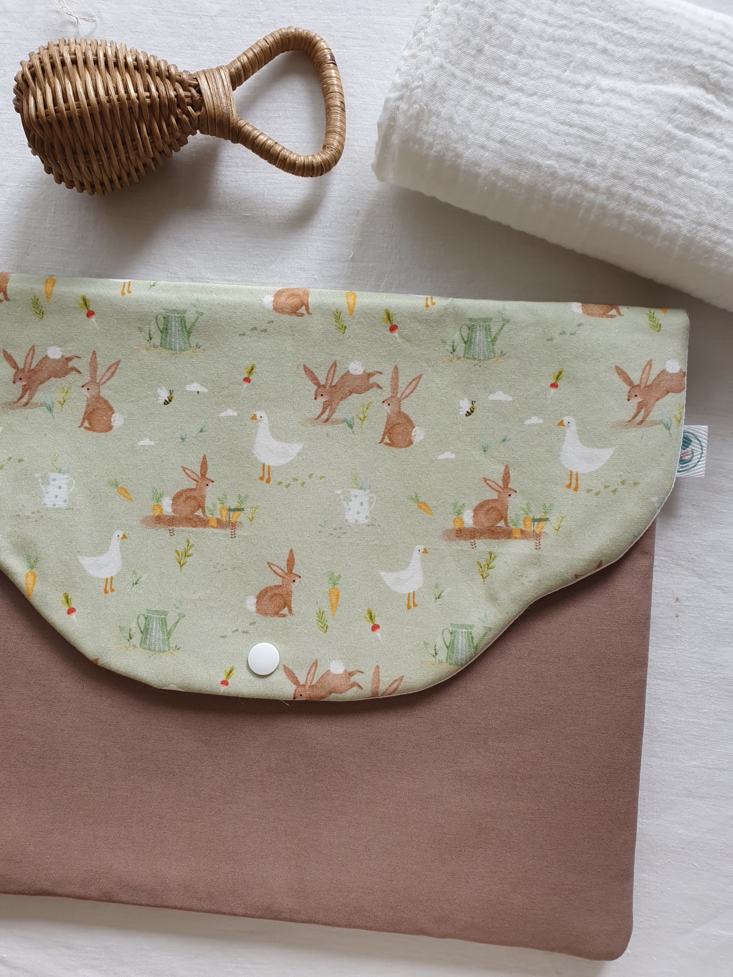Bolsa roupa coelhos castanho 12,00 € 15,00 € Desconto de 20%. Partilhar Comprar Contactar Bolsa tipo envelope, que fecha com mola de pressão, para as mudas de roupa do seu bebé. Pode levar para a maternidade e, mais tarde, para as saídas em passeio ou para a creche. Tecidos 100% algodão. Medidas: 30x26cm Lavável na máquina a temperatura não superior a 40graus