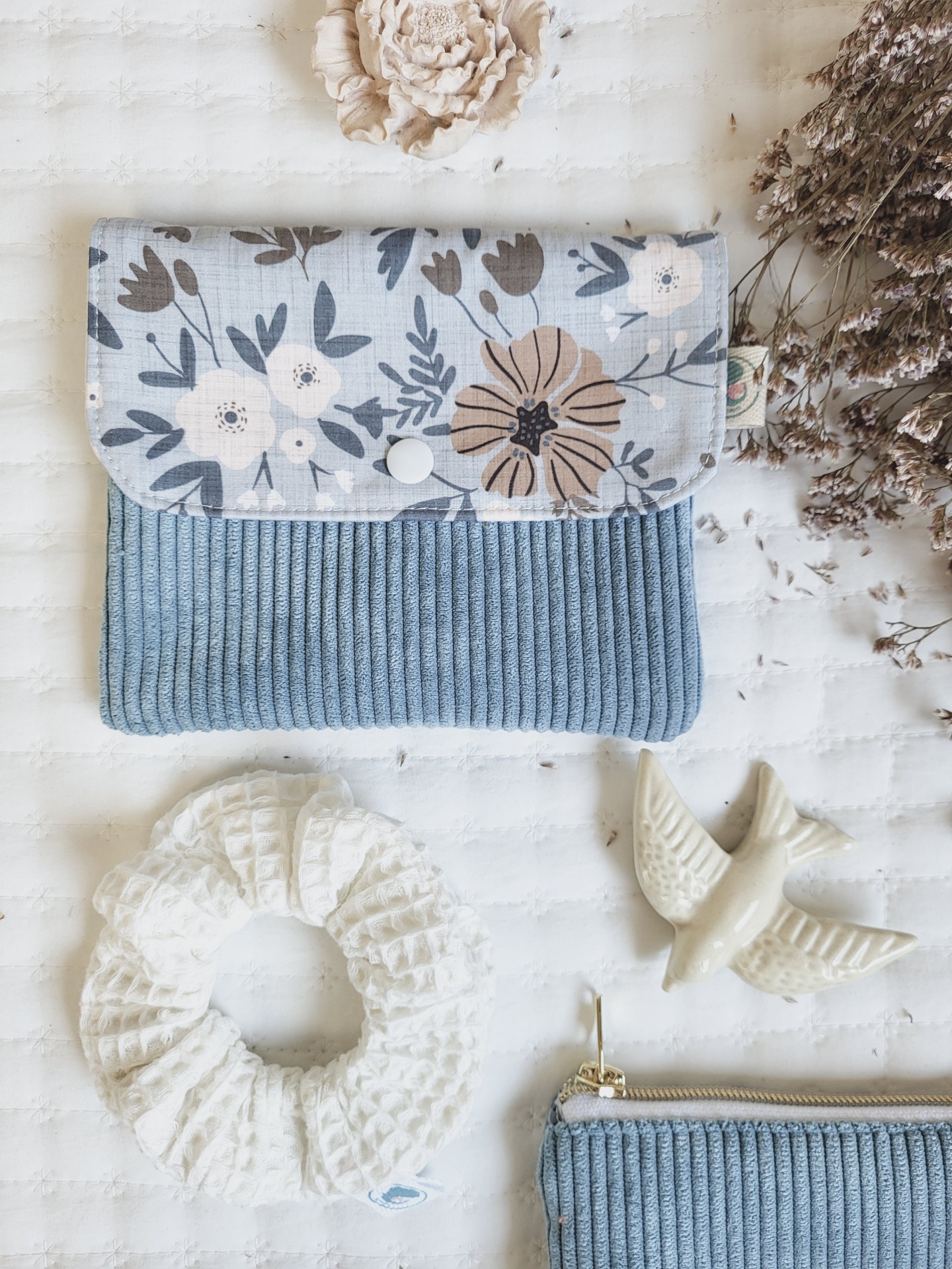 Carteira bombazine azul 14,90 € Desconto de %. Partilhar O produto encontra-se sem stock. Carteira em bombazine e tecido floral 100% algodão. Ideal para guardar dinheiro, cartões ou usar como uma mini necessaire para os produtos de maquilhagem e higiene como pensos e lenços de papel. Medidas: 12,5 x 15,5cm.
