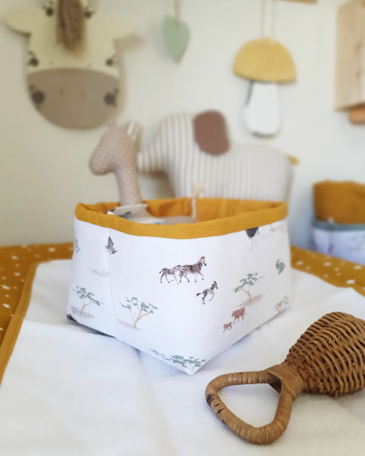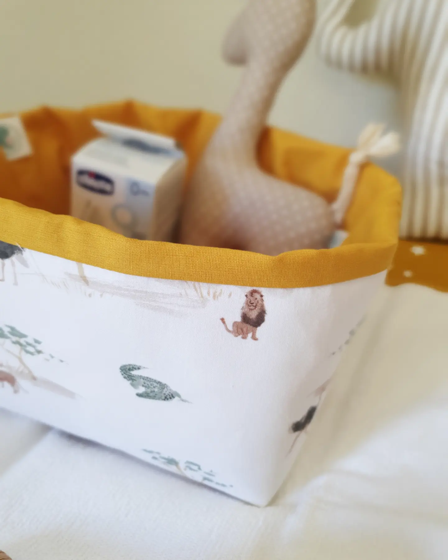 Cesto Selva 16,00 € Desconto de %. Partilhar O produto encontra-se sem stock. Cesto com tecidos 100% algodão e estruturado para guardar os produtos de higiene do seu bebé de forma prática. Tamanho pequeno: 17x15x11cm (aproximadamente) Cores: mostarda, verde seco. Lavável na máquina a temperatura não superior a 40 graus.