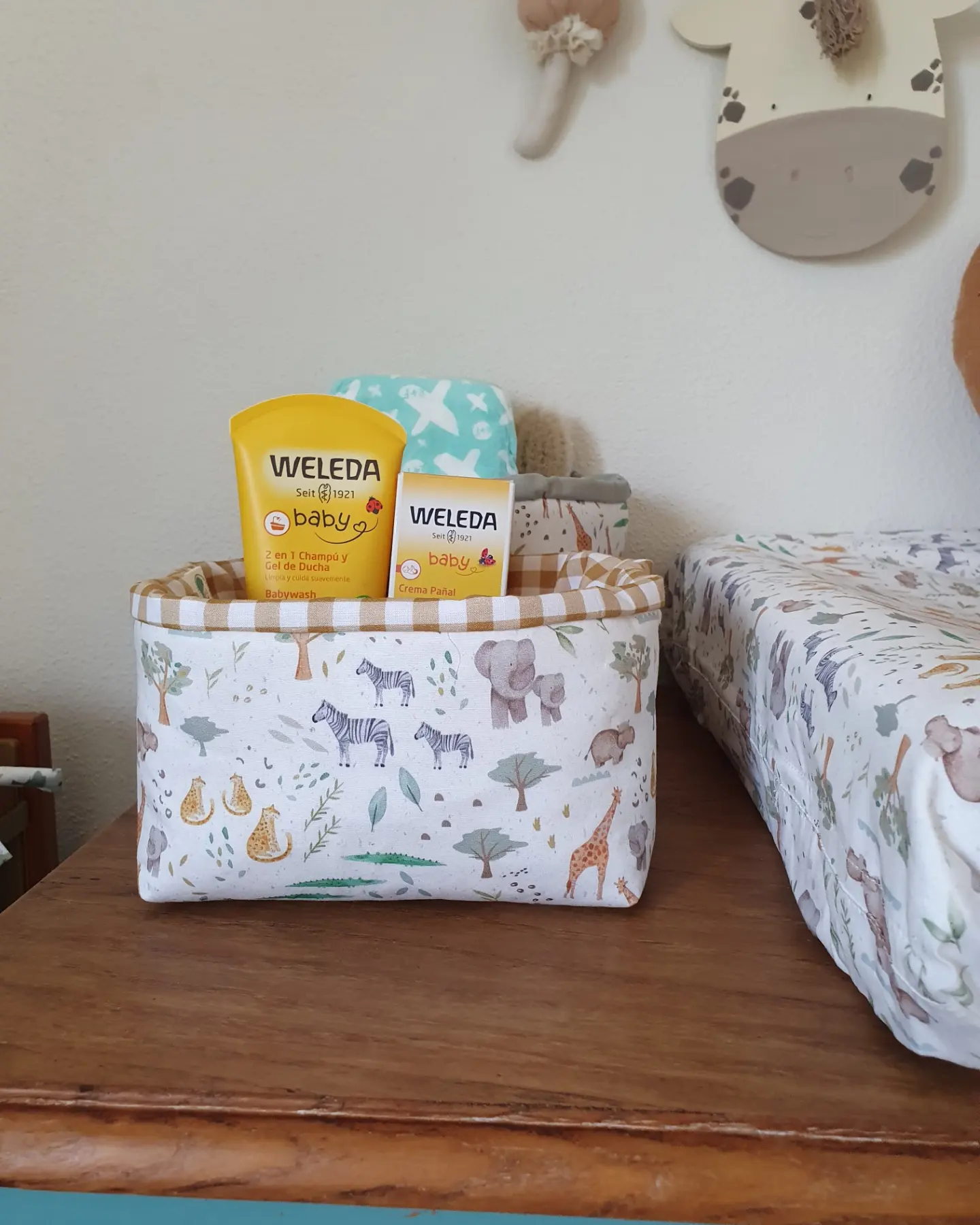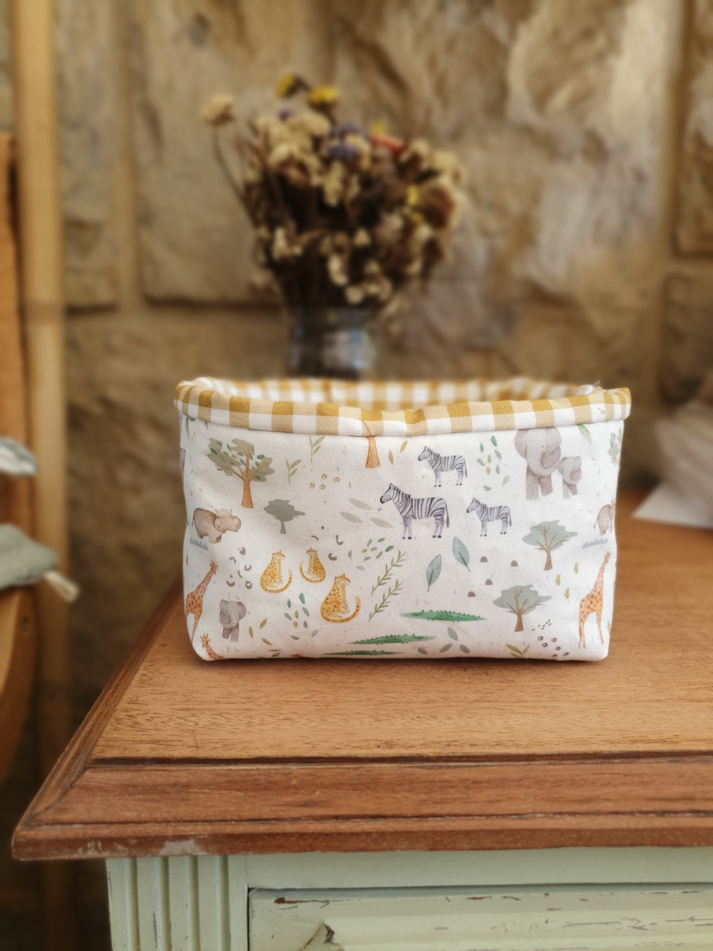 Cesto Savana 14,00 € Desconto de %. Partilhar Comprar Contactar Cesto com tecidos 100% algodão e estruturado para guardar os produtos de higiene do seu bebé de forma prática. Tamanho pequeno: 17x15x11cm (aproximadamente) Cores: mostarda, tijolo Lavável na máquina a temperatura não superior a 40 graus.