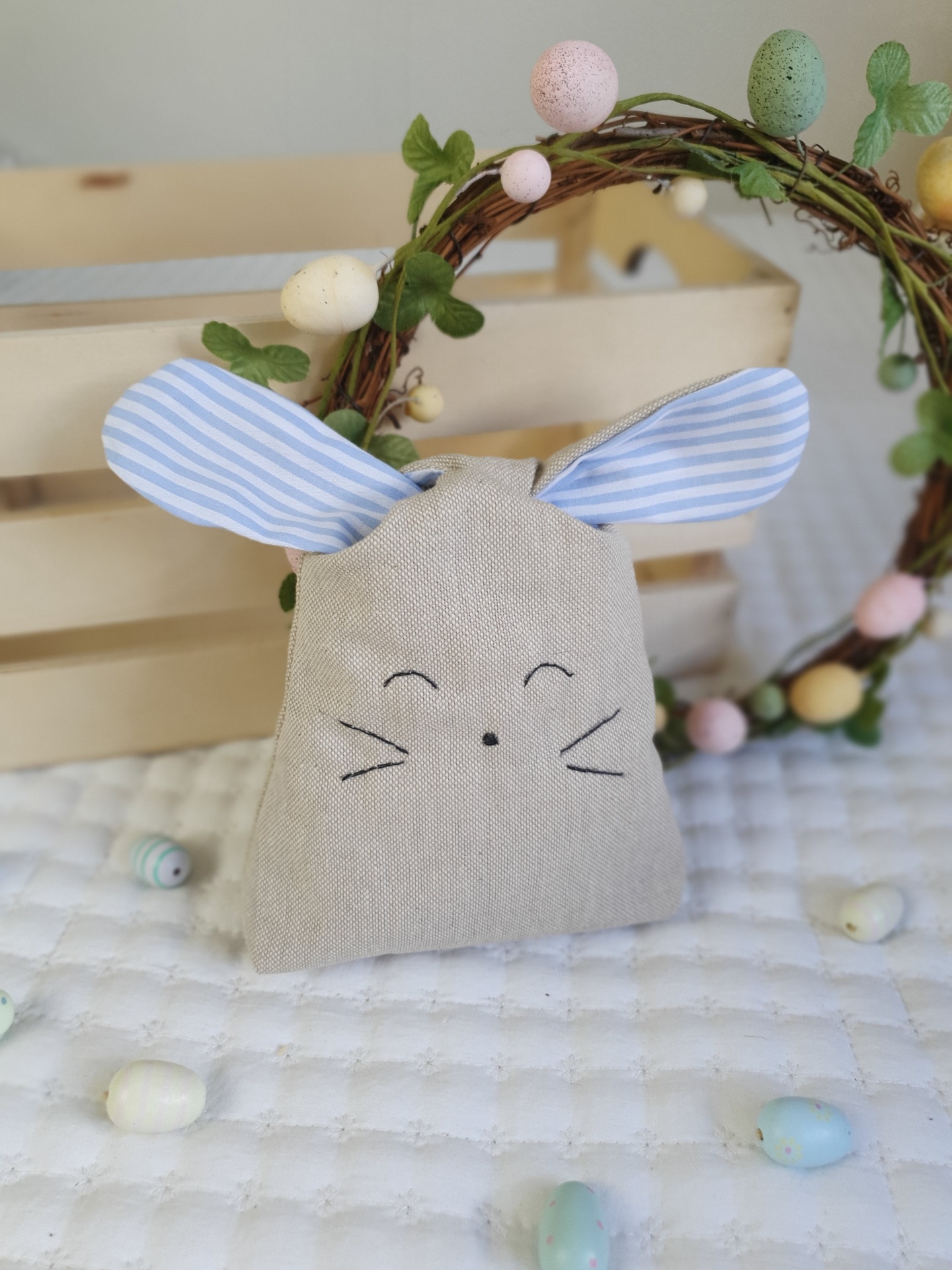 Coelhinhos da Páscoa 12,50 € Desconto de %. Partilhar Cores Riscas azul Vichy azul Flores rosa Floral rosa e verde Verde corações Verde riscas Comprar Contactar Saco em formato de coelhinho para oferecer na Páscoa com bombons ou o que mais desejar. Feitos em linho alentejano e forro em algodão. Medidas: 14x12cm