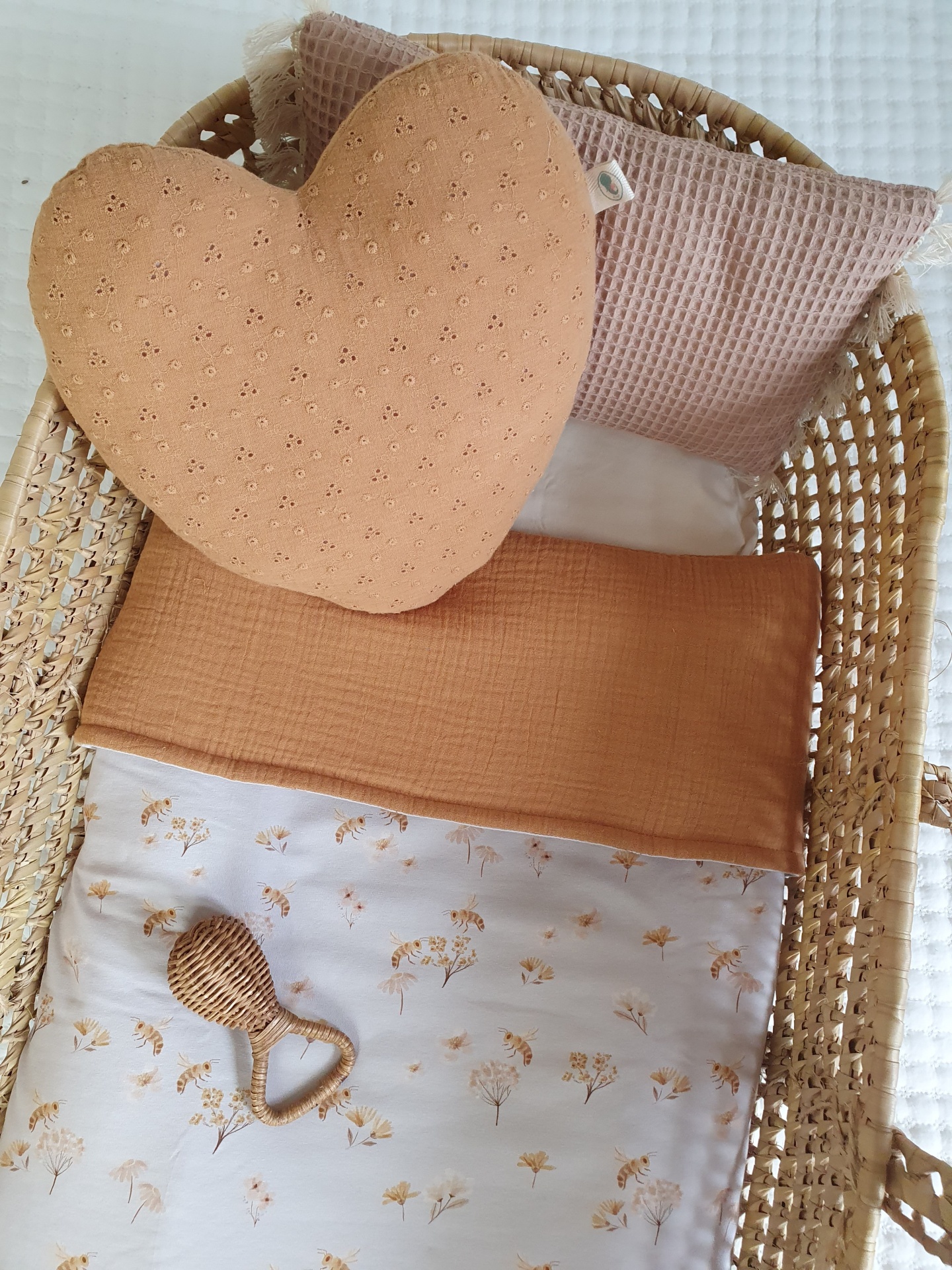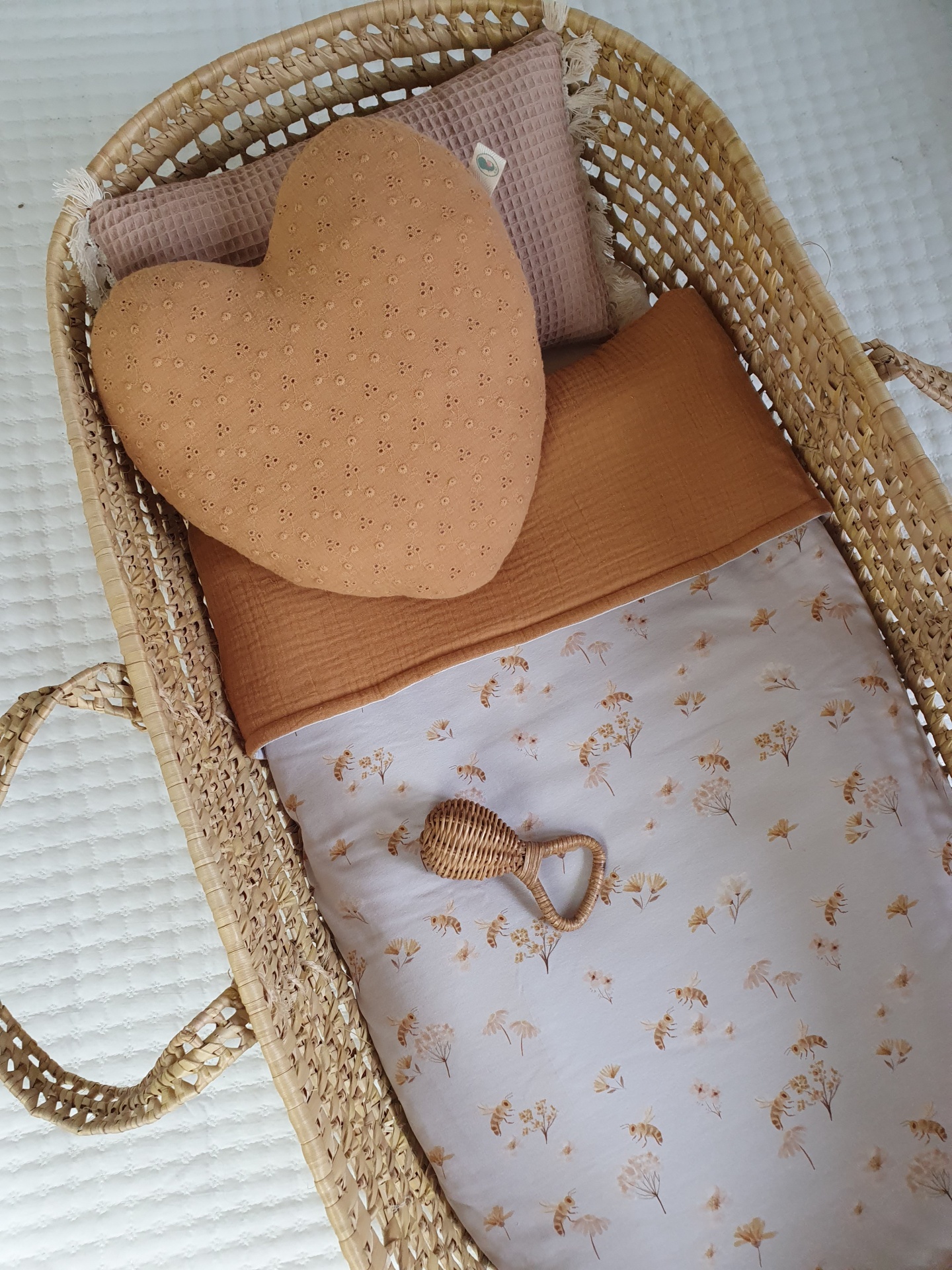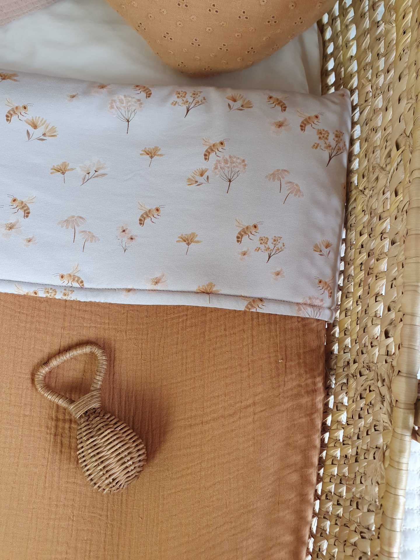 Colcha abelhas 42,00 € Desconto de %. Partilhar O produto encontra-se sem stock. Colcha feita com malha jersey e musselina 100% algodão, muita macias e delicadas para o seu bebé dormir quentinho e aconchegado. Ideal para mini berços, alcofas, carrinho/ovinho, ninhos, next to me. Medidas: 70x100cm Conselhos de lavagem: lavar à maquina ou à mão numa temperatura não superior a 40 graus. Programa de roupa delicada.