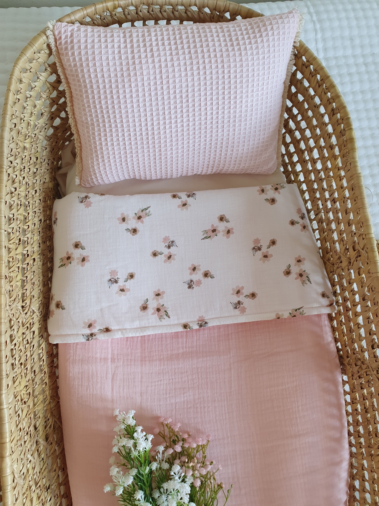 Colcha floral rosa musselina 42,00 € Desconto de %. Partilhar O produto encontra-se sem stock. Colcha feita com musselina 100% algodão, muito macia e delicada para o seu bebé dormir quentinho e aconchegado. Ideal para mini berços, alcofas, carrinho/ovinho, ninhos, next to me. Medidas: 70x100cm Conselhos de lavagem: lavar à maquina ou à mão numa temperatura não superior a 40 graus. Programa de roupa delicada.