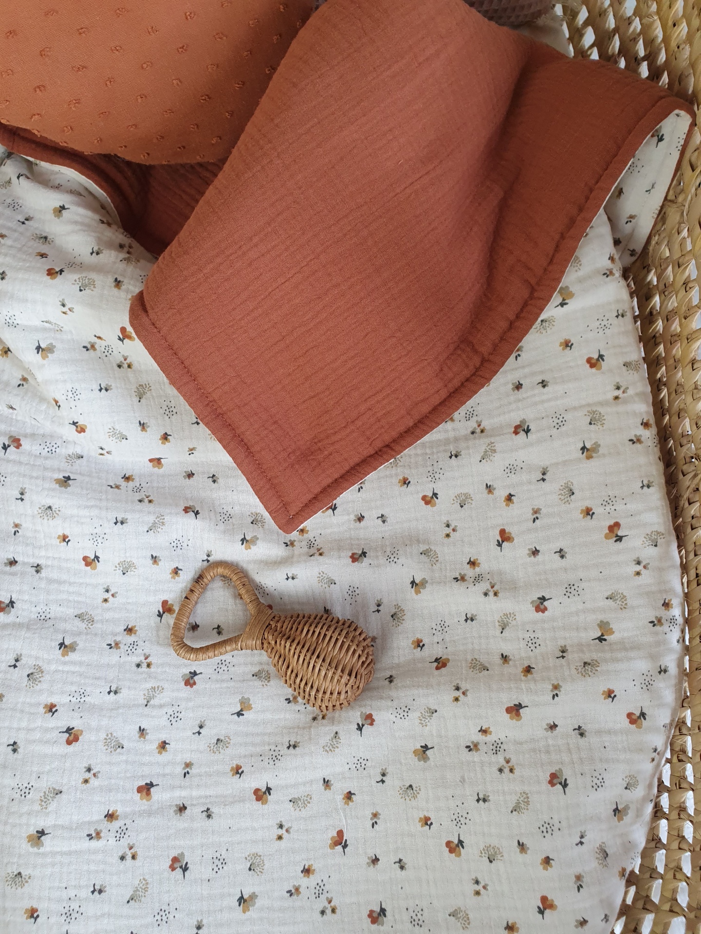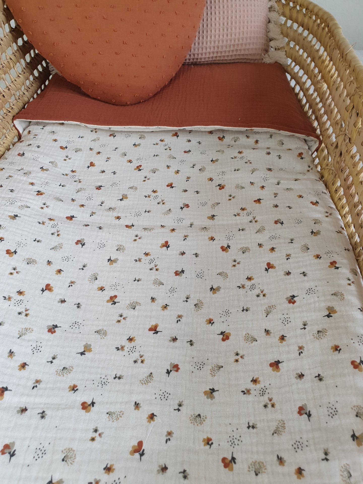 Colcha flores e ouriços 42,00 € Desconto de %. Partilhar O produto encontra-se sem stock. Colcha feita com musselina 100% algodão, muito macia e delicada para o seu bebé dormir quentinho e aconchegado. Ideal para mini berços, alcofas, carrinho/ovinho, ninhos, next to me. Medidas: 70x100cm Conselhos de lavagem: lavar à maquina ou à mão numa temperatura não superior a 40 graus. Programa de roupa delicada.