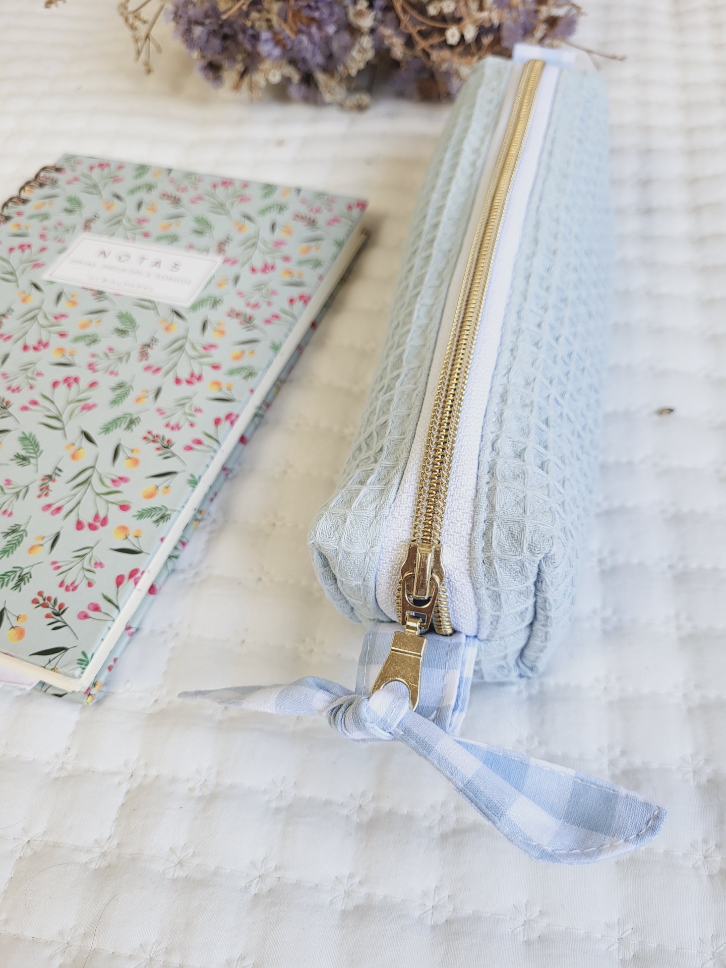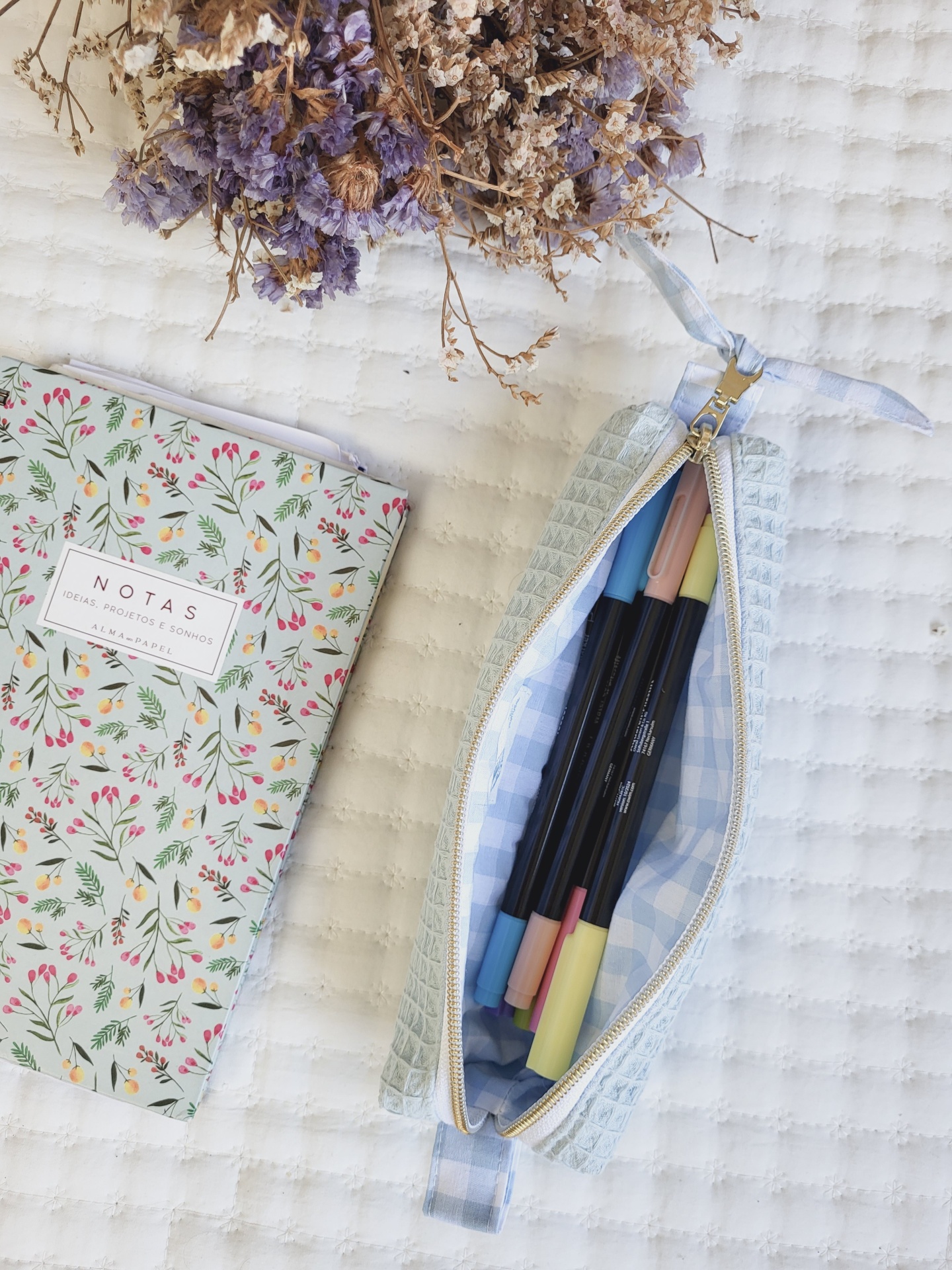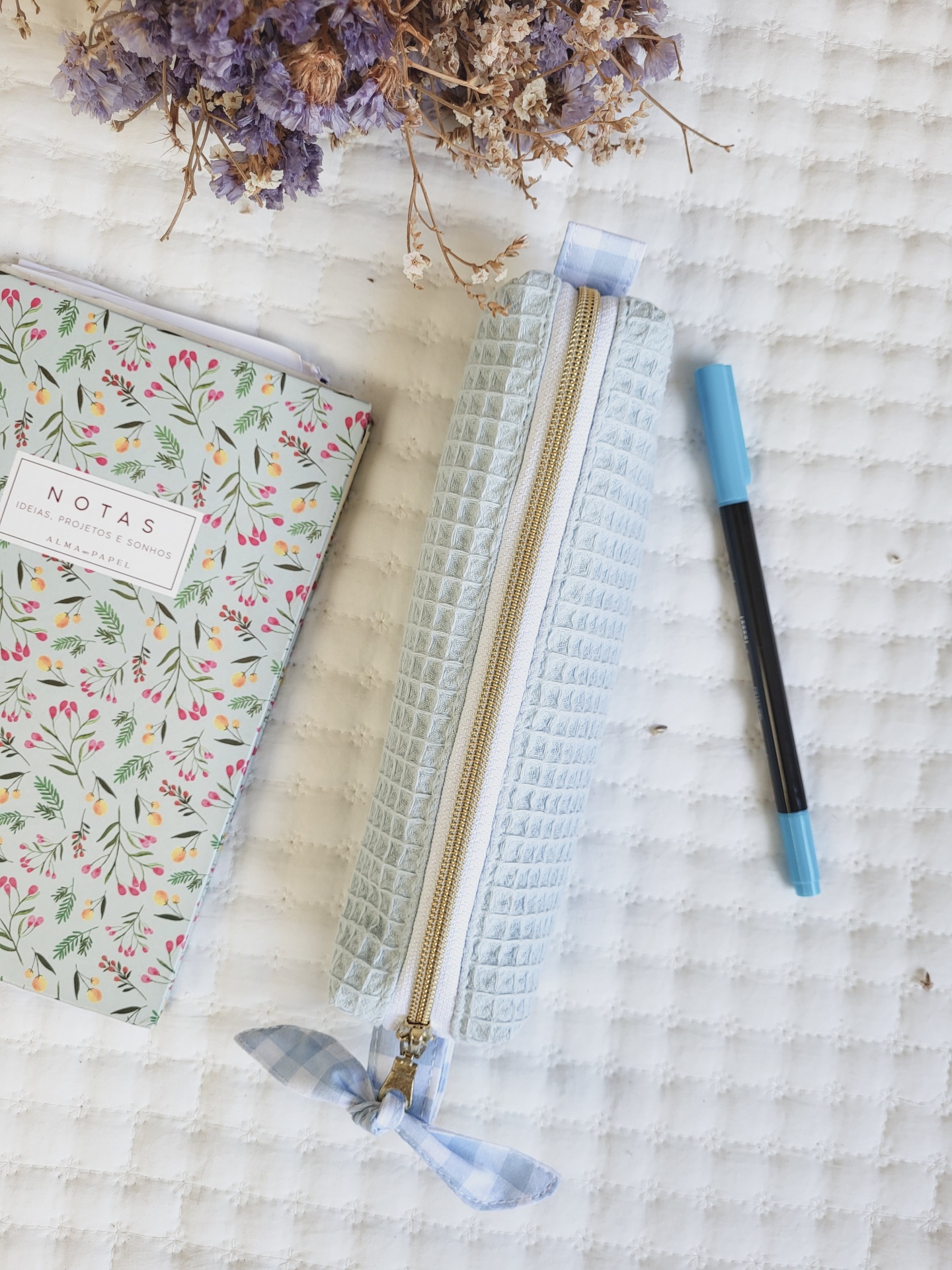 Estojo azul 14,00 € Desconto de %. Partilhar O produto encontra-se sem stock. O regresso às aulas é ao trabalho não tem de ser aborrecido! Se gosta de ter tudo organizado este estojo é o ideal! Super maleável e capiente, vai ser um gosto voltar à rotina! Tecido exterior waffle 100% algodão e interior em vichy 100% algodão. Fecho zipper muito resistente. Medidas: 20cm Tags EstojoWaffleVichybolsaazul Características