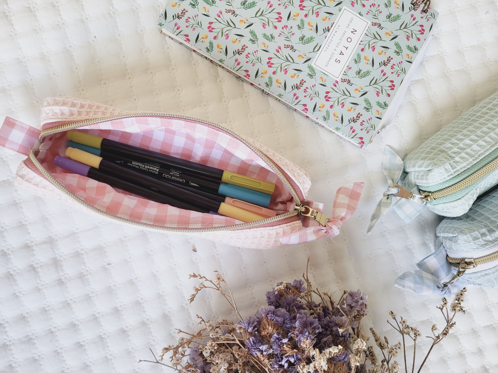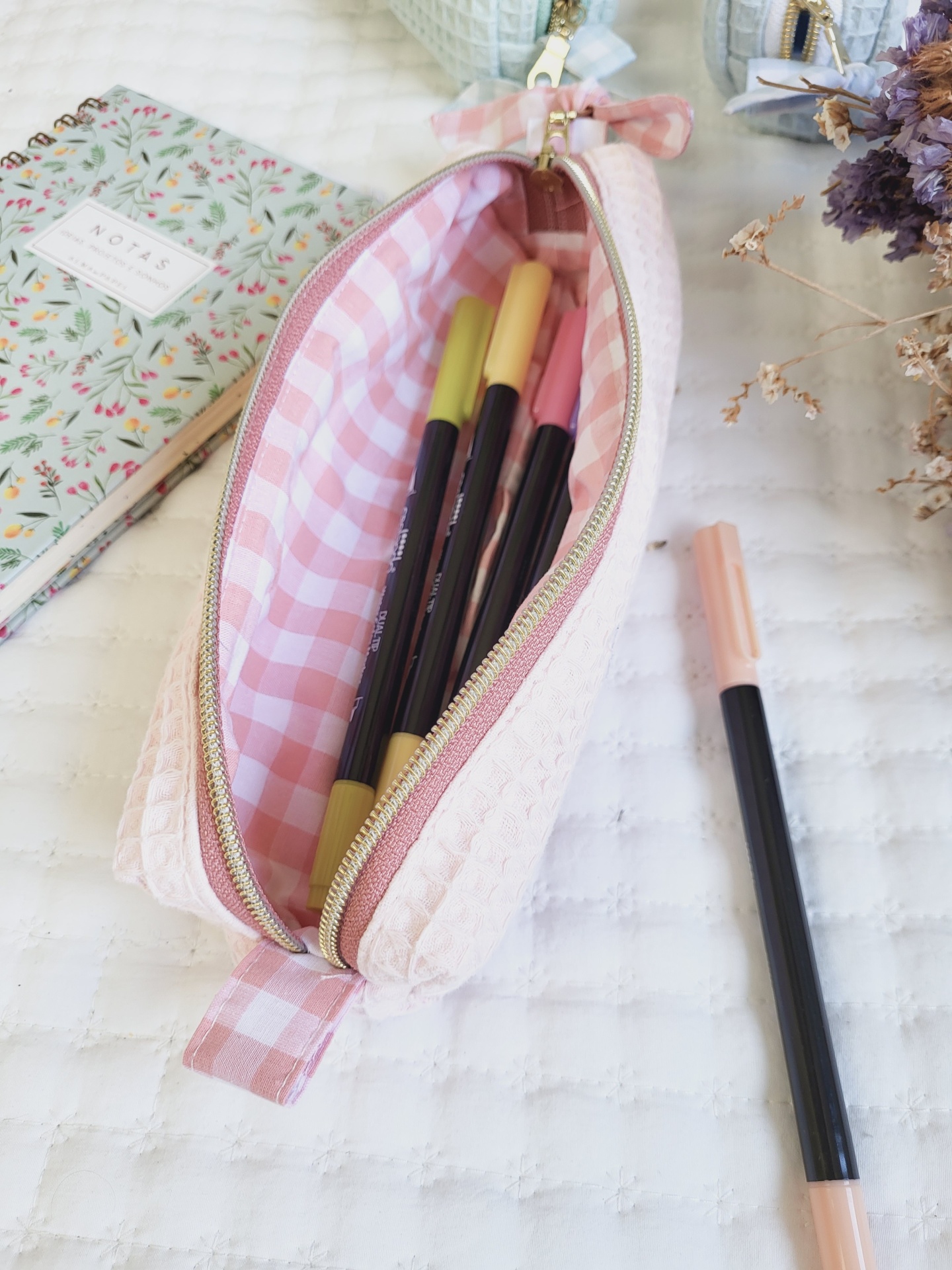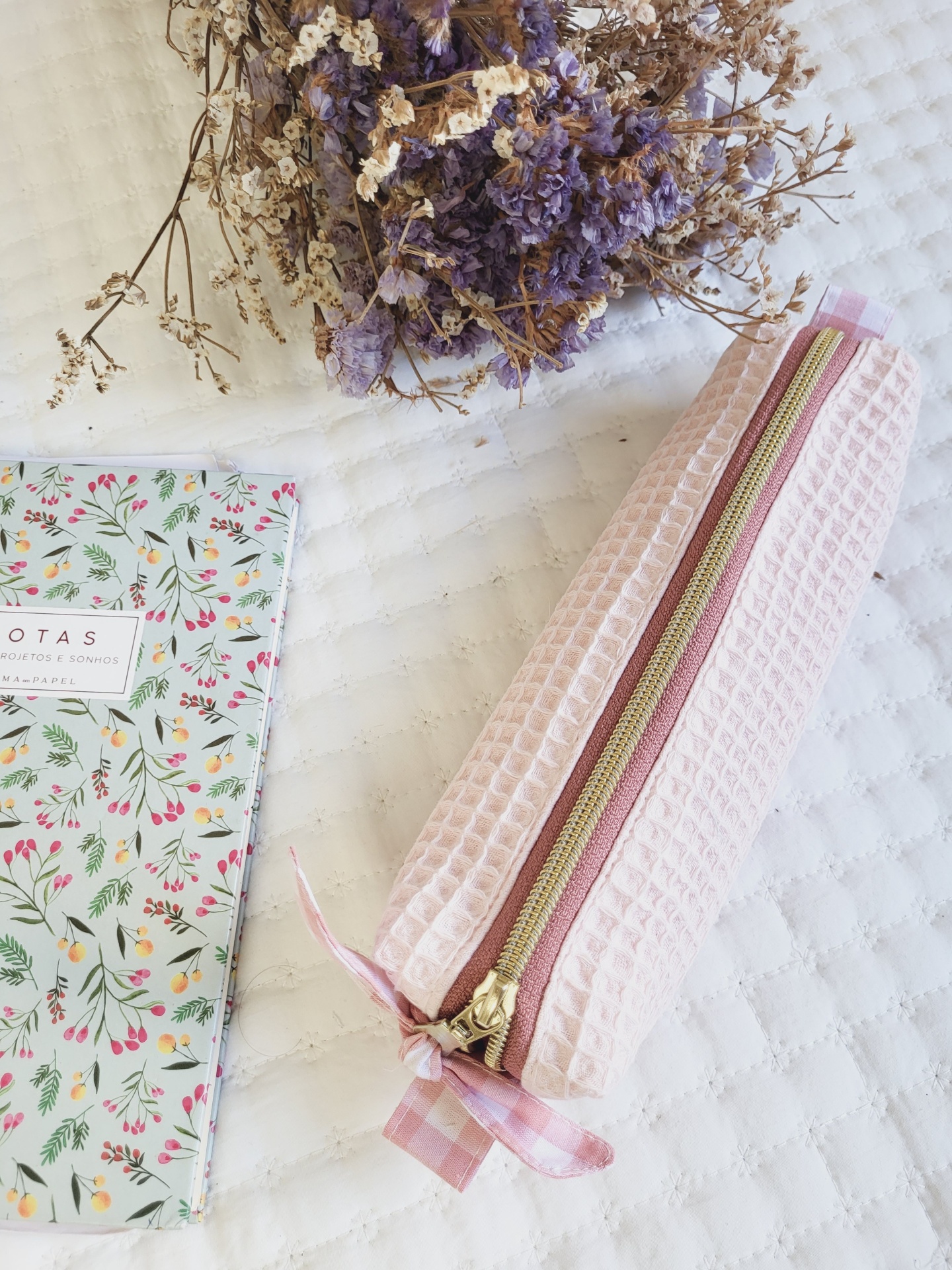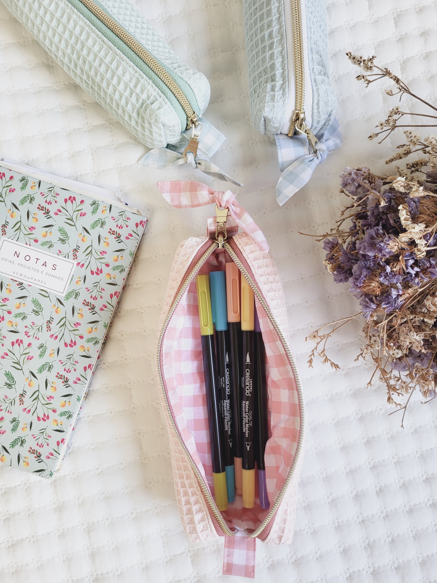 Estojo rosa 14,00 € Desconto de %. Partilhar O produto encontra-se sem stock. O regresso às aulas é ao trabalho não tem de ser aborrecido! Se gosta de ter tudo organizado este estojo é o ideal! Super maleável e capiente, vai ser um gosto voltar à rotina! Tecido exterior waffle 100% algodão e interior em vichy 100% algodão. Fecho zipper muito resistente. Medidas: 20cm Tags Estojorosa