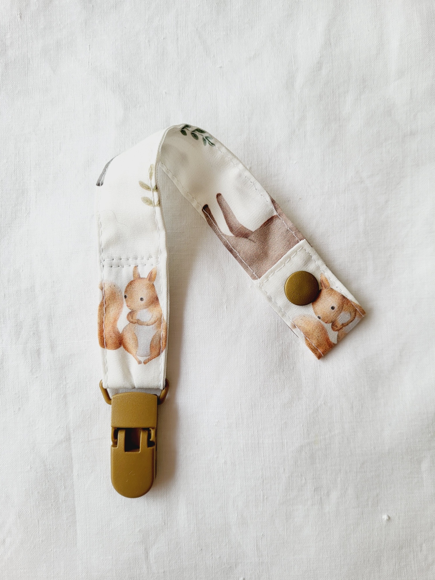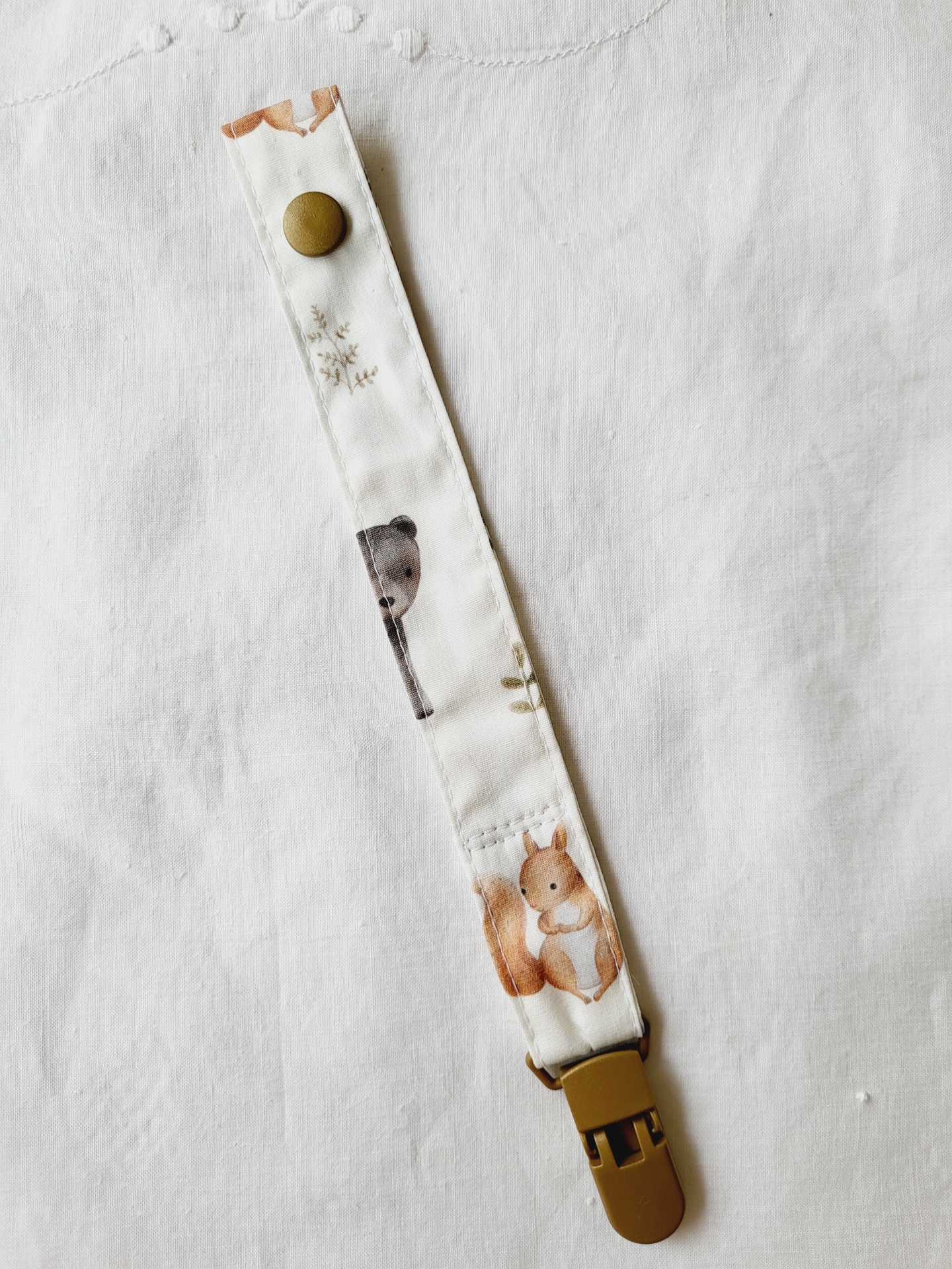 Fita chupeta bosque querido 7,00 € Desconto de %. Partilhar O produto encontra-se sem stock. Fita de chupeta ou para mordedor com mola de plástico! Muito úteis para evitar que a chupeta do seu bebé esteja sempre a cair no chão. Tecidos musselina 100% algodão.