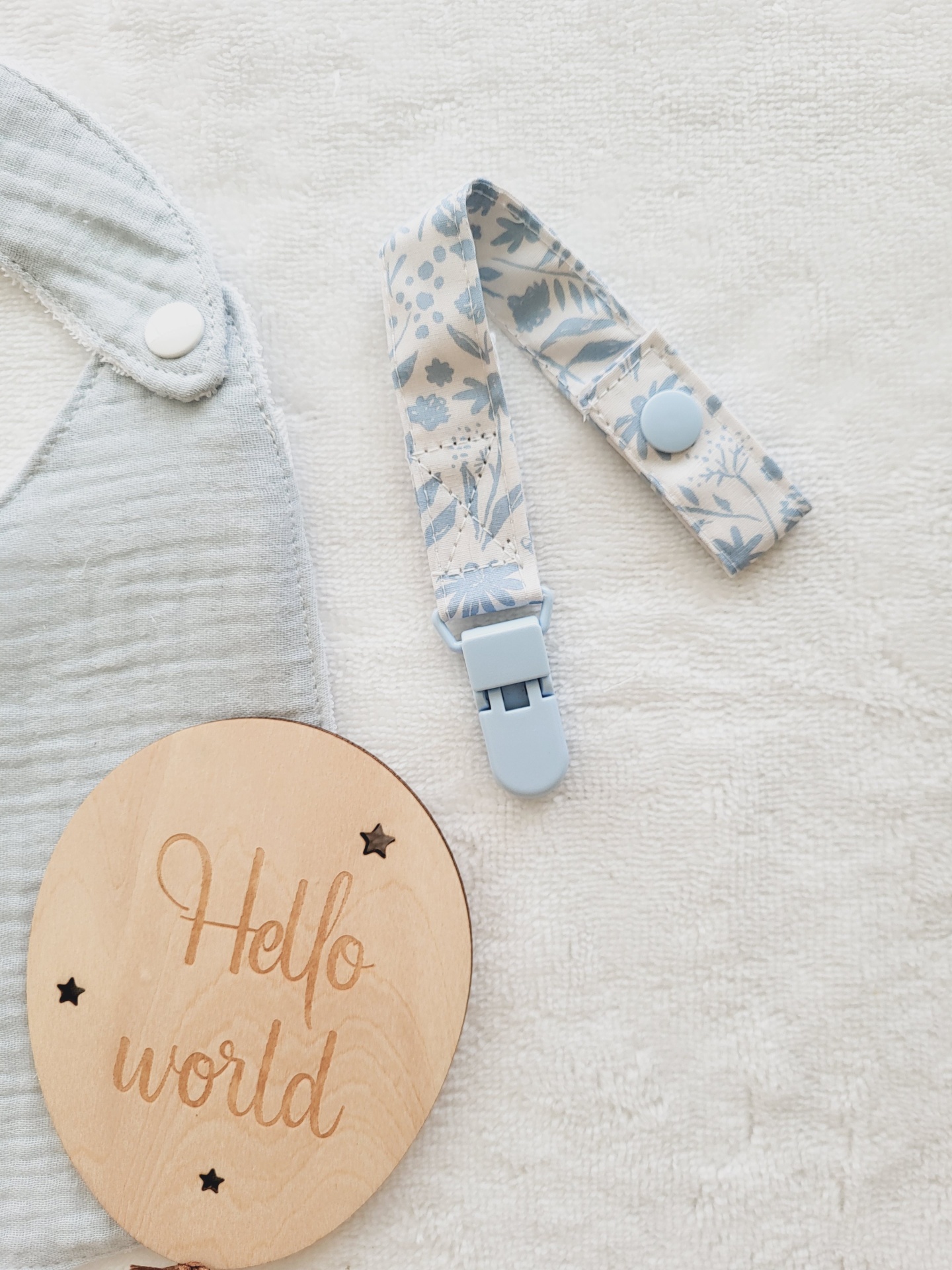 Fita chupeta floral azul 7,00 € Desconto de %. Partilhar O produto encontra-se sem stock. Fita de chupeta ou para mordedor com mola de plástico! Muito úteis para evitar que a chupeta do seu bebé esteja sempre a cair no chão. Tecidos musselina 100% algodão.