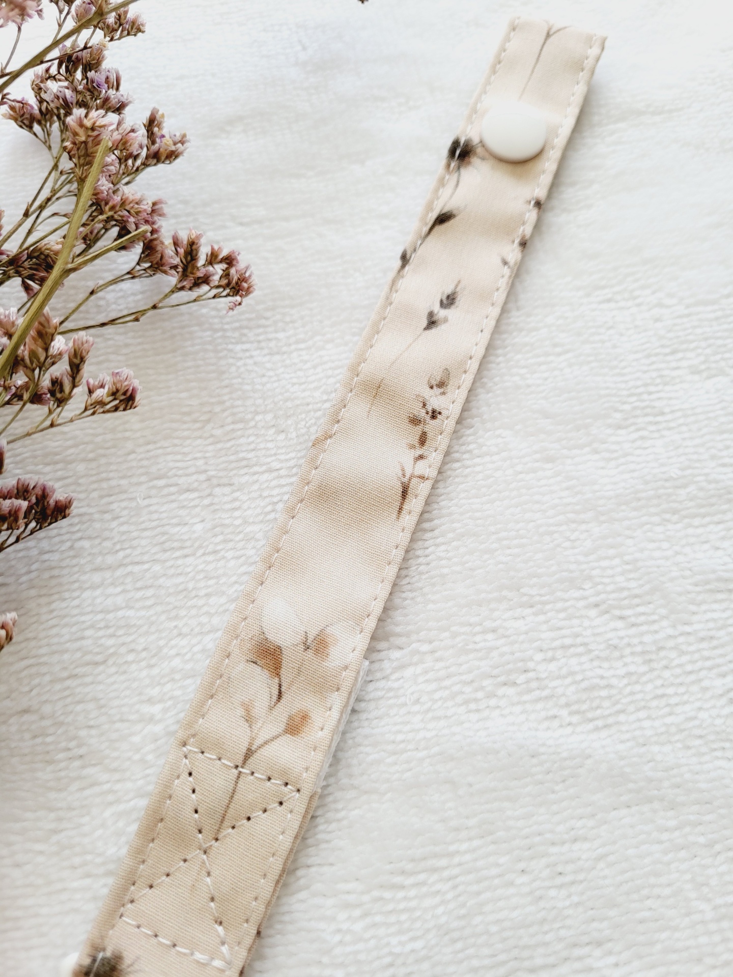 Fita chupeta floral bege 7,00 € Desconto de %. Partilhar Comprar Contactar Fita de chupeta ou para mordedor com mola de plástico! Muito úteis para evitar que a chupeta do seu bebé esteja sempre a cair no chão. Tecidos musselina 100% algodão.