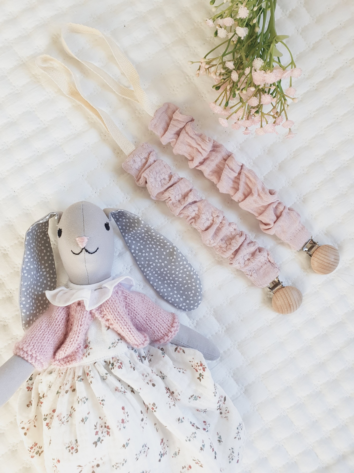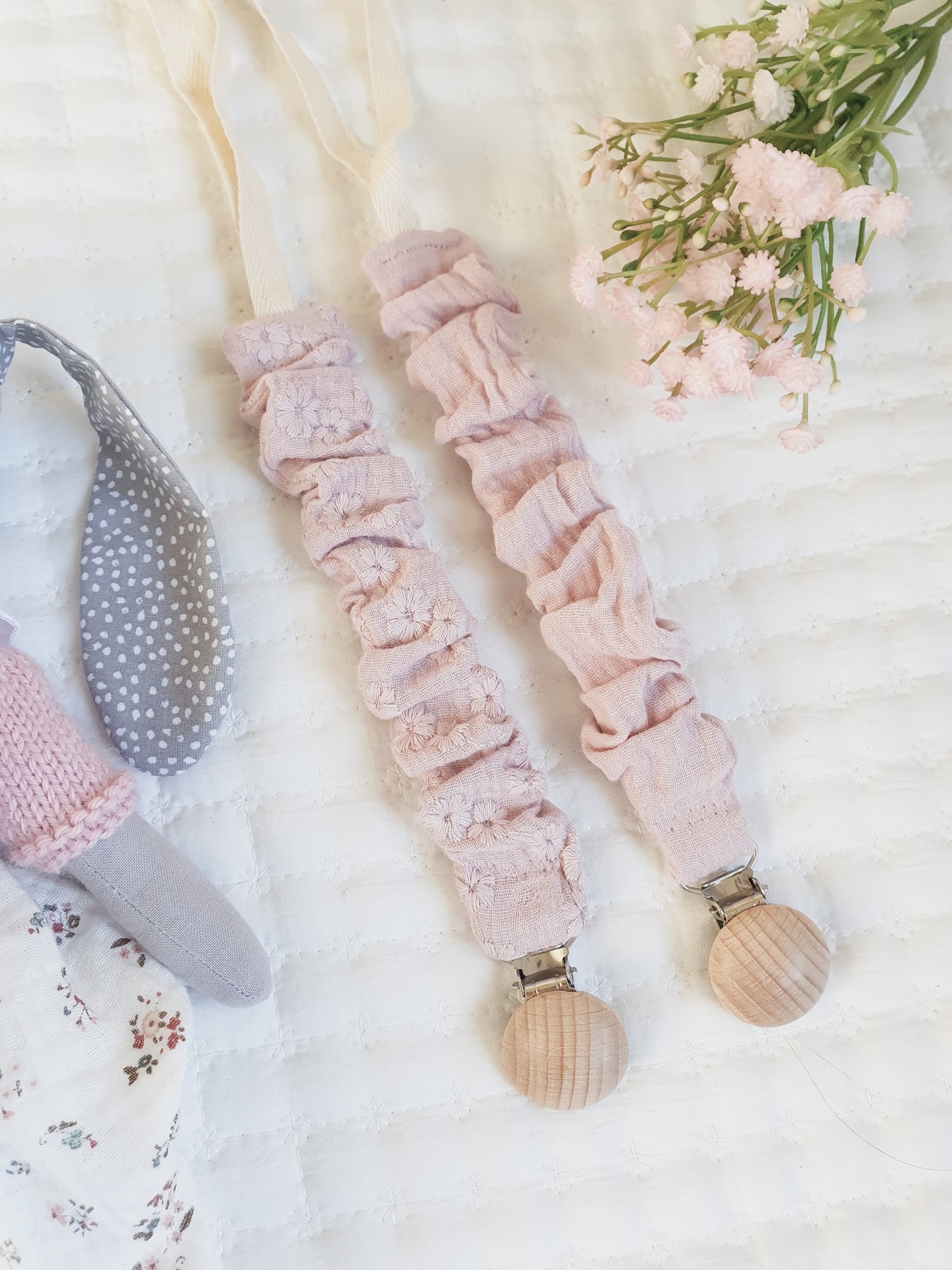 Fitas chupeta musselina bordado inglês 12,00 € Desconto de %. Partilhar O produto encontra-se sem stock. Fita de chupeta ou para mordedor com mola de madeira e cordão. Muito úteis para evitar que a chupeta do seu bebé esteja sempre a cair no chão. Tecidos musselina 100% algodão.