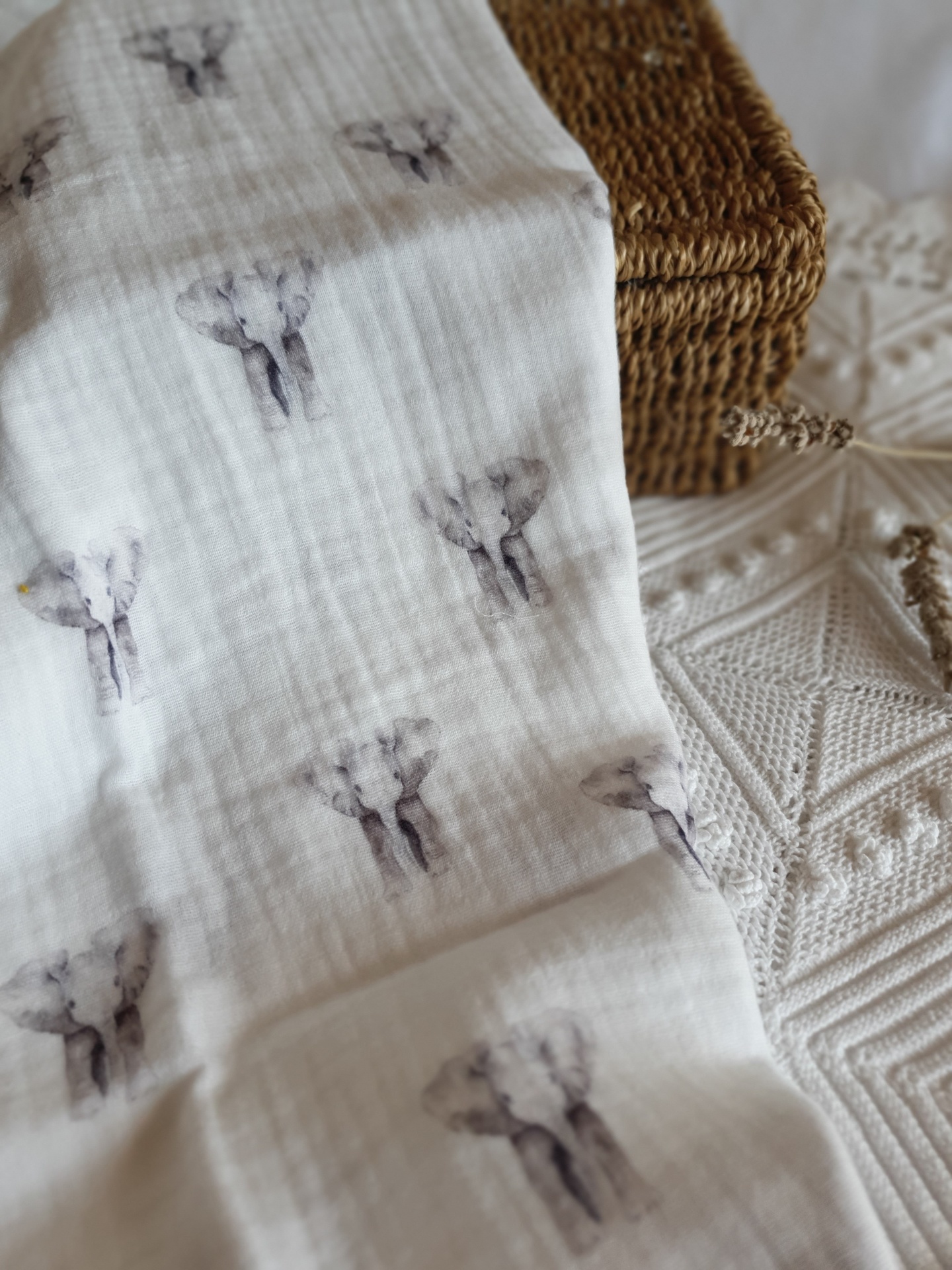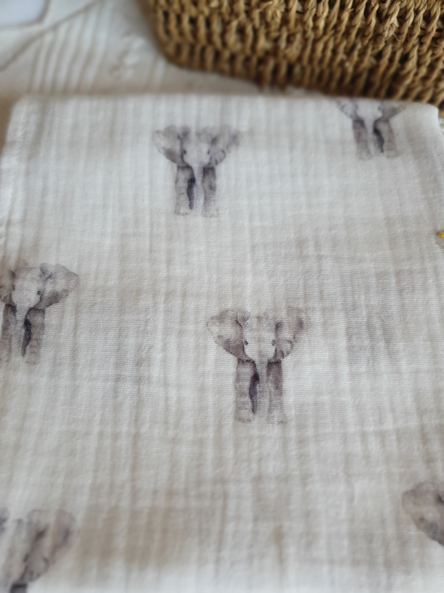 Musselina elefantes bebés 15,00 € Desconto de %. Partilhar O produto encontra-se sem stock. Fralda de pano em musseline 100% algodão, tecido absorvente, respirável e muito macio para a pele delicada do seu bebé. Medidas: 70x70cm Lavagem: à maquina ou à mão a temperatura não superior a 40°. Não passar a ferro.