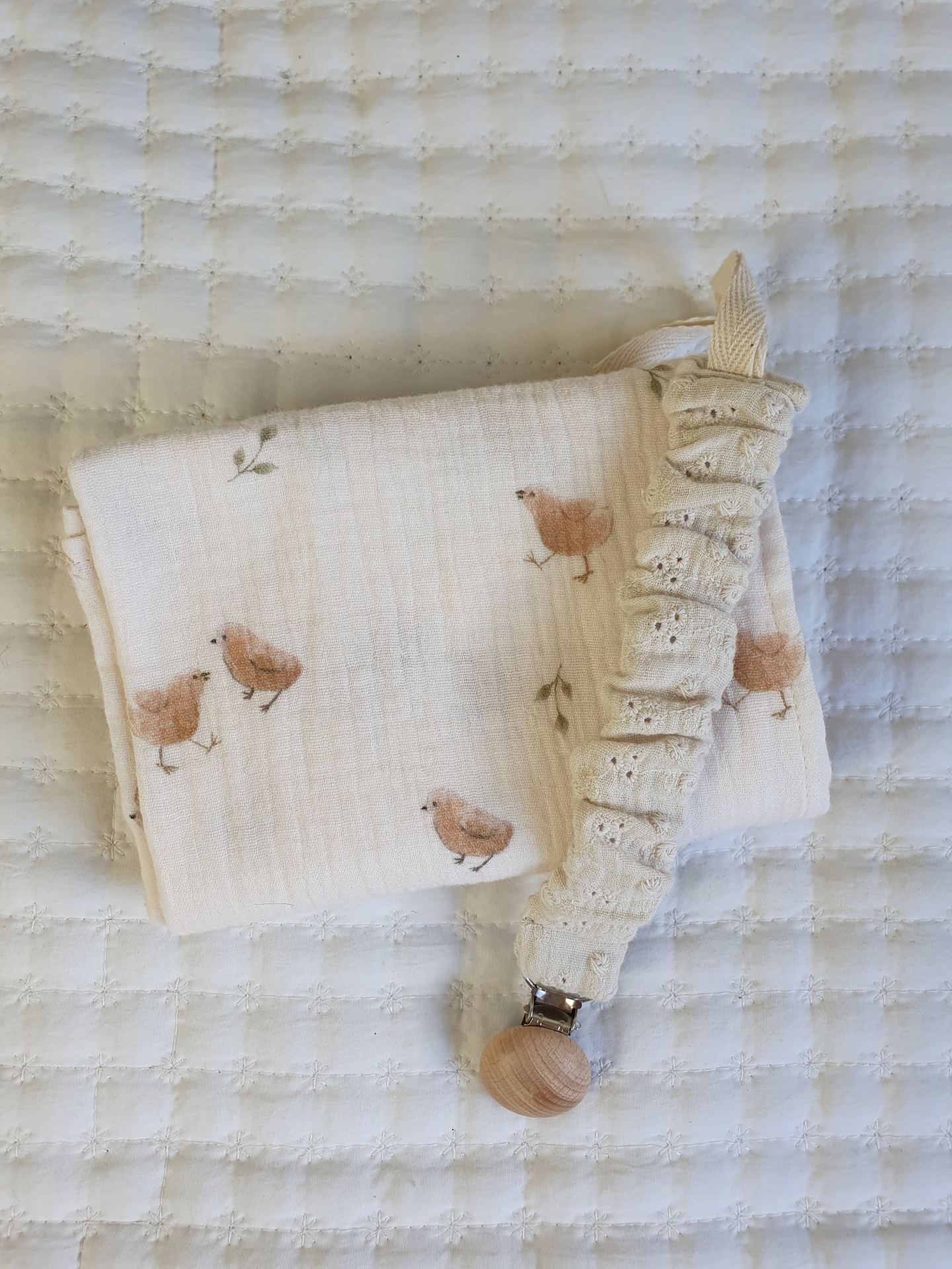 Musselina pintainhos 15,00 € Desconto de %. Partilhar O produto encontra-se sem stock. Fralda de pano em musseline 100% algodão, tecido absorvente, respirável e muito macio para a pele delicada do seu bebé. Medidas: 70x70cm Lavagem: à maquina ou à mão a temperatura não superior a 40°. Não passar a ferro.