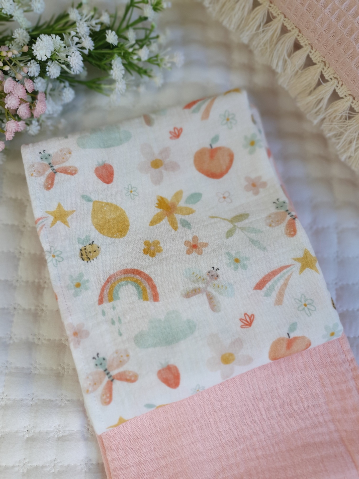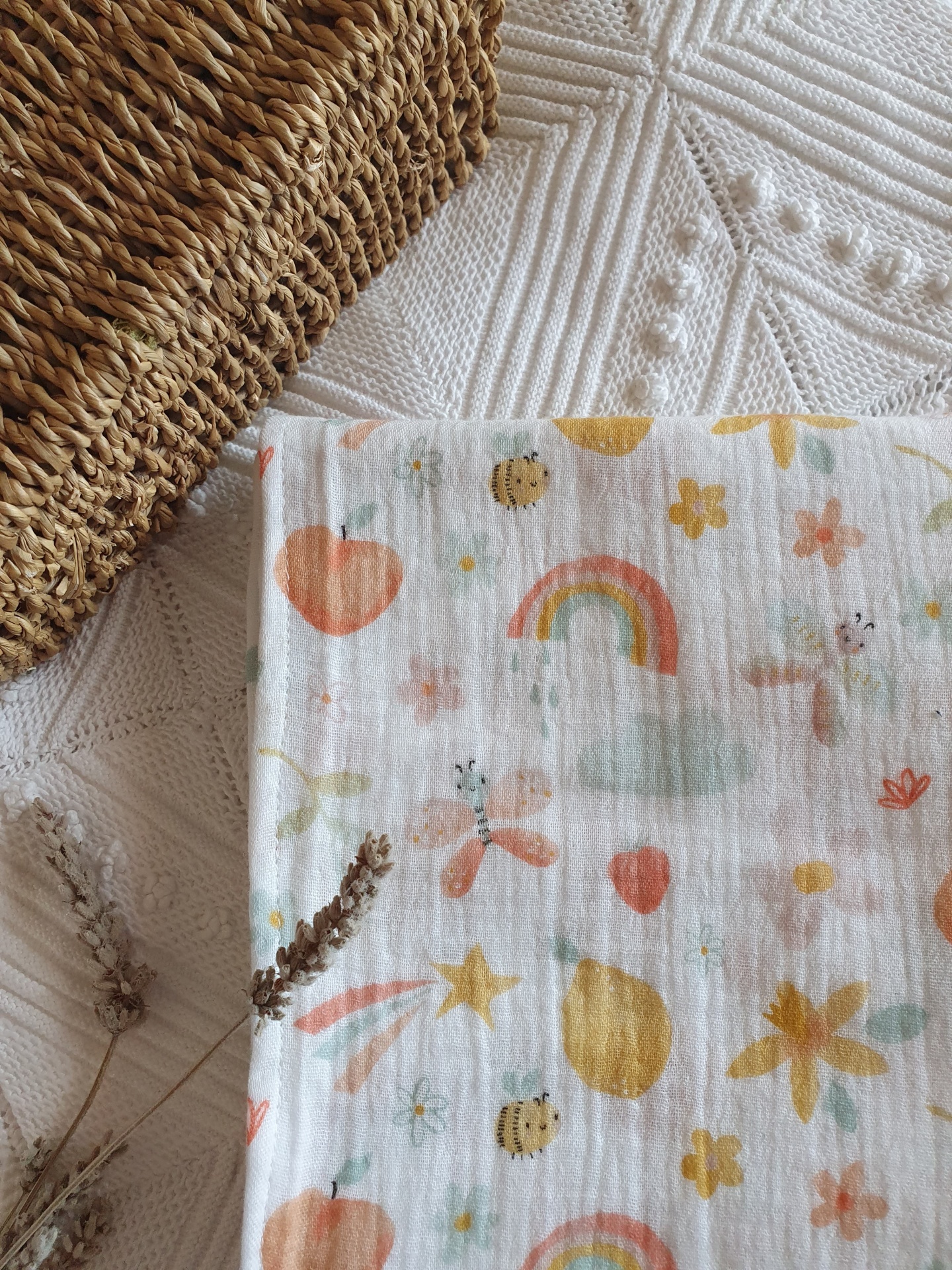 Musselina Primavera florida 15,00 € Desconto de %. Partilhar O produto encontra-se sem stock. Fralda de pano em musseline 100% algodão, tecido absorvente, respirável e muito macio para a pele delicada do seu bebé. Medidas: 70x70cm Lavagem: à maquina ou à mão a temperatura não superior a 40°. Não passar a ferro.