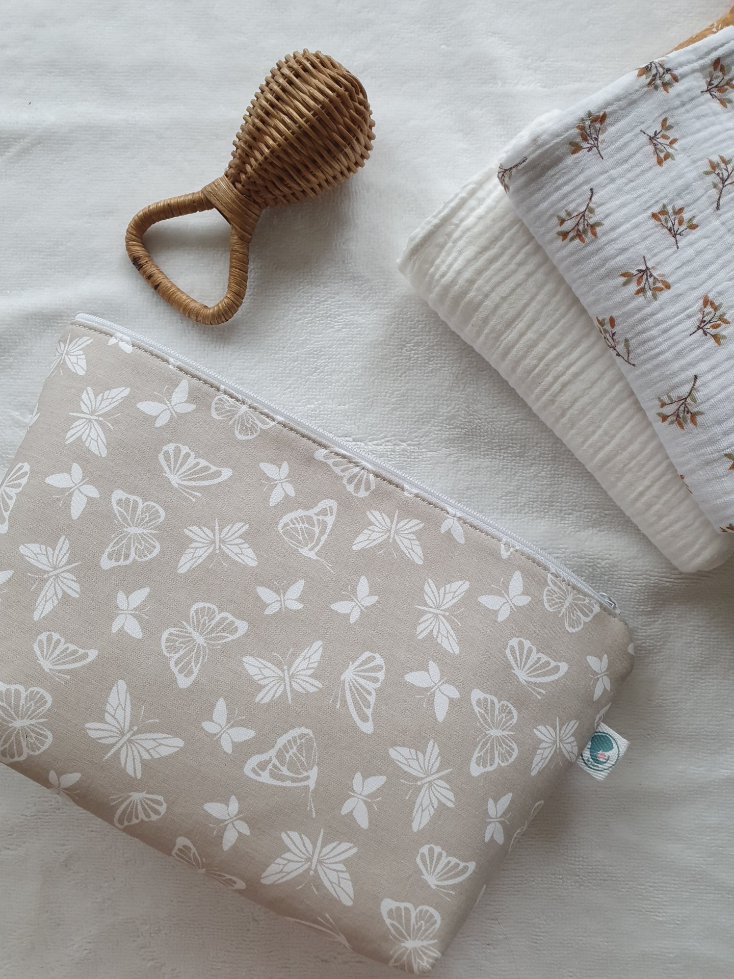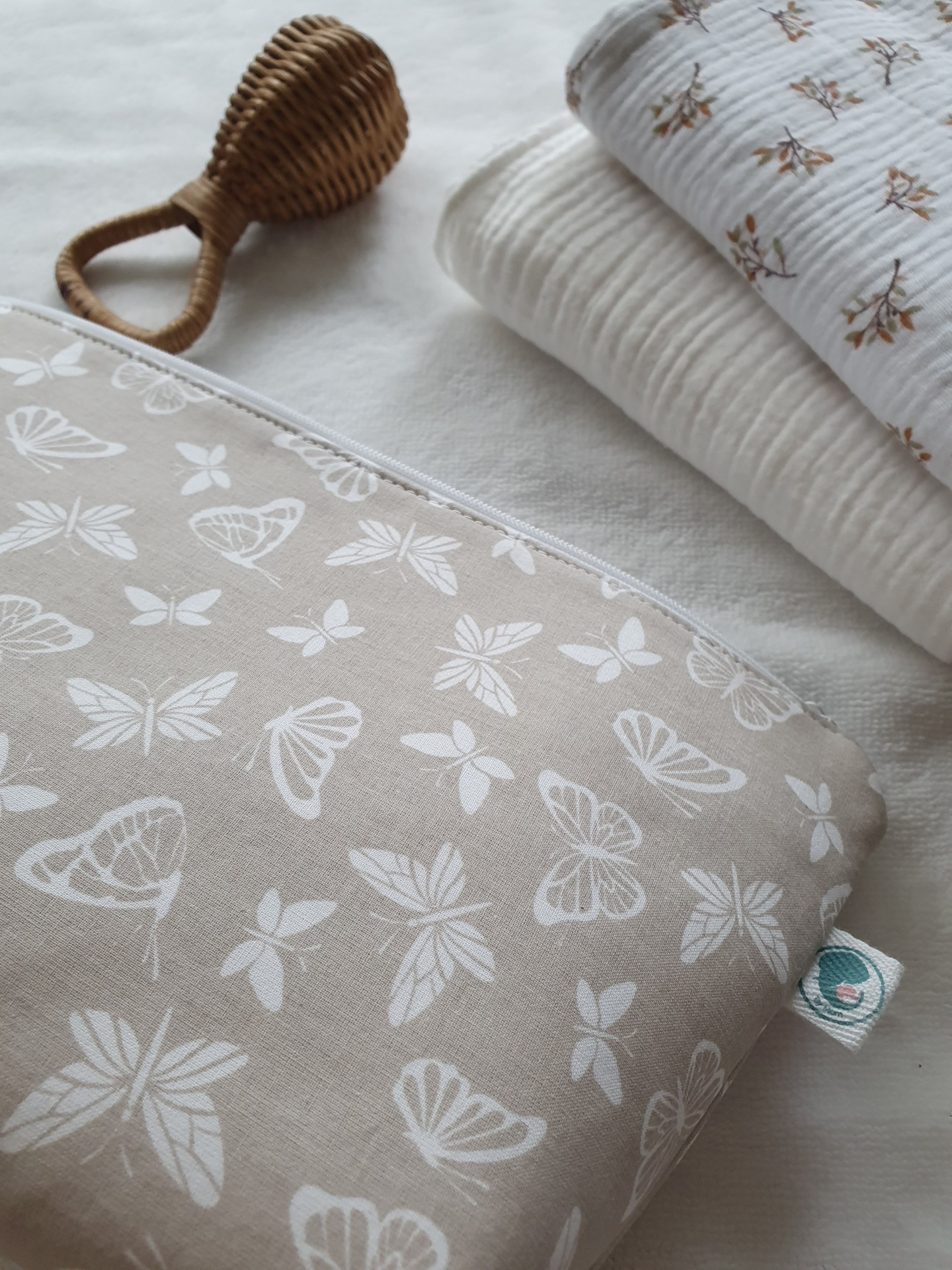 Necessaire borboletas em bege 16,00 € Desconto de %. Partilhar O produto encontra-se sem stock. Necessaire com fecho zipper no topo, em tecido 100% algodão com certificado OEKO-TEX 100. Medidas aproximadas: 17cm x 27cm x 10cm Cores: bege, cru.