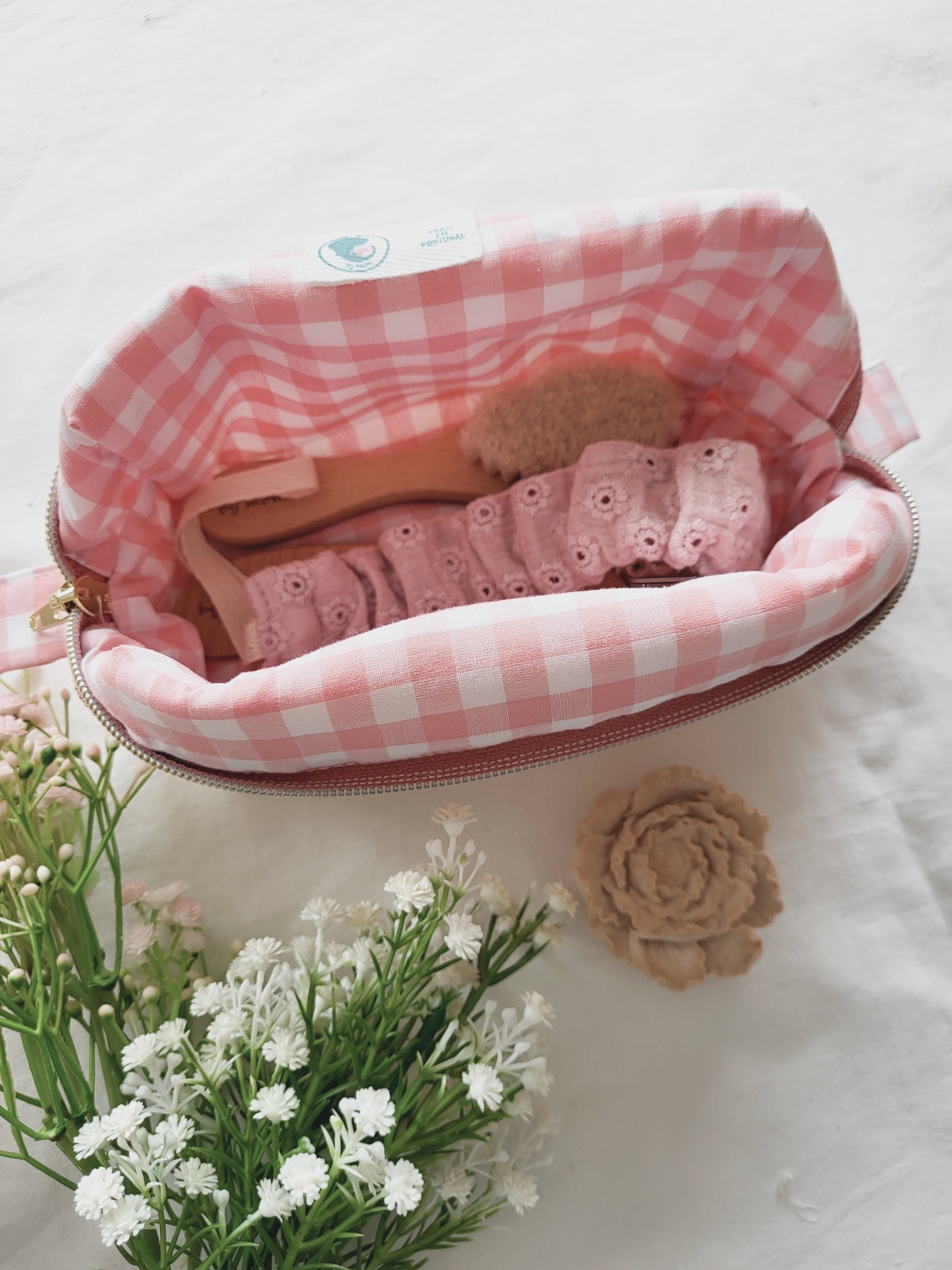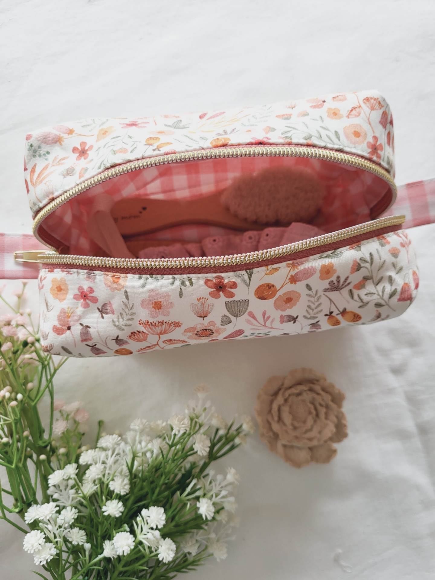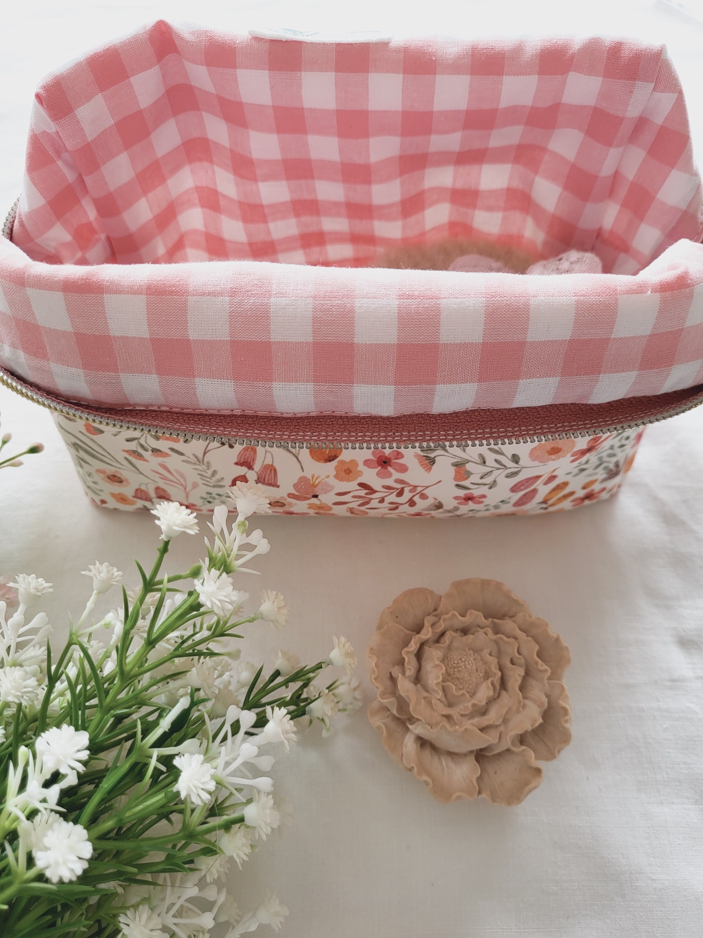 Necessaire bordado floral rosa 22,00 € Desconto de %. Partilhar O produto encontra-se sem stock. Necessaire em formato box, super útil para guardar cosméticos ou os produtos de higiene do seu bebé. De fácil abertura e acesso aos produtos. Super úteis para levar para a maternidade ou em passeio com o seu bebé de forma a ter tudo organizado. Tecidos 100% algodão, certificados com os padrões da UE. Graças ao material interior a bolsa fica sempre com a mesma forma, mesmo depois de lavar. Fecho zipper bastante resistente. Cuidados de lavagem: lavagem à mão ou à maquina a temperatura não superior a 40graus, num programa de roupa delicado. Dimensões: 18x11x10cm.
