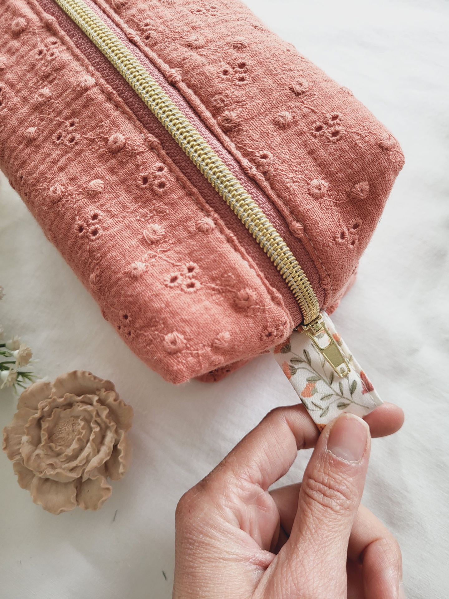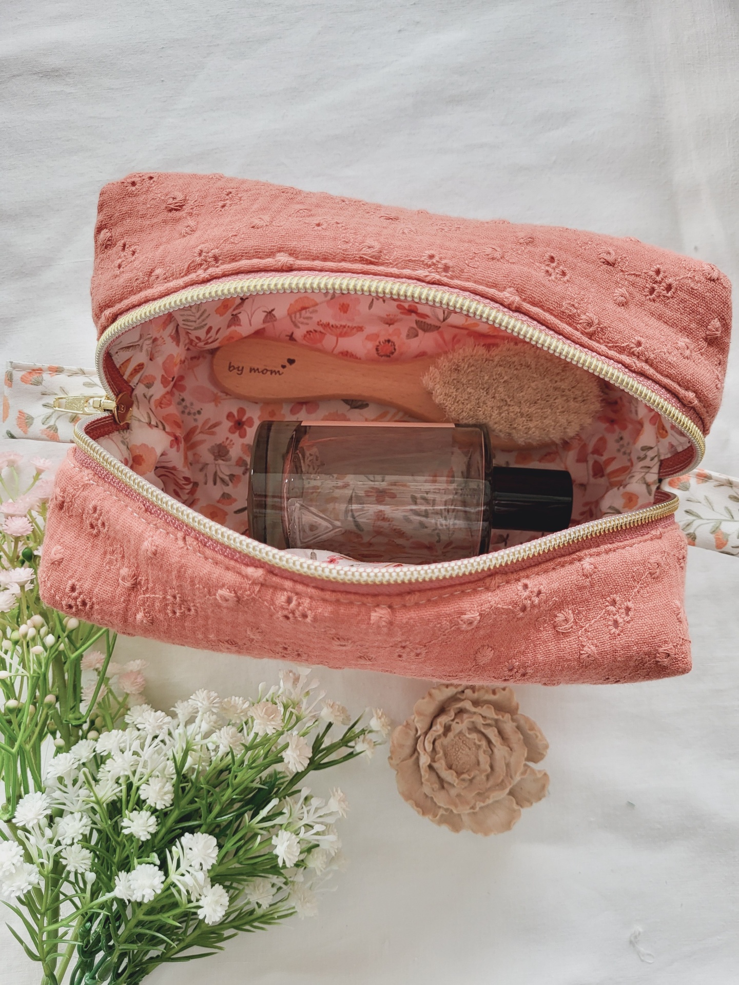 Necessaire bordado inglês coral 25,00 € Desconto de %. Partilhar O produto encontra-se sem stock. Necessaire em formato box, super útil para guardar cosméticos ou os produtos de higiene do seu bebé. De fácil abertura e acesso aos produtos. Super úteis para levar para a maternidade ou em passeio com o seu bebé de forma a ter tudo organizado. Tecidos 100% algodão, certificados com os padrões da UE. Graças ao material interior a bolsa fica sempre com a mesma forma, mesmo depois de lavar. Fecho zipper bastante resistente. Cuidados de lavagem: lavagem à mão ou à maquina a temperatura não superior a 40graus, num programa de roupa delicado. Dimensões: 18x11x10cm.