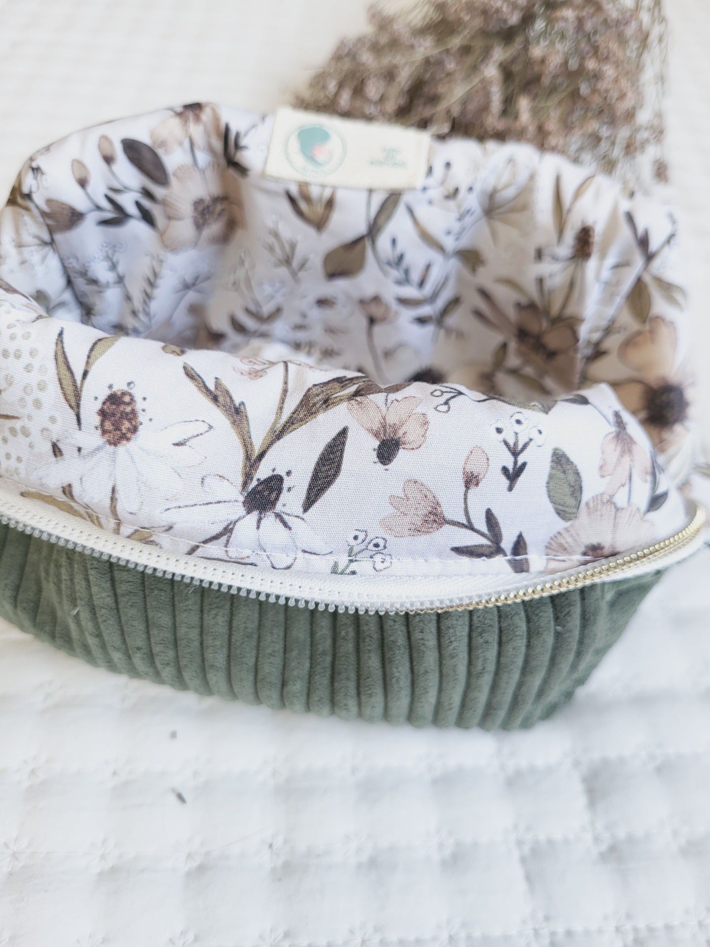 Necessaire box bombazine verde seco 28,00 € Desconto de %. Partilhar O produto encontra-se sem stock. Necessaire em formato box, super útil para guardar cosméticos ou os produtos de higiene do seu bebé. De fácil abertura e acesso aos produtos. Super úteis para levar para a maternidade ou em passeio com o seu bebé de forma a ter tudo organizado. Tecido interior 100% algodão. Tecido exterior bombazine 100% algodão. Graças ao material interior a bolsa fica sempre com a mesma forma, mesmo depois de lavar. Fecho zipper bastante resistente. Cuidados de lavagem: lavagem à mão ou à maquina a temperatura não superior a 40graus, num programa de roupa delicado. Dimensões: 17x12x10cm.