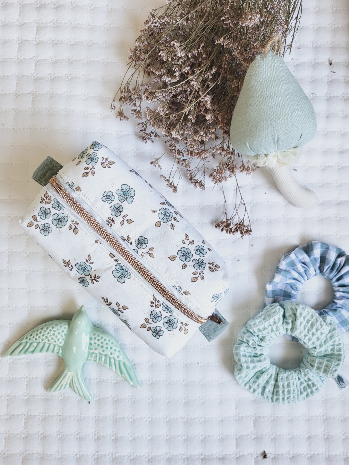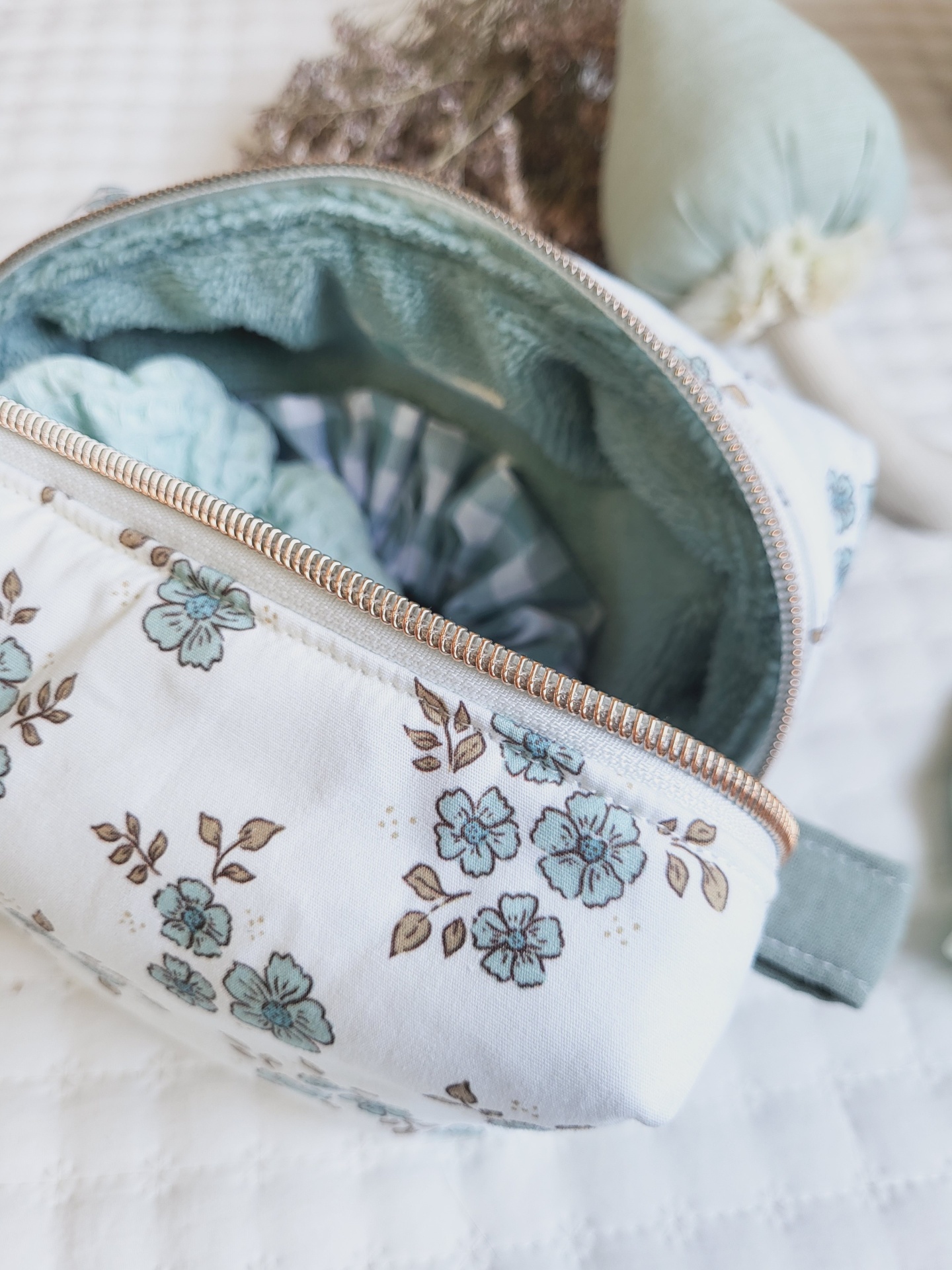 Necessaire box floral verde água 28,00 € Desconto de %. Partilhar Comprar Contactar 1 unidades em stock Necessaire em formato box, super útil para guardar cosméticos ou os produtos de higiene do seu bebé. De fácil abertura e acesso aos produtos. Super úteis para levar para a maternidade ou em passeio com o seu bebé de forma a ter tudo organizado. Tecido exterior 100% algodão. Tecido interior turco bambu 40% viscose, 40% poliéster, 20% algodão. Graças ao material interior a bolsa fica sempre com a mesma forma, mesmo depois de lavar. Fecho zipper bastante resistente. Cuidados de lavagem: lavagem à mão ou à maquina a temperatura não superior a 40graus, num programa de roupa delicado. Dimensões: 17x12x10cm.