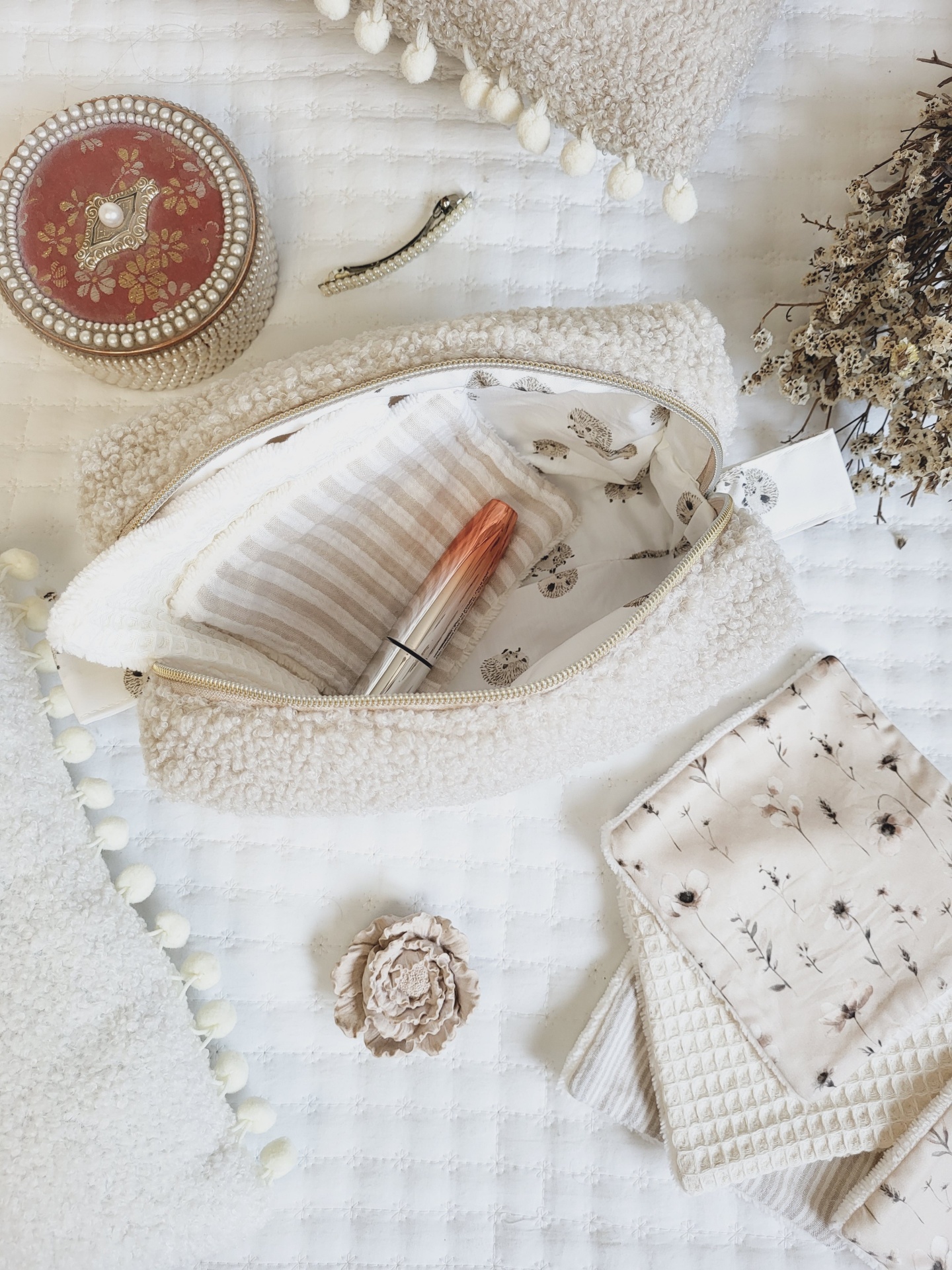 Necessaire box teddy bege 29,00 € Desconto de %. Partilhar O produto encontra-se sem stock. Necessaire em formato box, super útil para guardar cosméticos ou os produtos de higiene do seu bebé. De fácil abertura e acesso aos produtos. Super úteis para levar para a maternidade ou em passeio com o seu bebé de forma a ter tudo organizado. Tecido interior 100% algodão. Graças ao material interior a bolsa fica sempre com a mesma forma, mesmo depois de lavar. Fecho zipper bastante resistente. Cuidados de lavagem: lavagem à mão ou à maquina a temperatura não superior a 40graus, num programa de roupa delicado. Dimensões: 24x16x12cm.