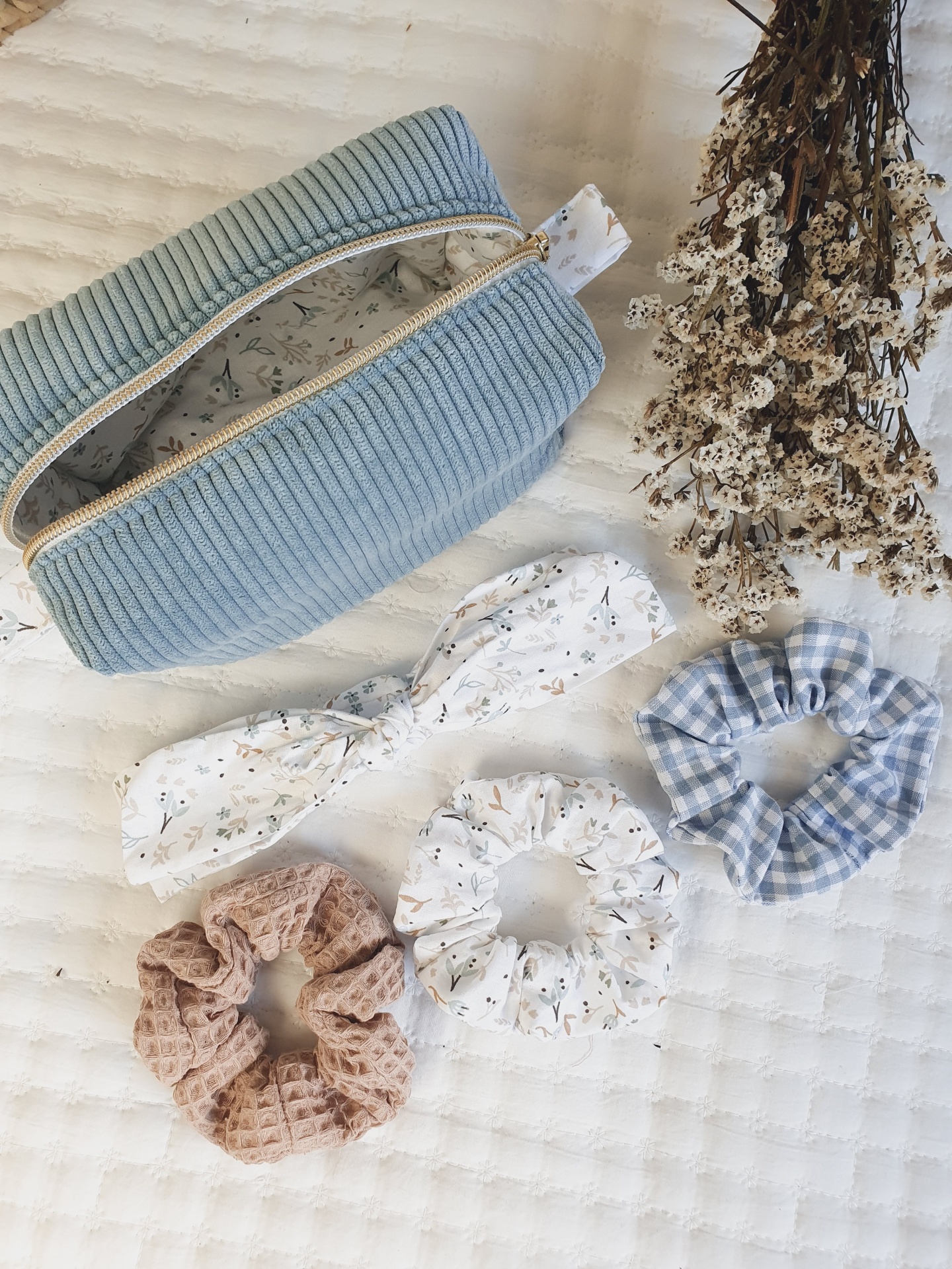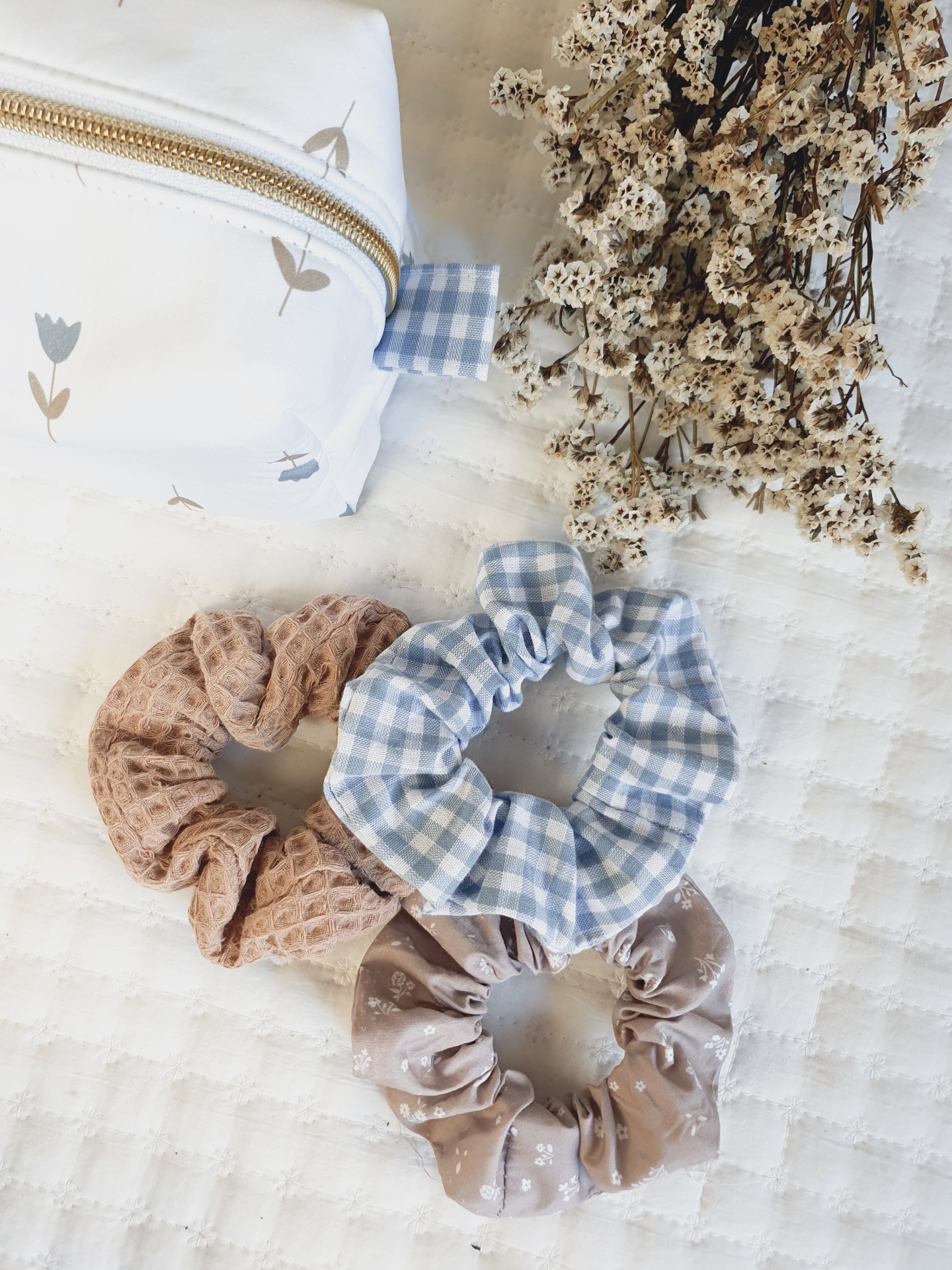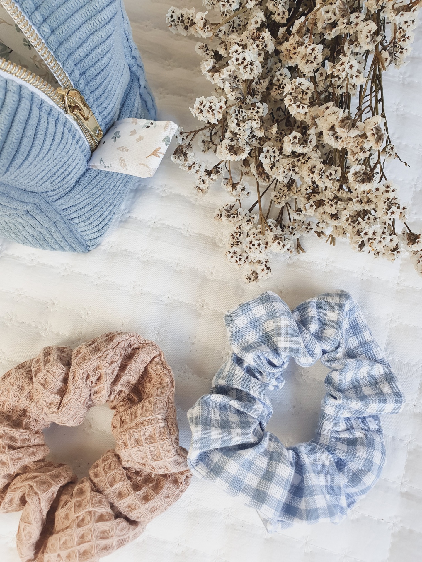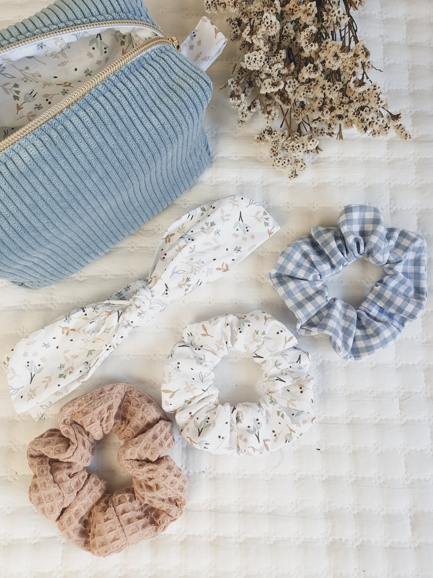 Scrunchies azuis e beges 6,00 € 7,00 € Desconto de %. Partilhar Padrão Vichy azul Floral Waffle castanho Floral bege Comprar Contactar O acessório ideal para o seu cabelo! Com tecidos 100% algodão e elástico ajustável a qualquer pulso e cabelo. Muito maleável e prático!