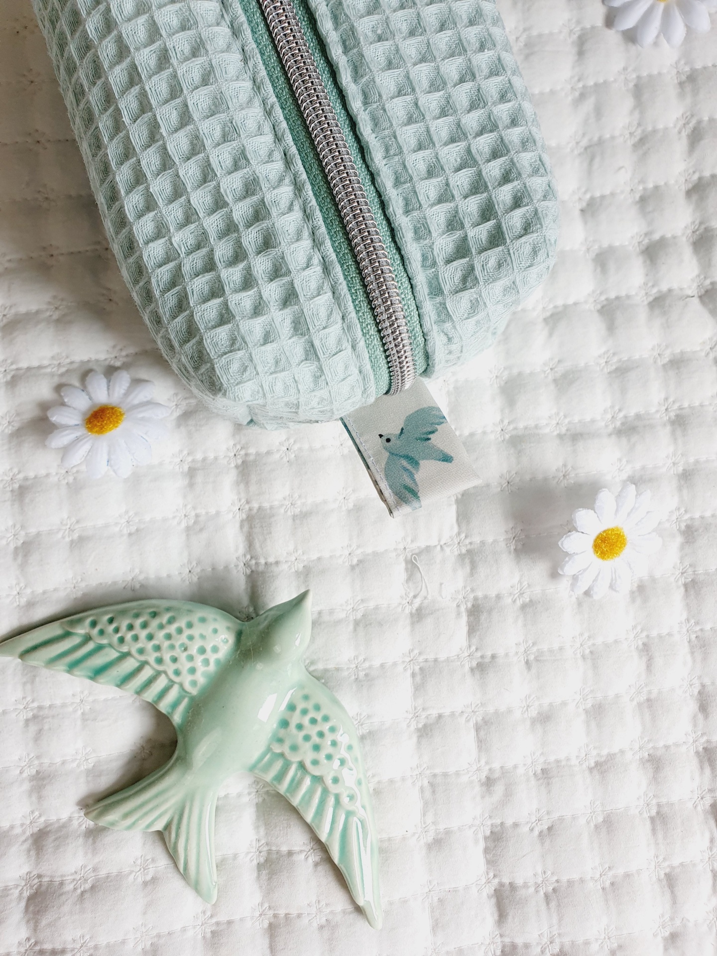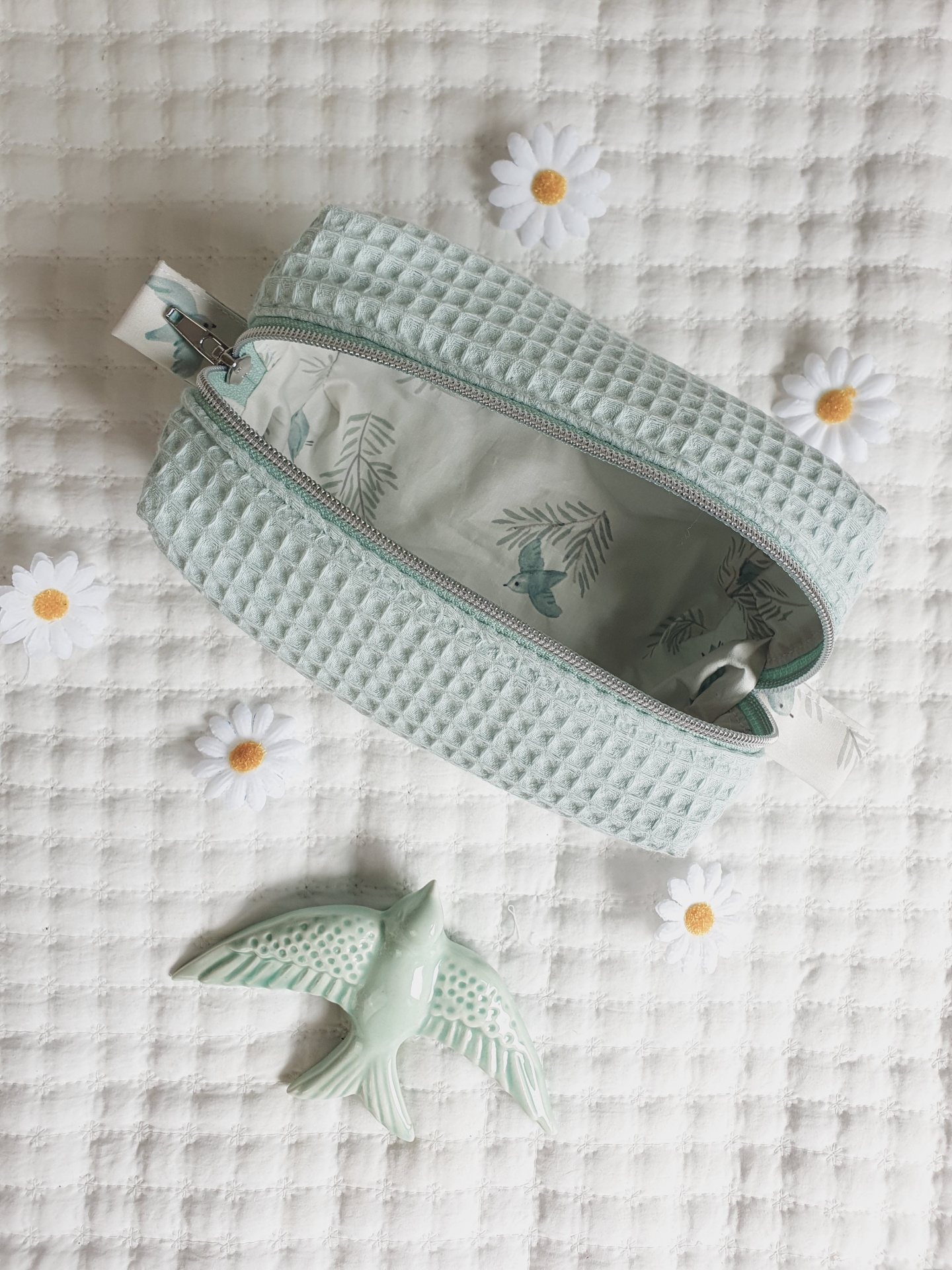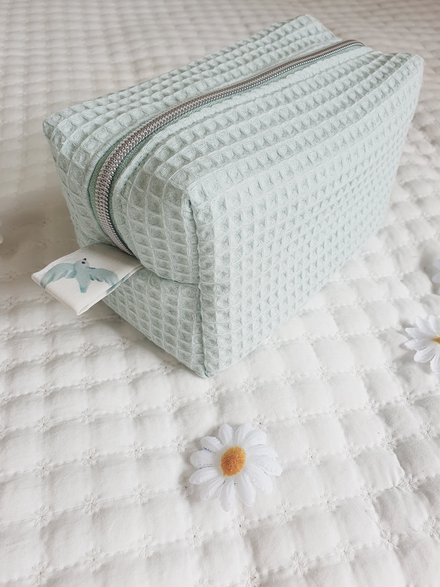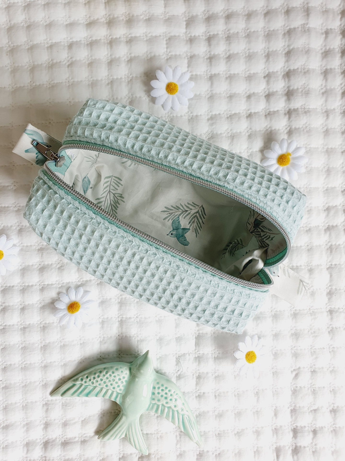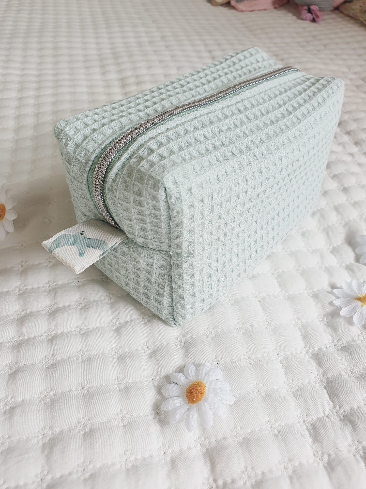 Necessaire box verde água 20,00 € 24,00 € Desconto de %. Partilhar O produto encontra-se sem stock. Necessaire em formato box, super útil para guardar cosméticos ou os produtos de higiene do seu bebé. De fácil abertura e acesso aos produtos. Super úteis para levar para a maternidade ou em passeio com o seu bebé de forma a ter tudo organizado. Tecidos 100% algodão, certificados com os padrões da UE. Graças ao material interior a bolsa fica sempre com a mesma forma, mesmo depois de lavar. Fecho zipper bastante resistente. Cuidados de lavagem: lavagem à mão ou à maquina a temperatura não superior a 40graus, num programa de roupa delicado. Dimensões: 18x11x10cm.