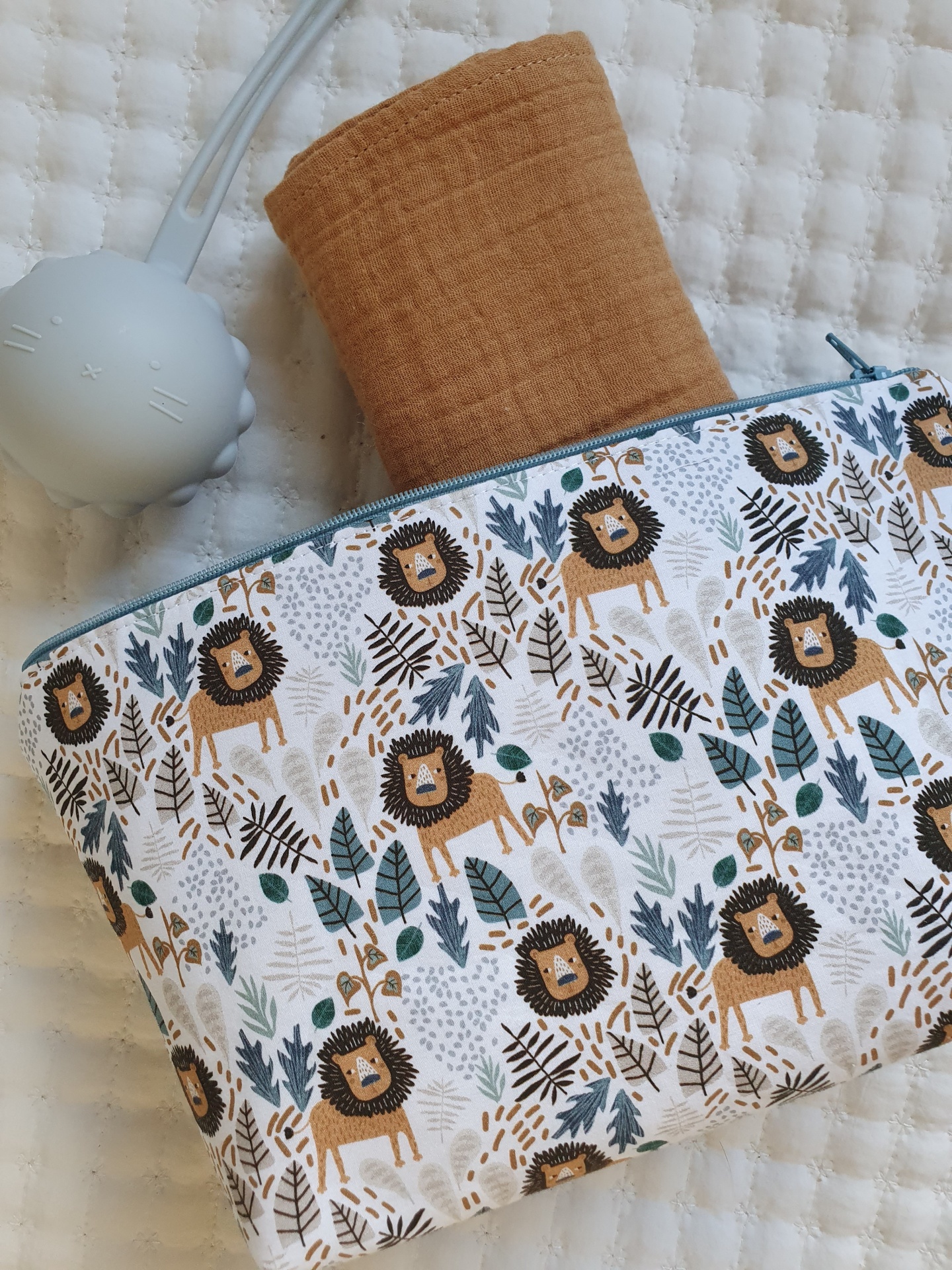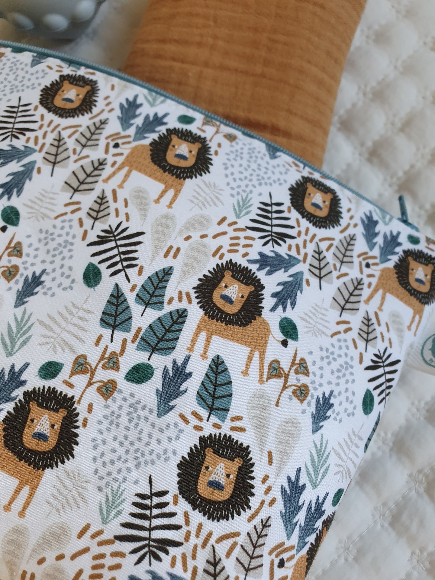 Necessaire leões 12,00 € 15,00 € Desconto de 20%. Partilhar Comprar Contactar Necessaire com fecho zipper no topo, em tecido 100% algodão com certificado OEKO-TEX 100. Medidas aproximadas: 17cm x 27cm x 10cm Cores: azul, cinza, mostarda, bege.