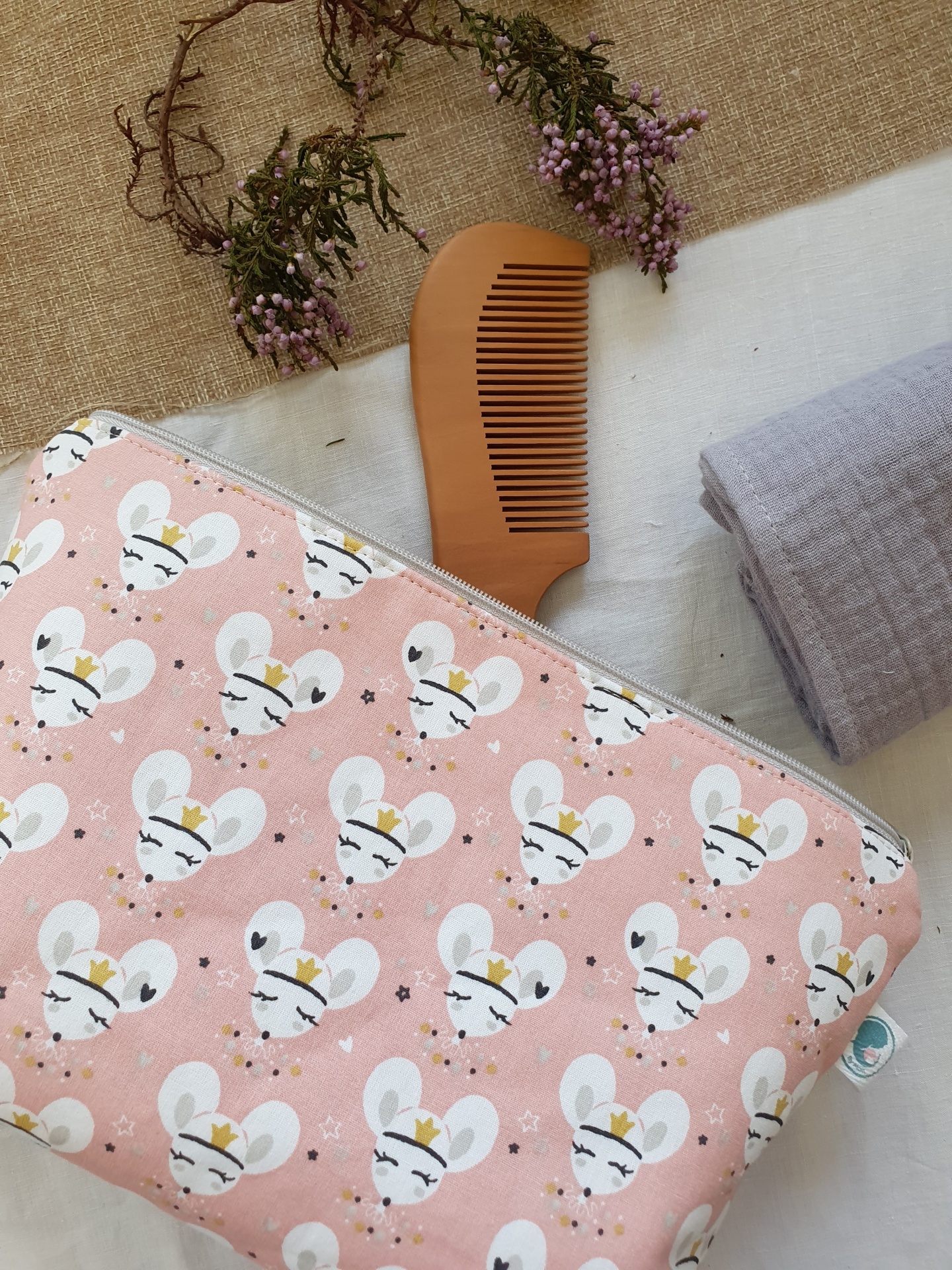 Necessaire ratinhas 12,00 € 15,00 € Desconto de 20%. Partilhar O produto encontra-se sem stock. Necessaire com fecho zipper no topo, em tecido 100% algodão com certificado OEKO-TEX 100. Medidas aproximadas: 17cm x 27cm x 10cm Cores: cinza, rosa, dourado;