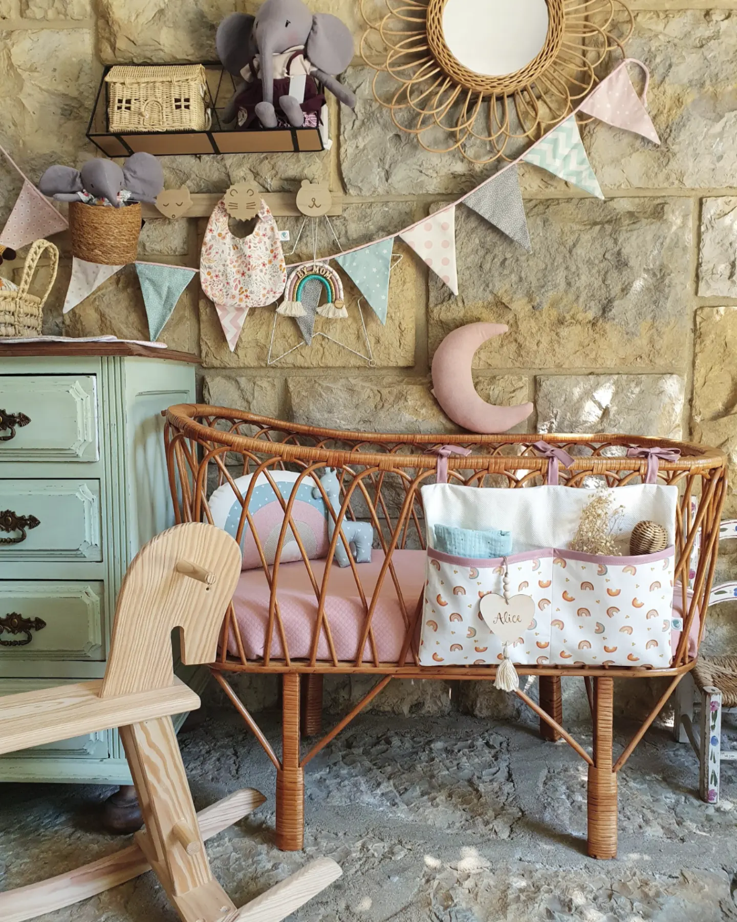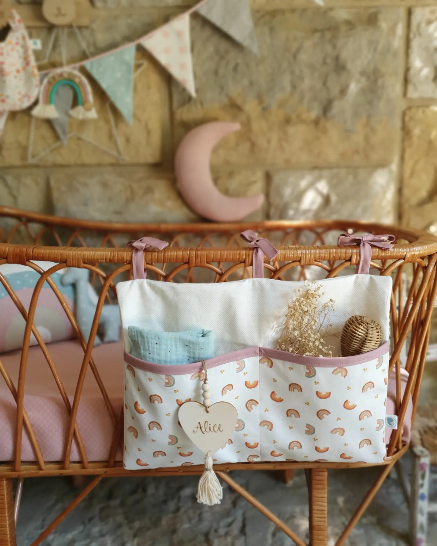 Organizador de berço arco-íris pastel 32,00 € Desconto de %. Partilhar O produto encontra-se sem stock. O organizador de berço é aquele produto muito útil para ter os produtos essências para o seu bebé sempre à mão! Fraldas, musselinas, toalhitas, o brinquedo preferido do seu bebé... Feito com tecidos 100% algodão e dois bolsos bastante grandes para guardar o que desejar. Prende-se ao berço com 3 fitas para que fique bem preso e estruturado.