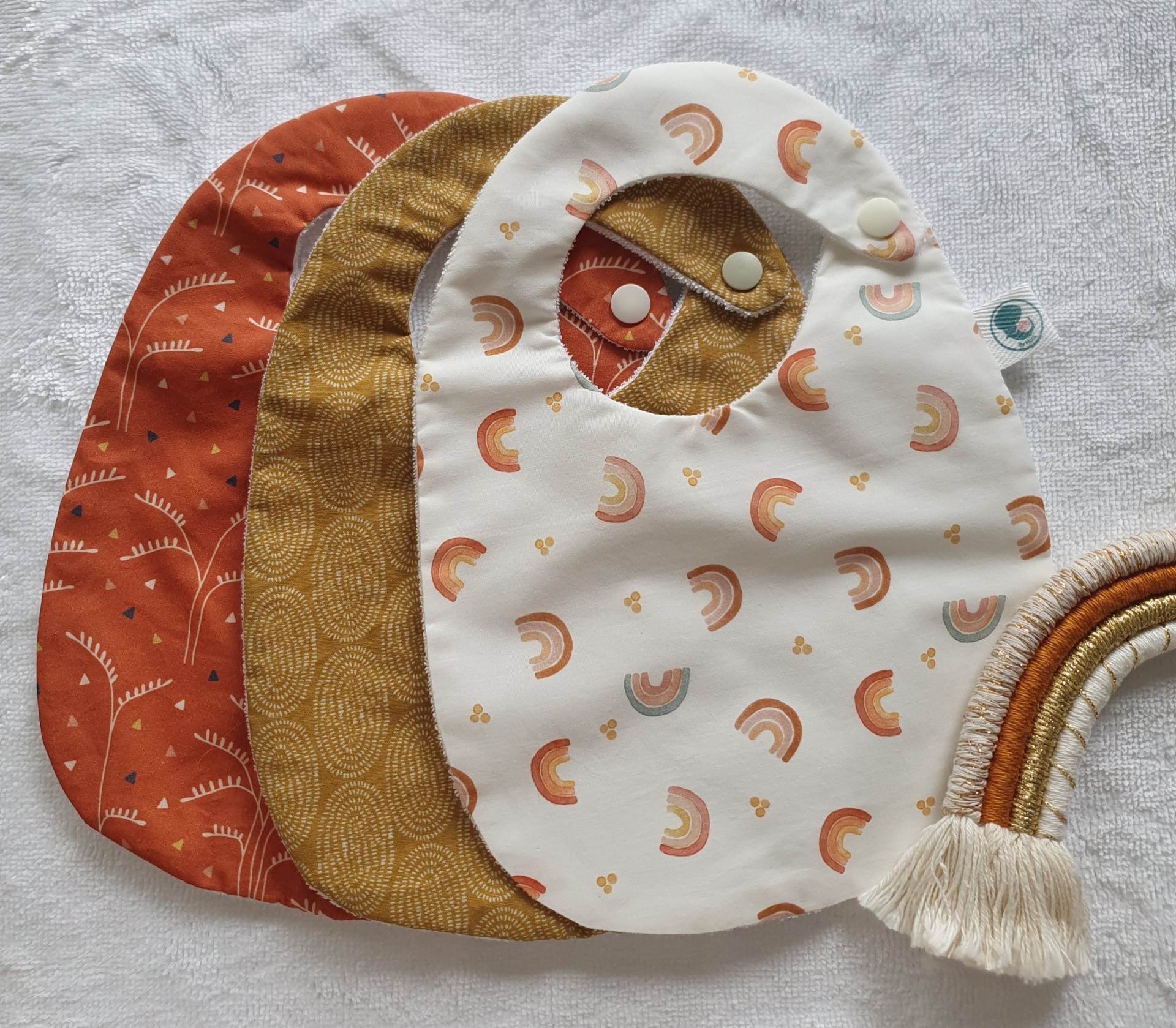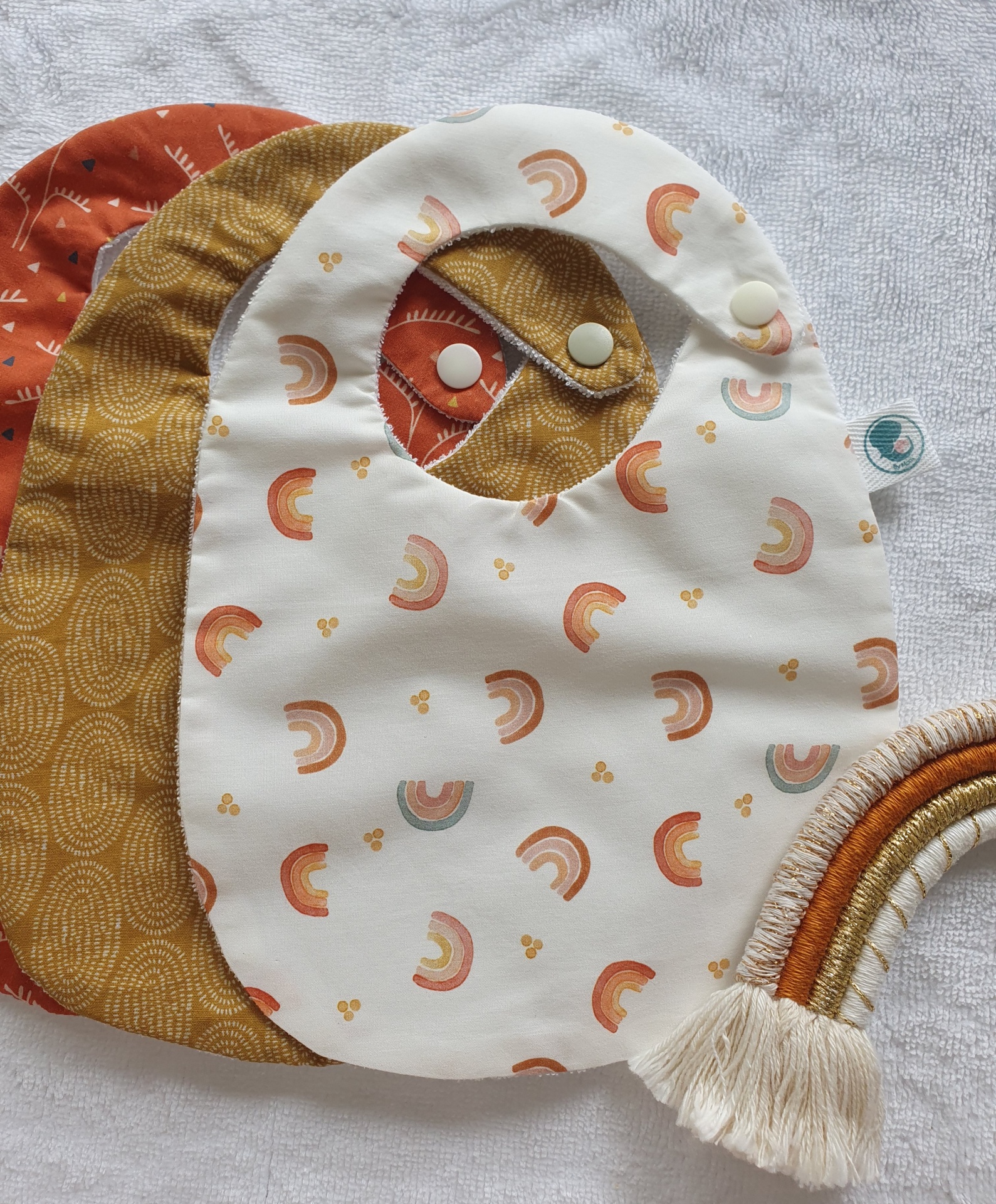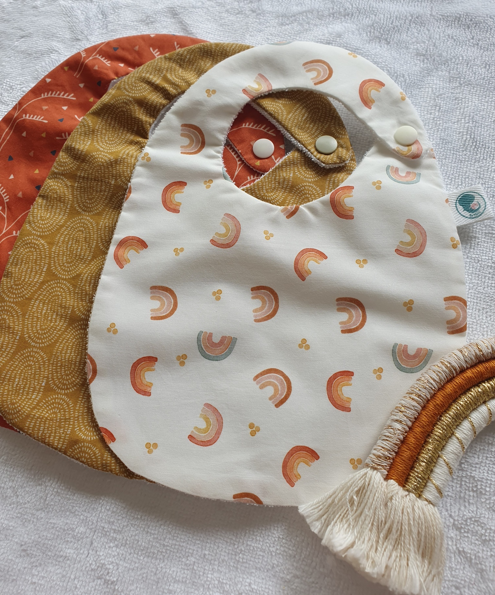 Pack 3 babetes arco-íris pastel 15,00 € Desconto de %. Partilhar O produto encontra-se sem stock. Conjunto de 3 babetes, 100% algodão e turco impermeavel. Idade: dos 0 aos 18 meses Medidas: 26x19cm Cores: rosa, cinza e branco
