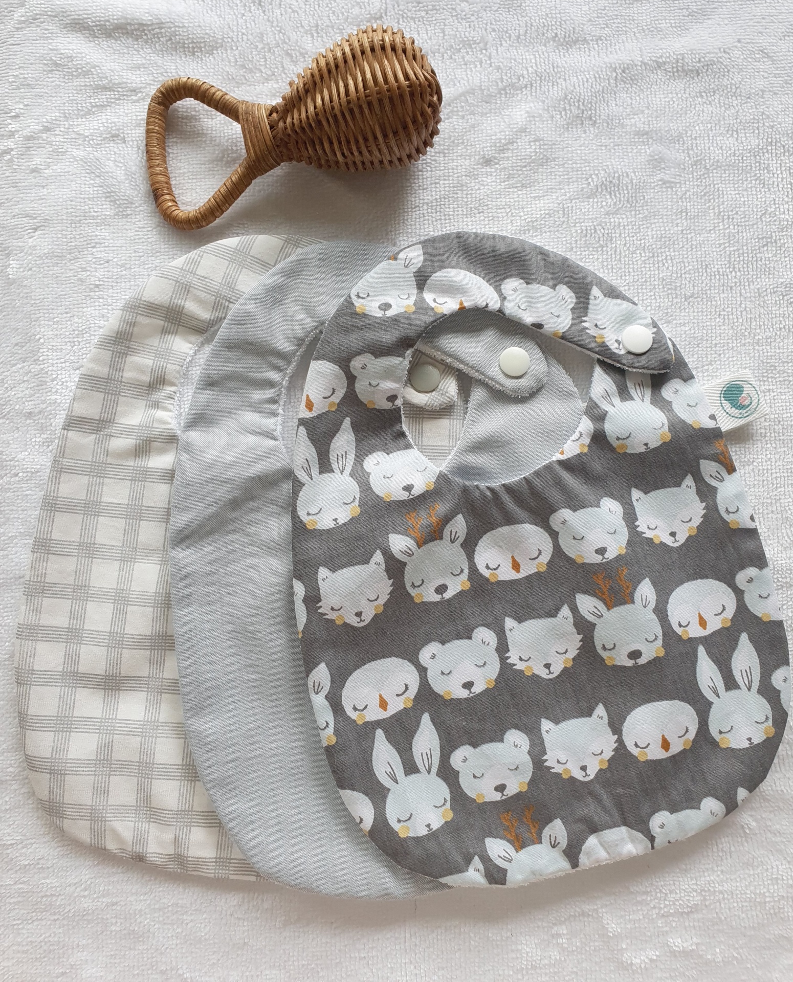 Pack 3 babetes corujas e coelhos 15,00 € Desconto de %. Partilhar Comprar Contactar Conjunto de 3 babetes, 100% algodão e turco impermeavel. Idade: dos 0 aos 18 meses Medidas: 26x19cm Cores: rosa, cinza e branco