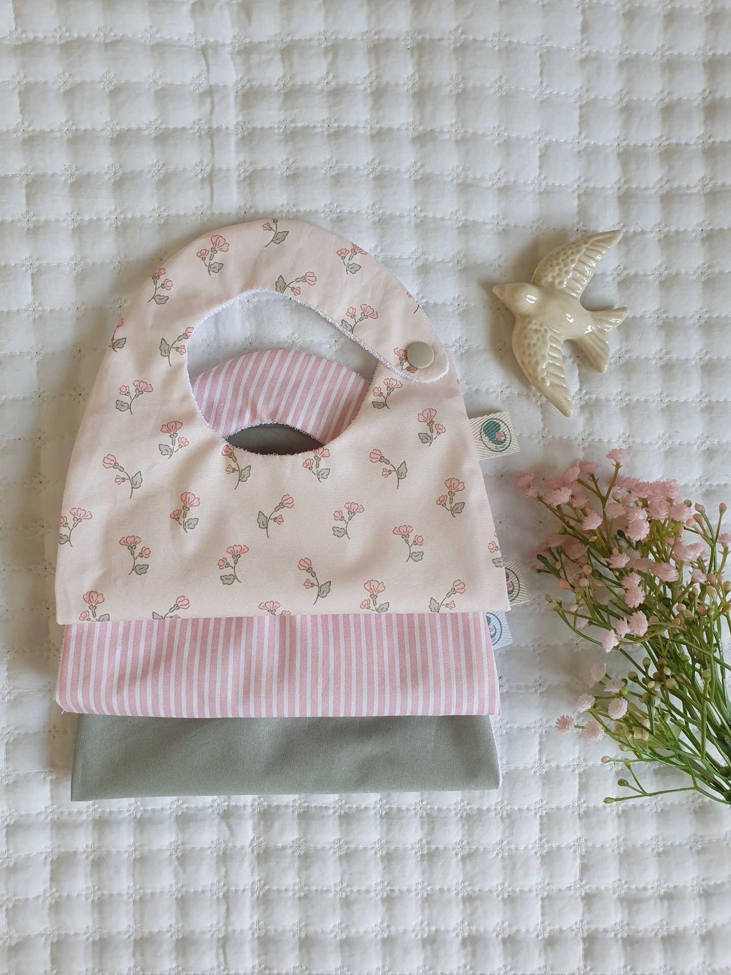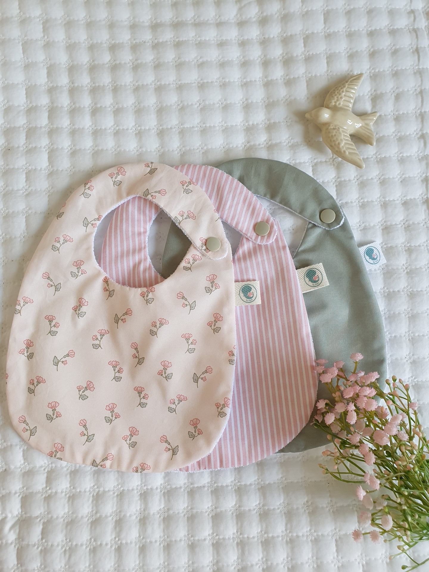 Pack 3 babetes floral rosinhas 25,00 € Desconto de %. Partilhar Comprar Contactar Conjunto de 3 babetes, 100% algodão e turco impermeavel. Idade: dos 0 aos 18 meses Medidas: 26x19cm Cores: floral rosinhas; riscas rosa; verde seco