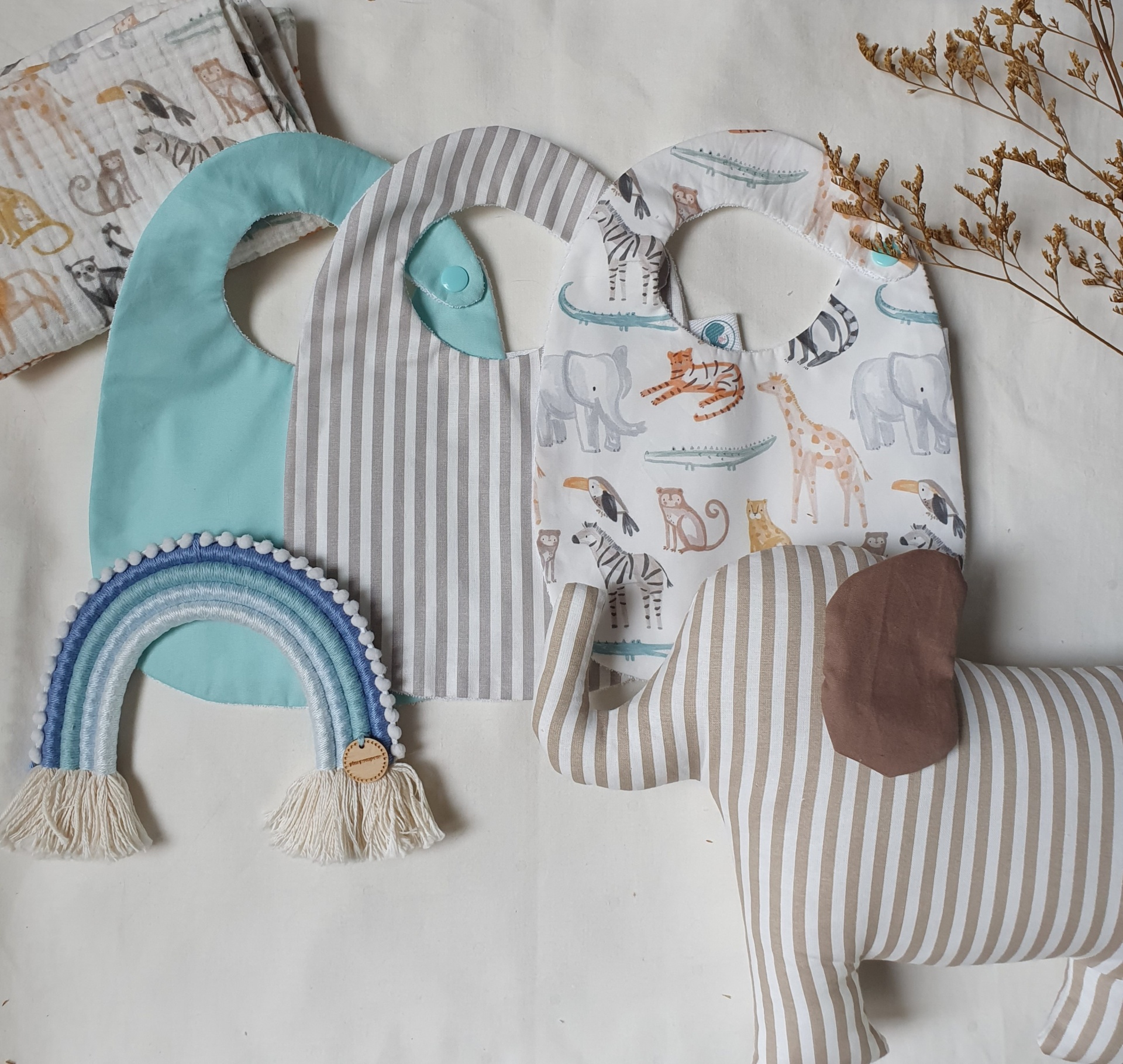 Pack 3 babetes tucanos na selva 25,00 € Desconto de %. Partilhar Comprar Contactar Conjunto de 3 babetes, 100% algodão e turco impermeavel. Idade: dos 0 aos 18 meses Medidas: 26x19cm Cores: tucanos; riscas cinza; menta