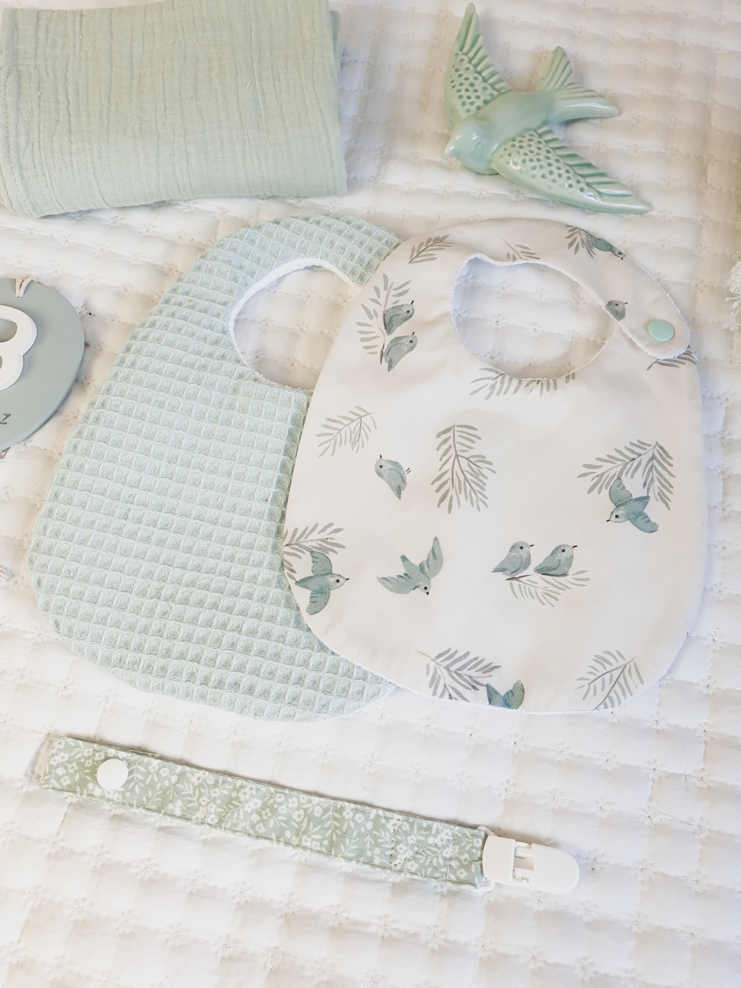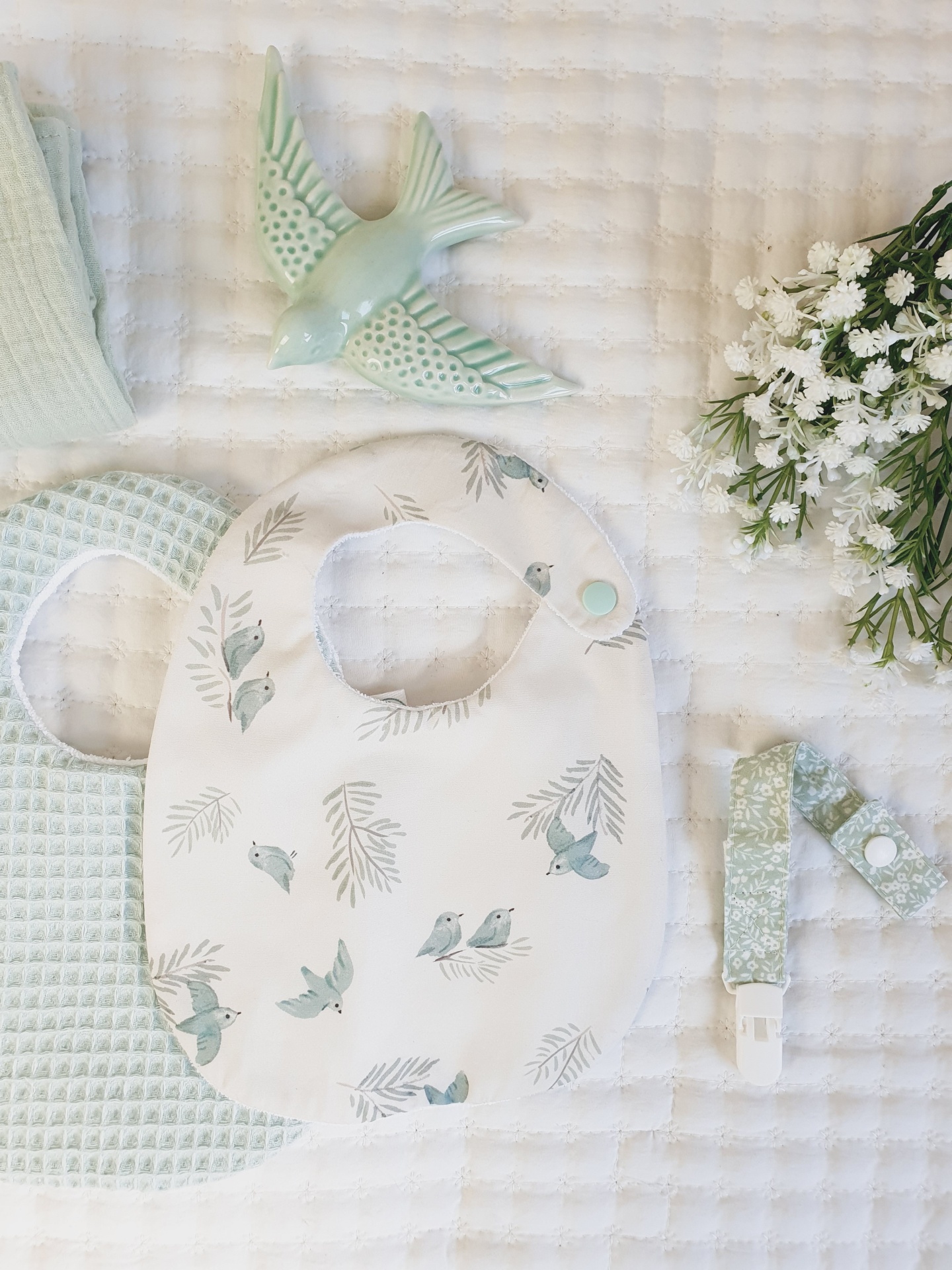 Pack babetes passarinhos 18,00 € Desconto de %. Partilhar Comprar Contactar Pack de 2 babetes em 100% algodão e waffle, muito macios e absorventes! Excelentes para absorver a babinha do seu bebé e deixá-lo sempre seco e confortável.