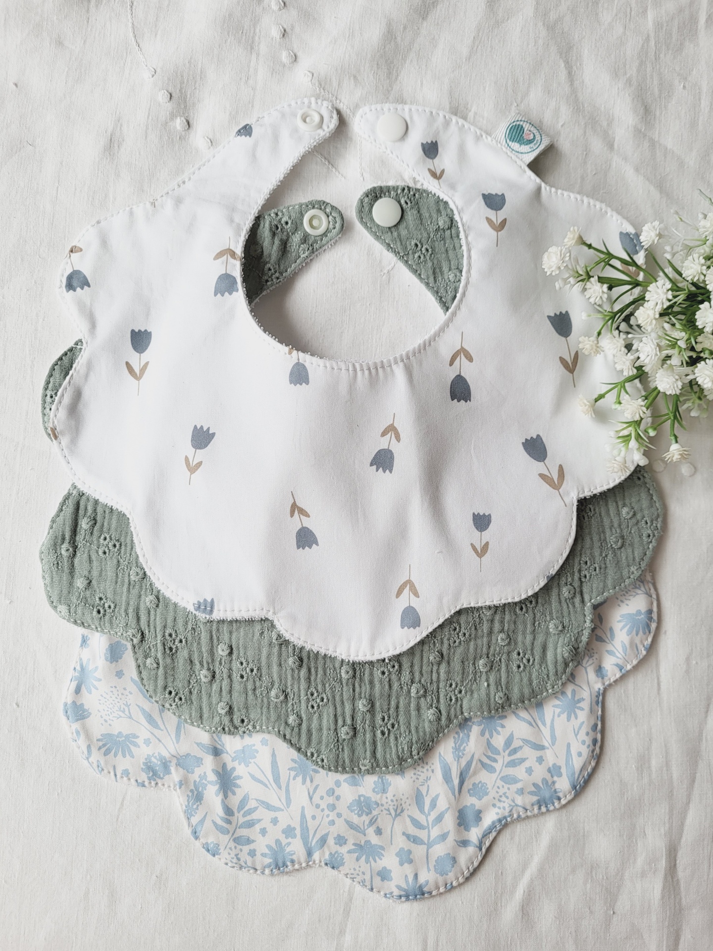 Pack babetes flor tulipas 12,00 € Desconto de %. Partilhar Padrão Tulipas Floral azul Pack 2 babetes Comprar Contactar Pack de 2 babetes 100% algodão, muito macios e absorventes! Excelentes para absorver a babinha do seu bebé e deixá-lo sempre seco e confortável. O seu modelo flor vai ficar lindo no seu bebé e nem parece um babete! Fica com um ar de golinha, o ideal para os passeios em família. O pack de 2 babetes é composto pelo 2 babetes de algodão. O babete de bordado inglês terá de ser adquirido à parte e não entra neste pack.