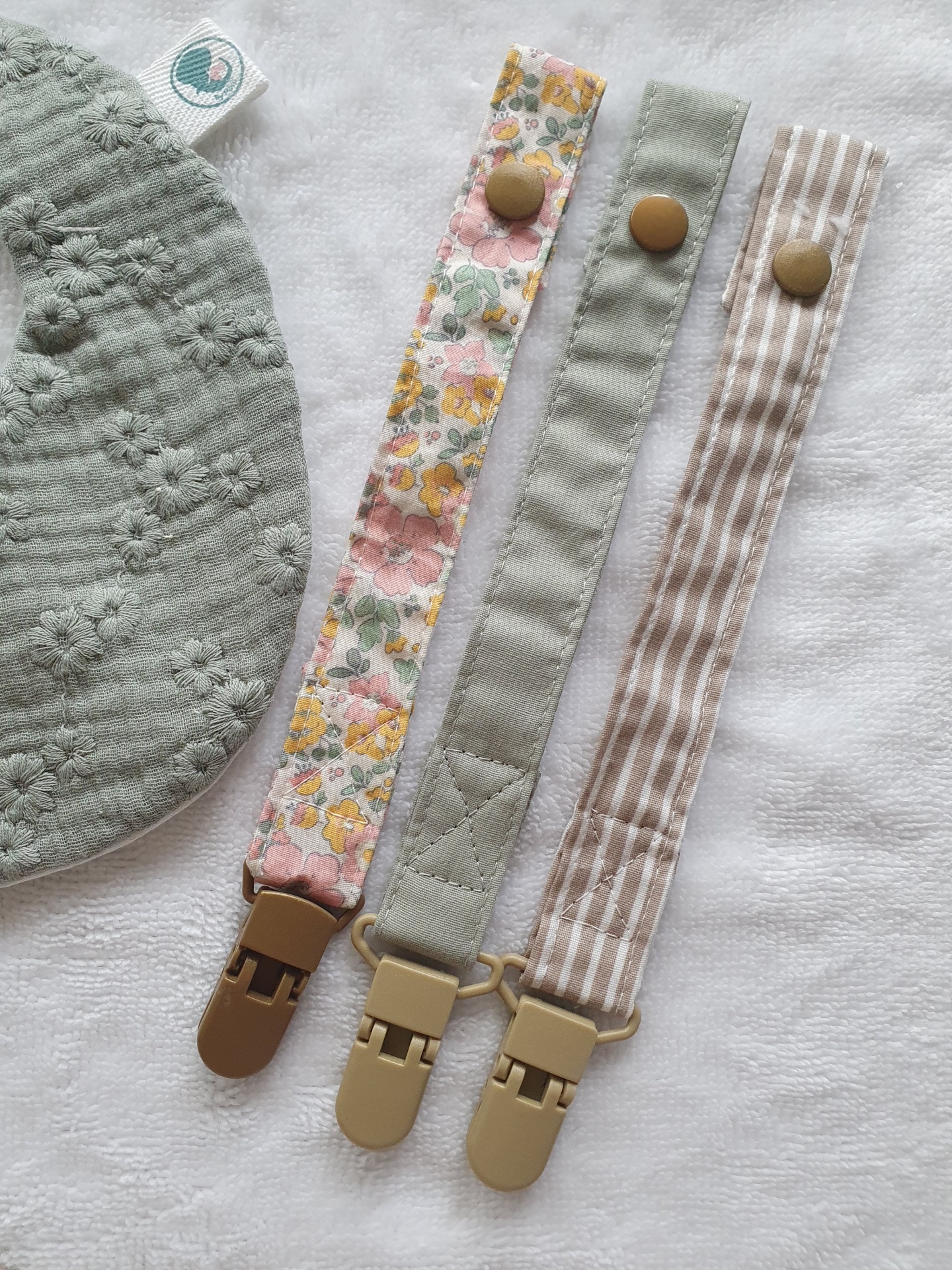Pack fitas chupeta floral verde 20,00 € Desconto de %. Partilhar O produto encontra-se sem stock. Fita de chupeta ou para mordedor com mola de plástico! Muito úteis para evitar que a chupeta do seu bebé esteja sempre a cair no chão. Tecidos 100%algodão.