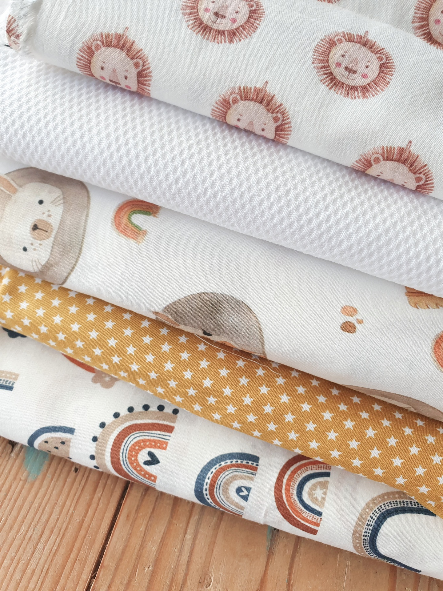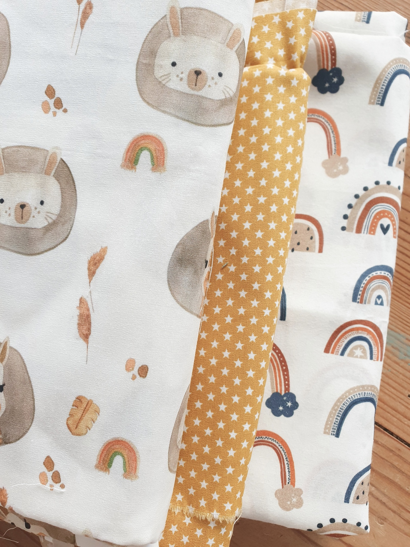 Pack tecidos girafas e arco-íris 25,00 € Desconto de %. Partilhar O produto encontra-se sem stock. Pack de tecidos variados. Tecidos vários tamanhos, alguns retalhos e uns miminhos extras que podem variar entre molas kam, gregas, fechos, pompons...