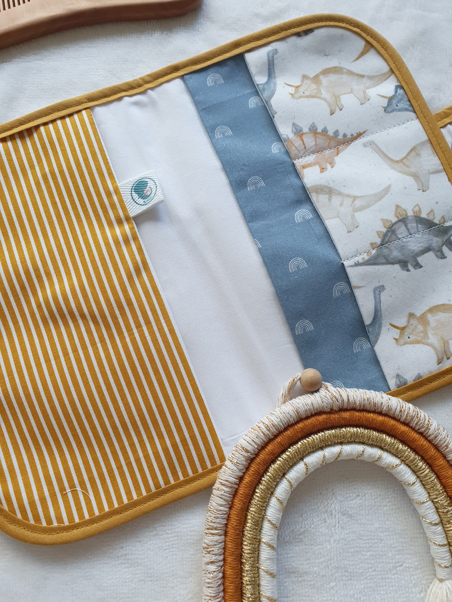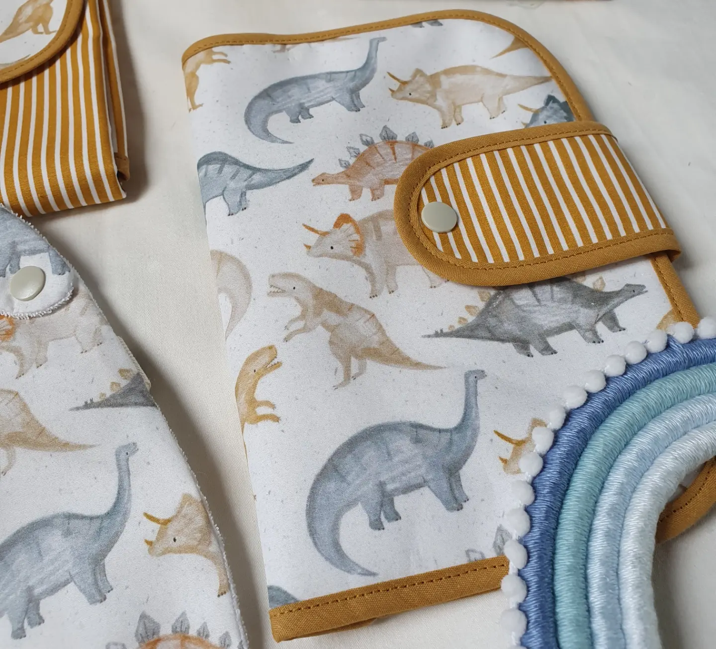 Porta documentos dinossauros 16,00 € 18,00 € Desconto de %. Partilhar O produto encontra-se sem stock. Porta documentos com fecho com mola de pressão, em tecido 100% algodão com certificado OEKO-TEX 100. Com 2 bolso laterais grandes e 3 bolsos pequenos para cartões. Compatível com boletim do bebé português. Medidas aproximadas: 22cm x 15cm. Cores: bege; mostarda; azul Tags dinossaurosdinoboysmostardaazulCinzarapazmeninoporta documentosboletim vacinaspromoções Características