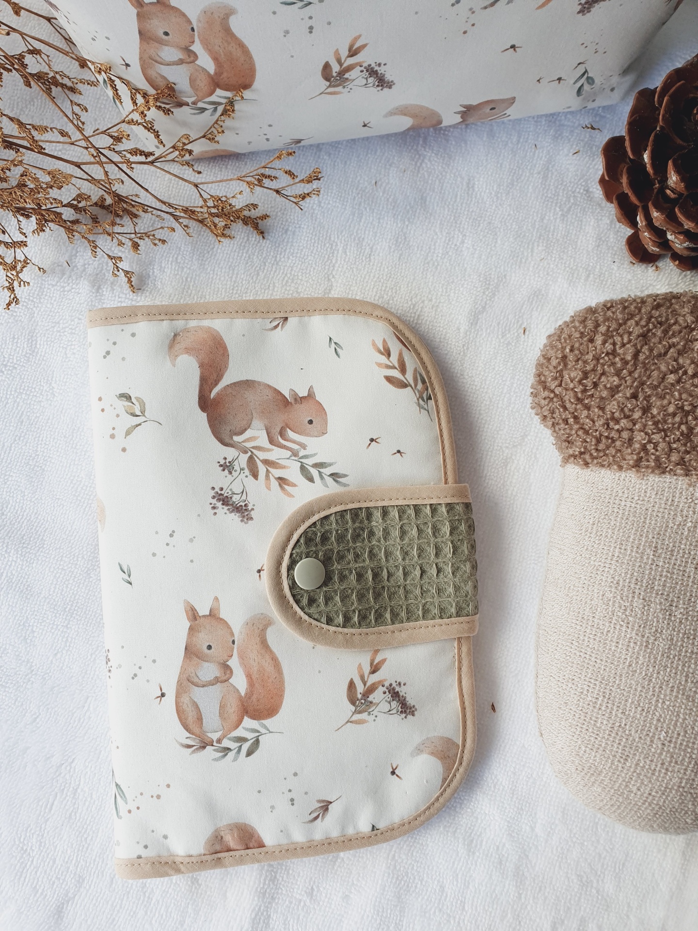 Porta documentos esquilos 20,00 € Desconto de %. Partilhar Comprar Contactar Porta documentos com fecho com mola de pressão, em tecido 100% algodão com certificado OEKO-TEX. Com 2 bolso laterais grandes e 3 bolsos pequenos para cartões. Compatível com boletim do bebé português. Medidas aproximadas: 22cm x 15cm. Cores: castanho, cru.