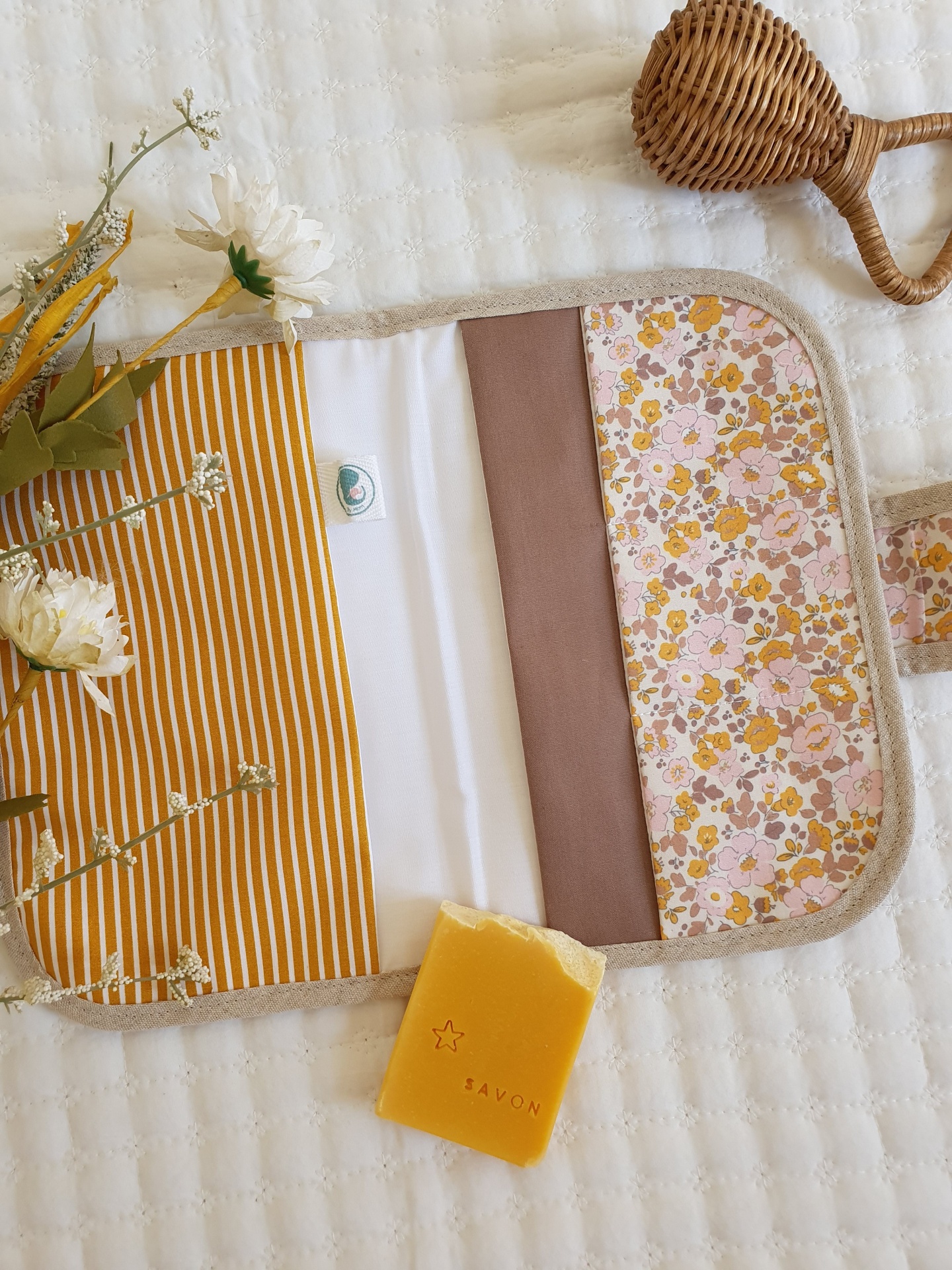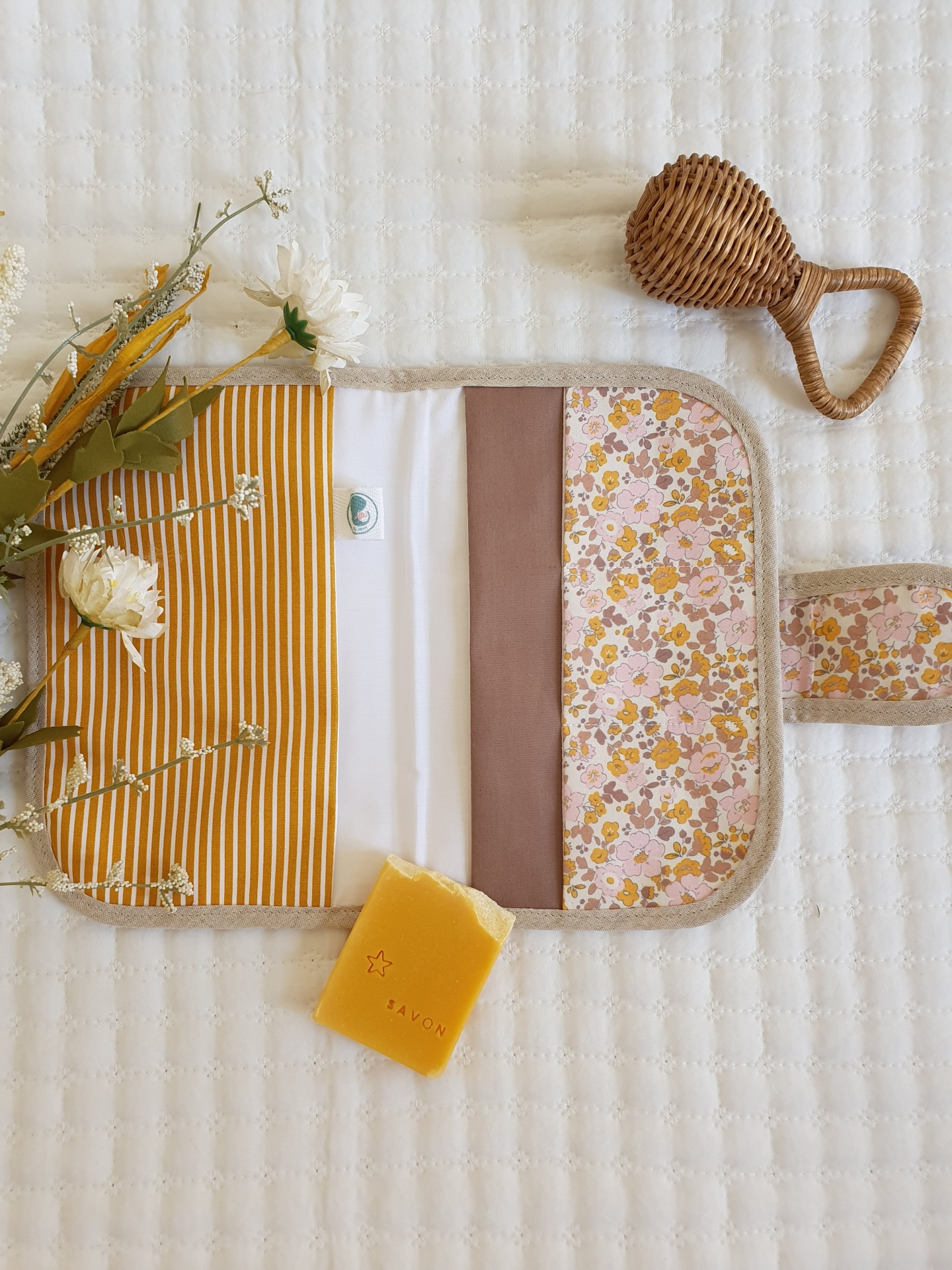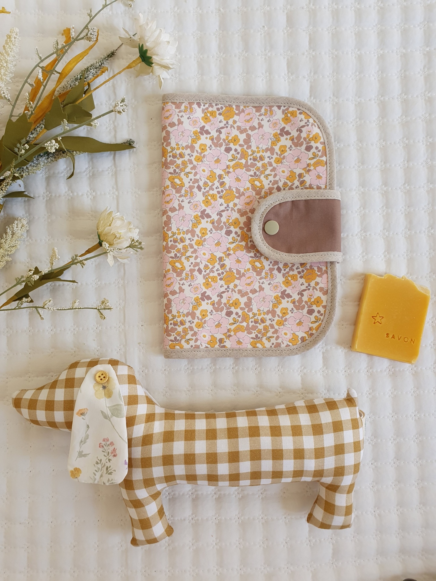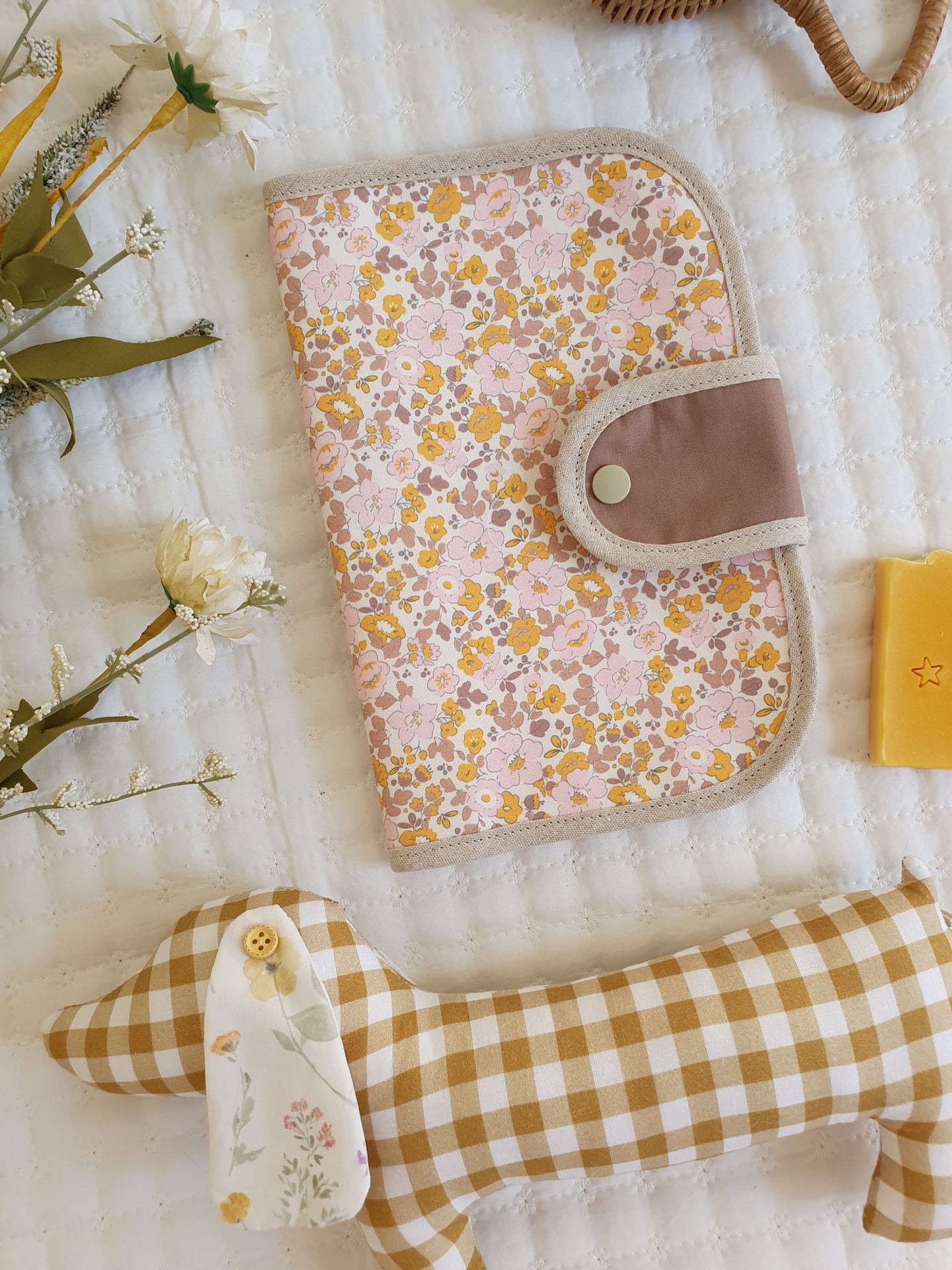 Porta documentos floral mostarda 18,00 € Desconto de %. Partilhar O produto encontra-se sem stock. Porta documentos com fecho com mola de pressão, em tecido 100% algodão com certificado OEKO-TEX 100. Com 2 bolso laterais grandes e 3 bolsos pequenos para cartões. Compatível com boletim do bebé português. Medidas aproximadas: 22cm x 15cm.