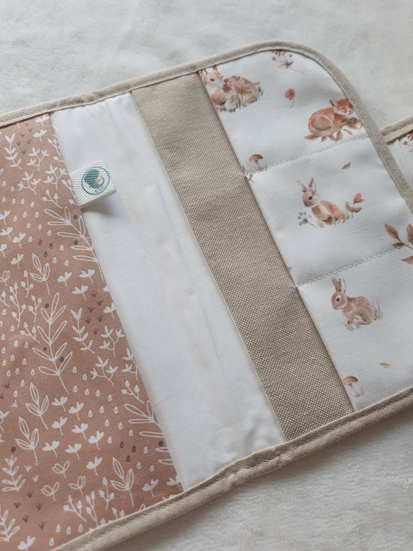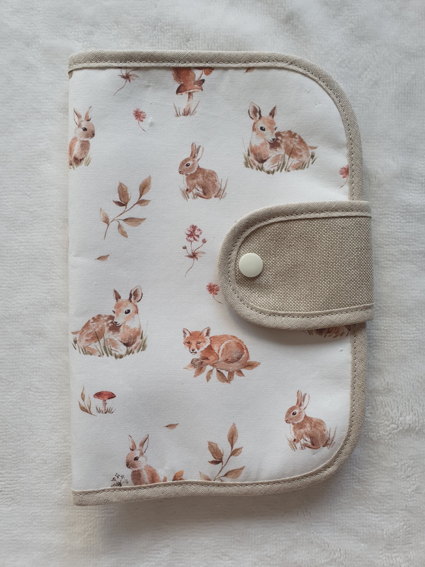 Porta documentos floresta em bege 18,00 € Desconto de %. Partilhar O produto encontra-se sem stock. Porta documentos com fecho com mola de pressão, em tecido 100% algodão com certificado OEKO-TEX 100. Com 2 bolso laterais grandes e 3 bolsos pequenos para cartões. Compatível com boletim do bebé português. Medidas aproximadas: 22cm x 15cm. Cores: bege; mostarda; azul