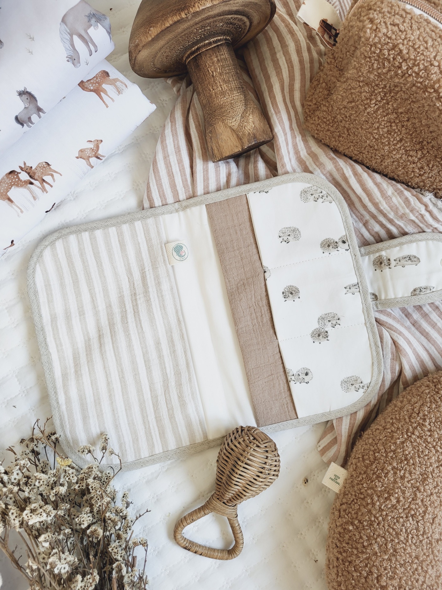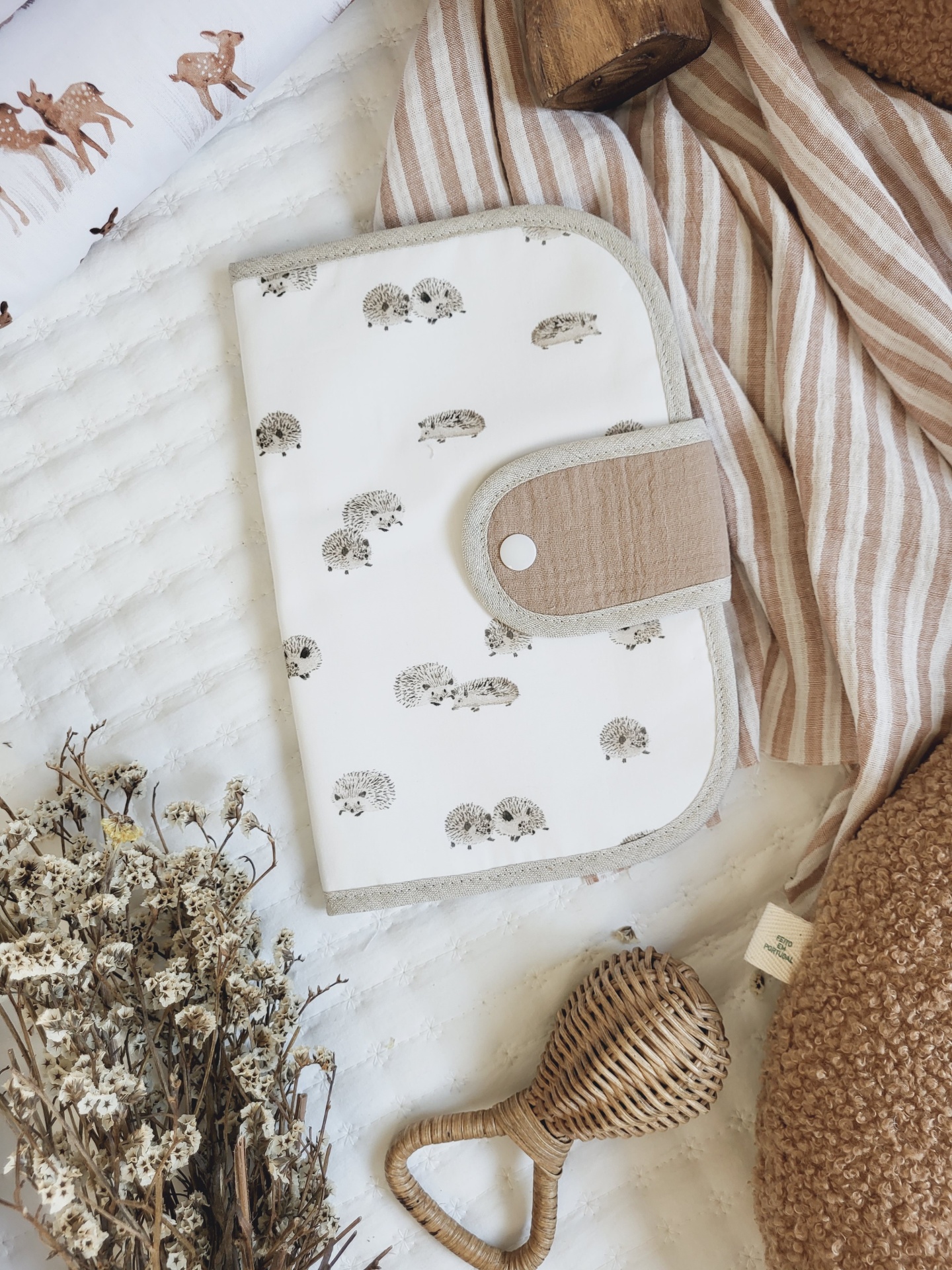 Porta documentos ouriços new 20,00 € Desconto de %. Partilhar O produto encontra-se sem stock. Porta documentos com fecho com mola de pressão, em tecido 100% algodão com certificado OEKO-TEX. Com 2 bolso laterais grandes e 3 bolsos pequenos para cartões. Compatível com boletim do bebé português. Medidas aproximadas: 22cm x 15cm. Cores: castanho, cru.